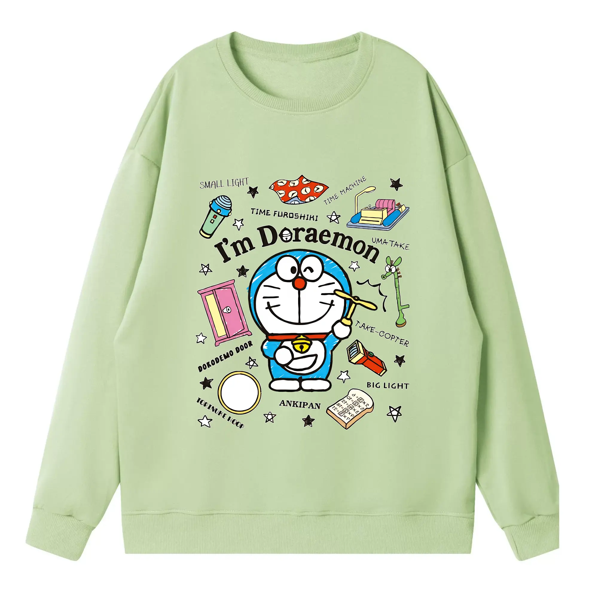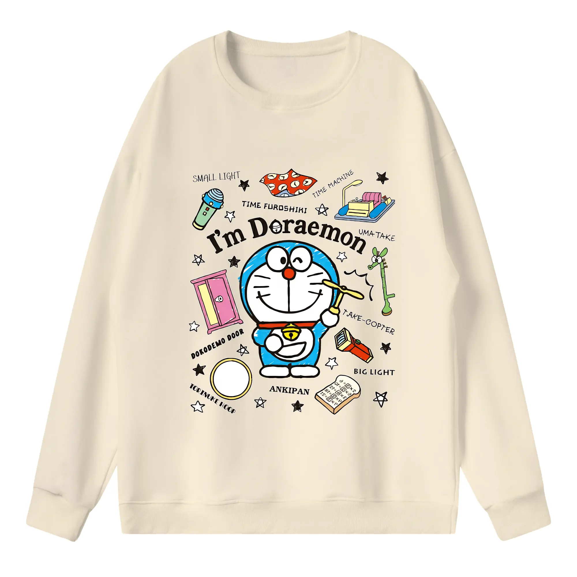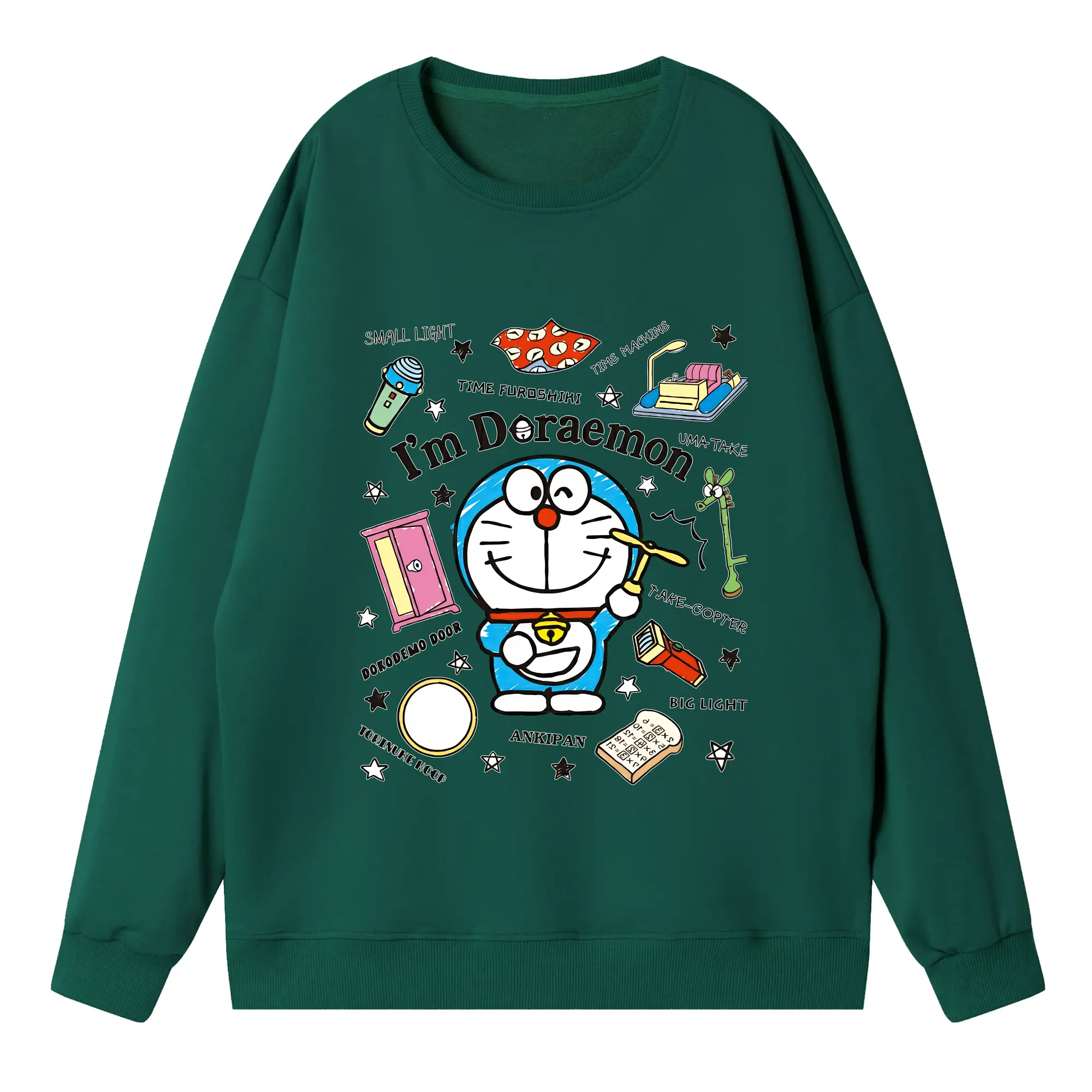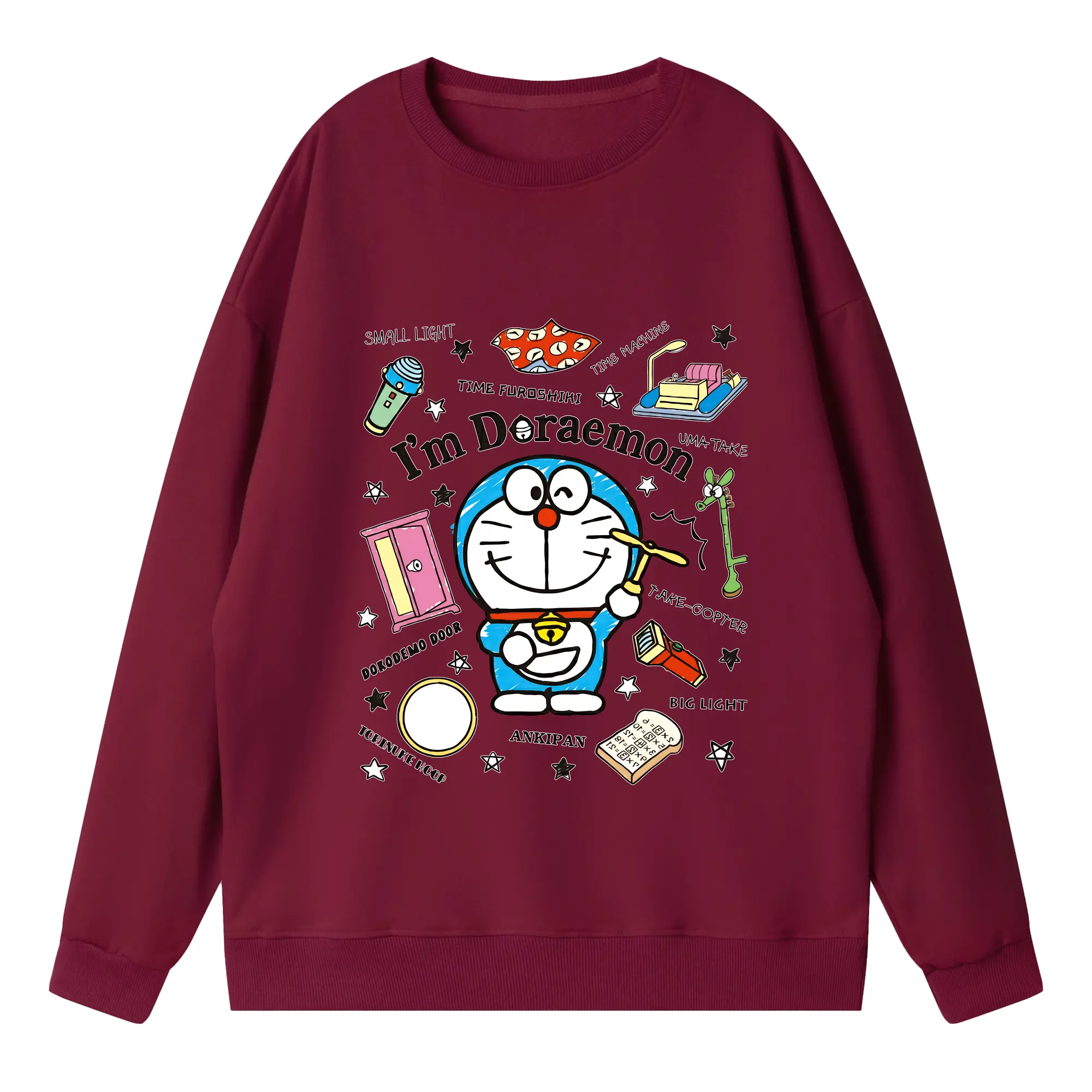 ドラえもん グッズドラえもん - 高品質 クルーネック スウェット ・ コットン59% ポリエステル41% ・ ユニセックス 長袖 トレーナー ・ カジュアル デイリー スポーツ 散歩用