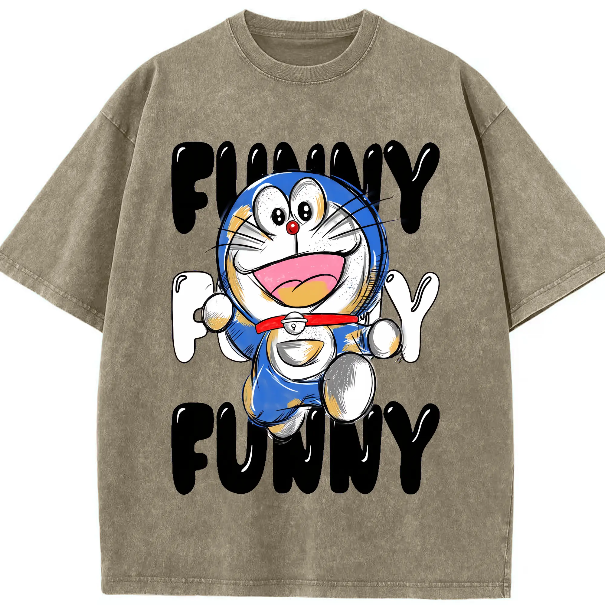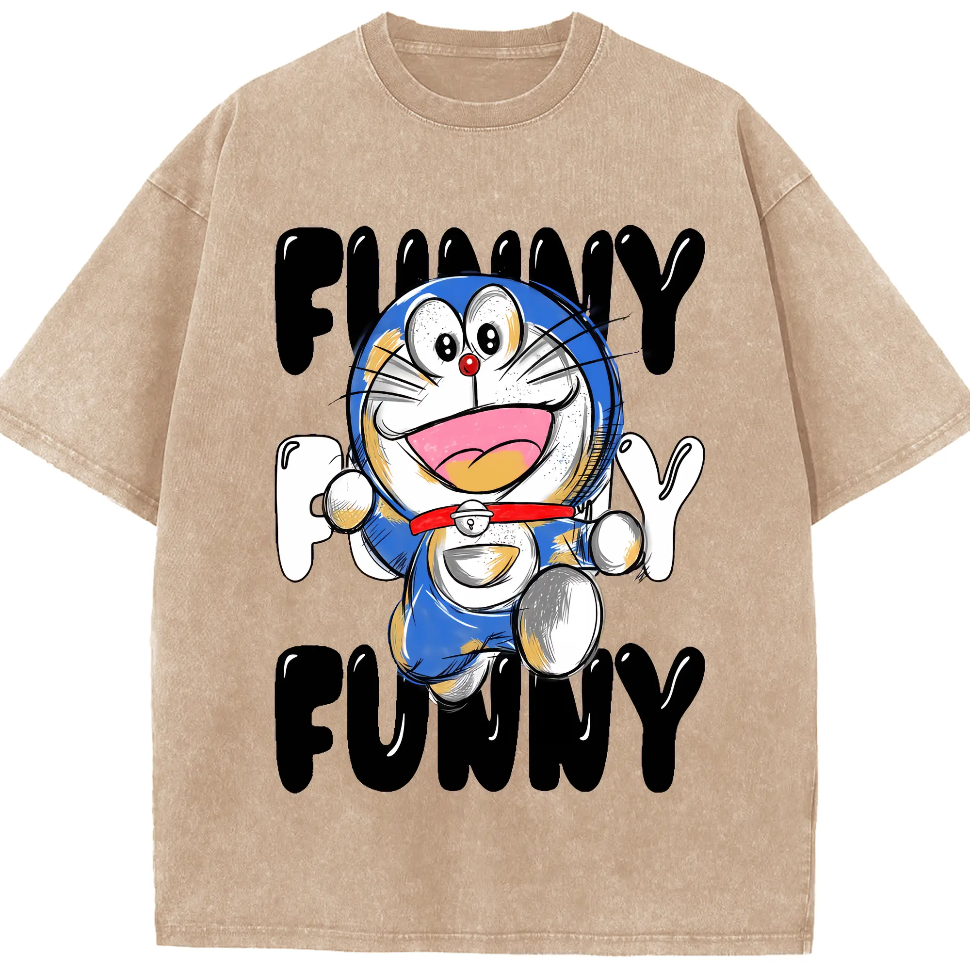 ドラえもん グッズドラえもん - 綿100% ヴィンテージ風 半袖Tシャツ ・ 背面プリント ・ 柔らか肌触り ・ 通気性 快適 ・ スポーツ カジュアル 外出用