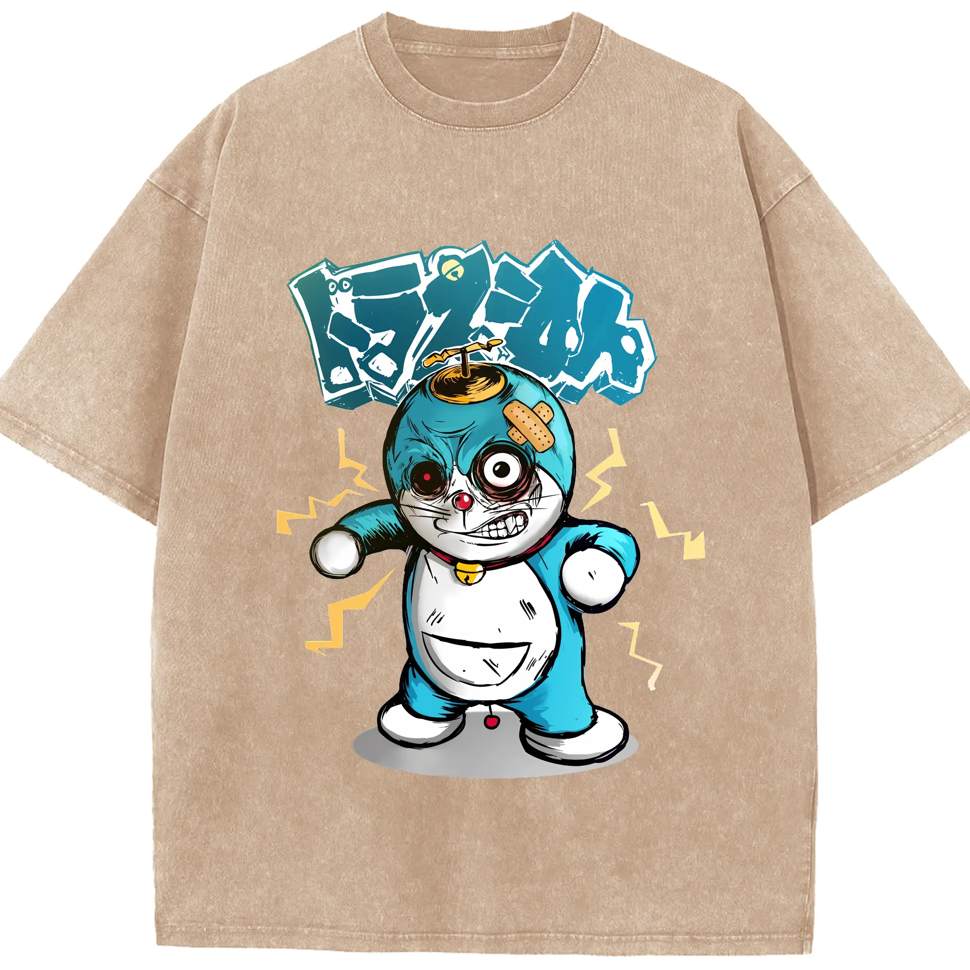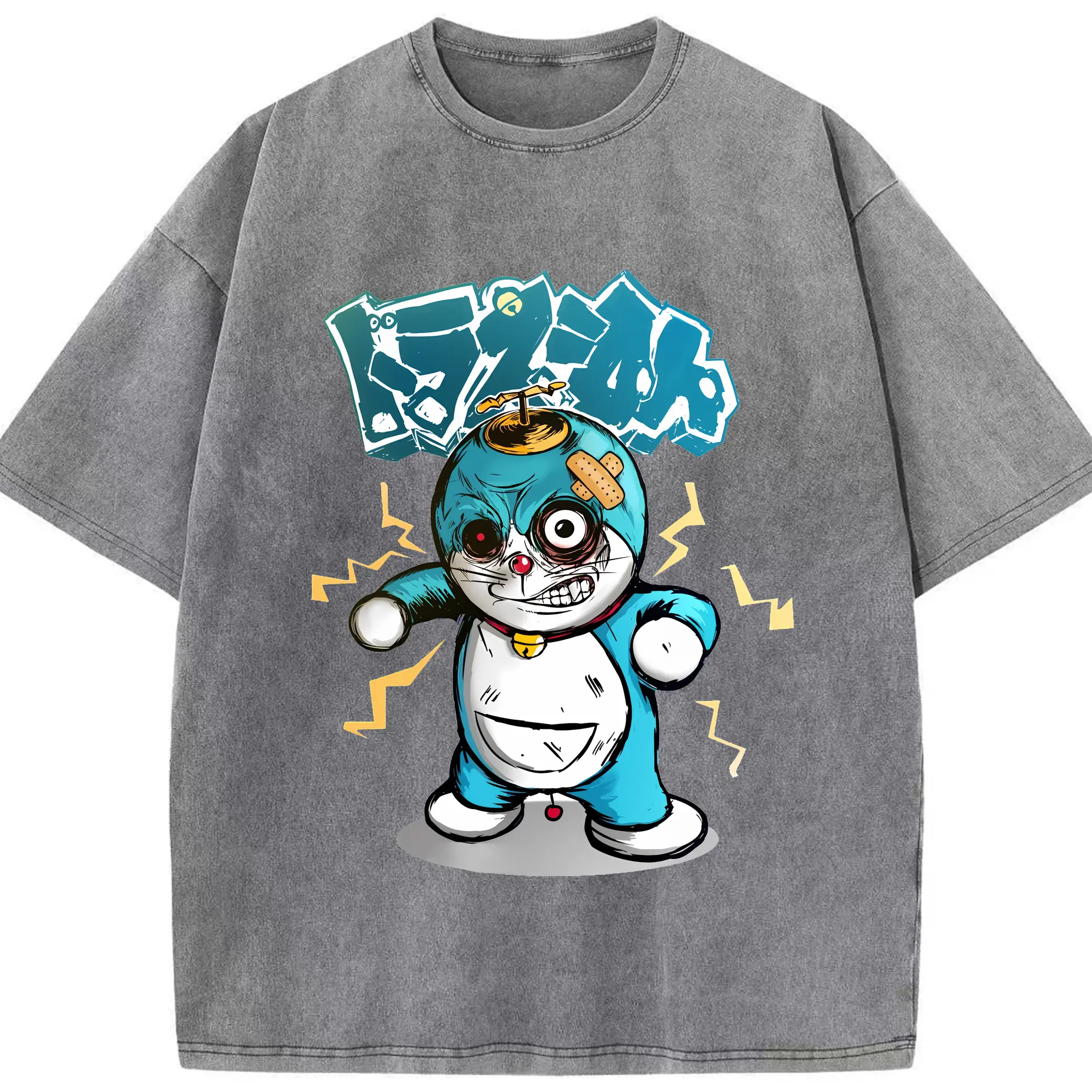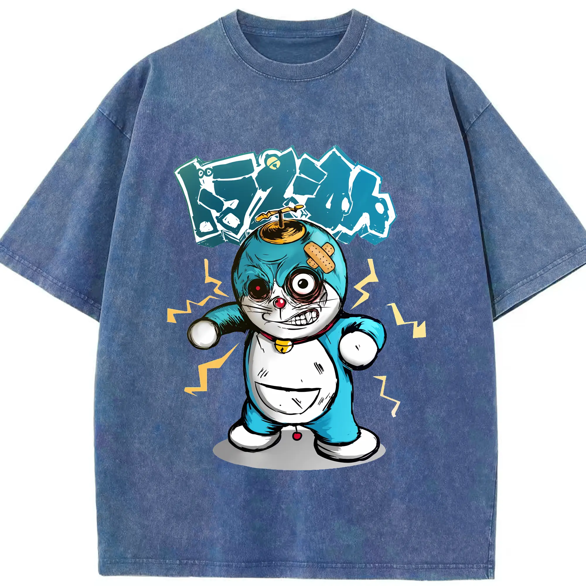 ドラえもん グッズドラえもん - 綿100% ヴィンテージ風 半袖Tシャツ ・ 背面プリント ・ 柔らか肌触り ・ 通気性 快適 ・ スポーツ カジュアル 外出用