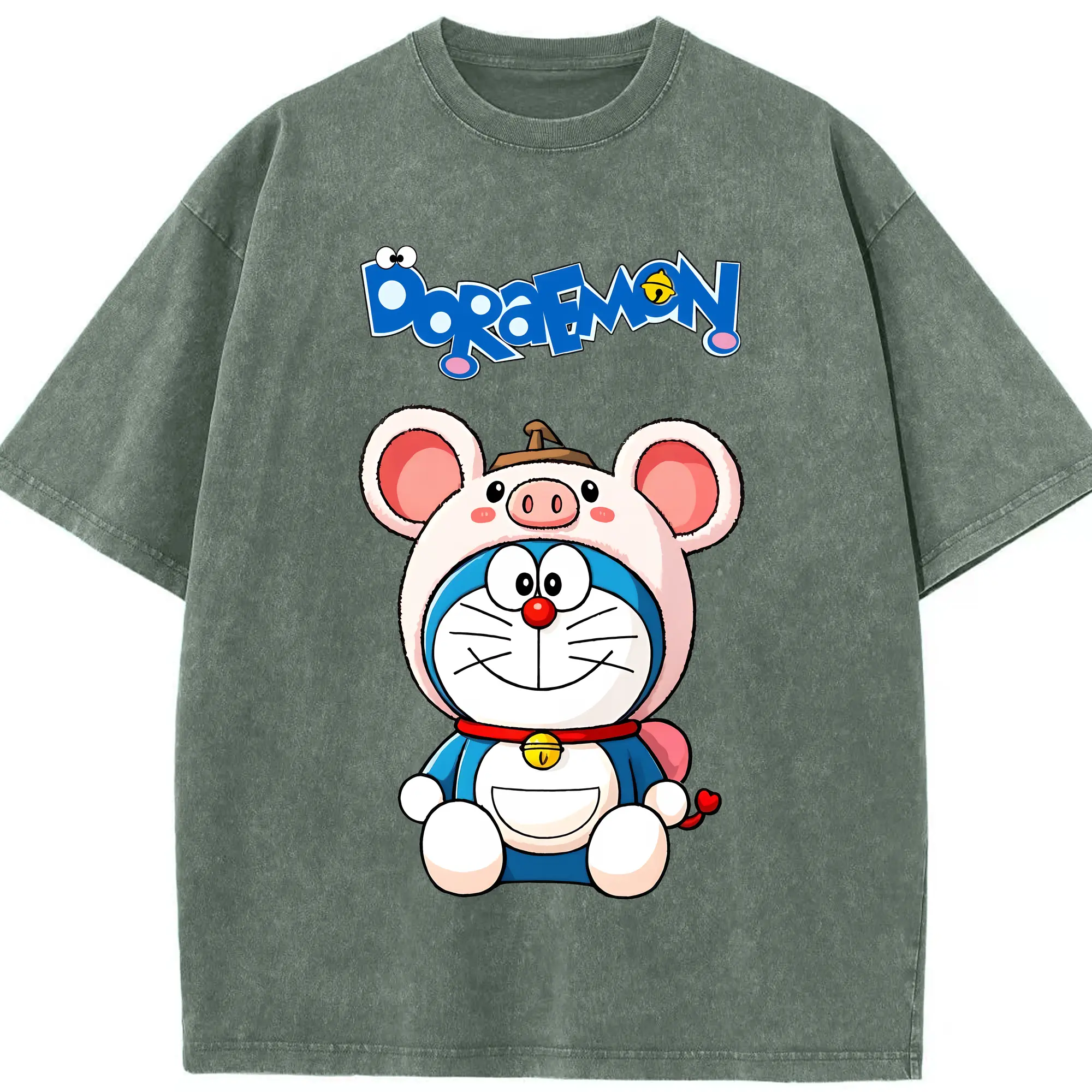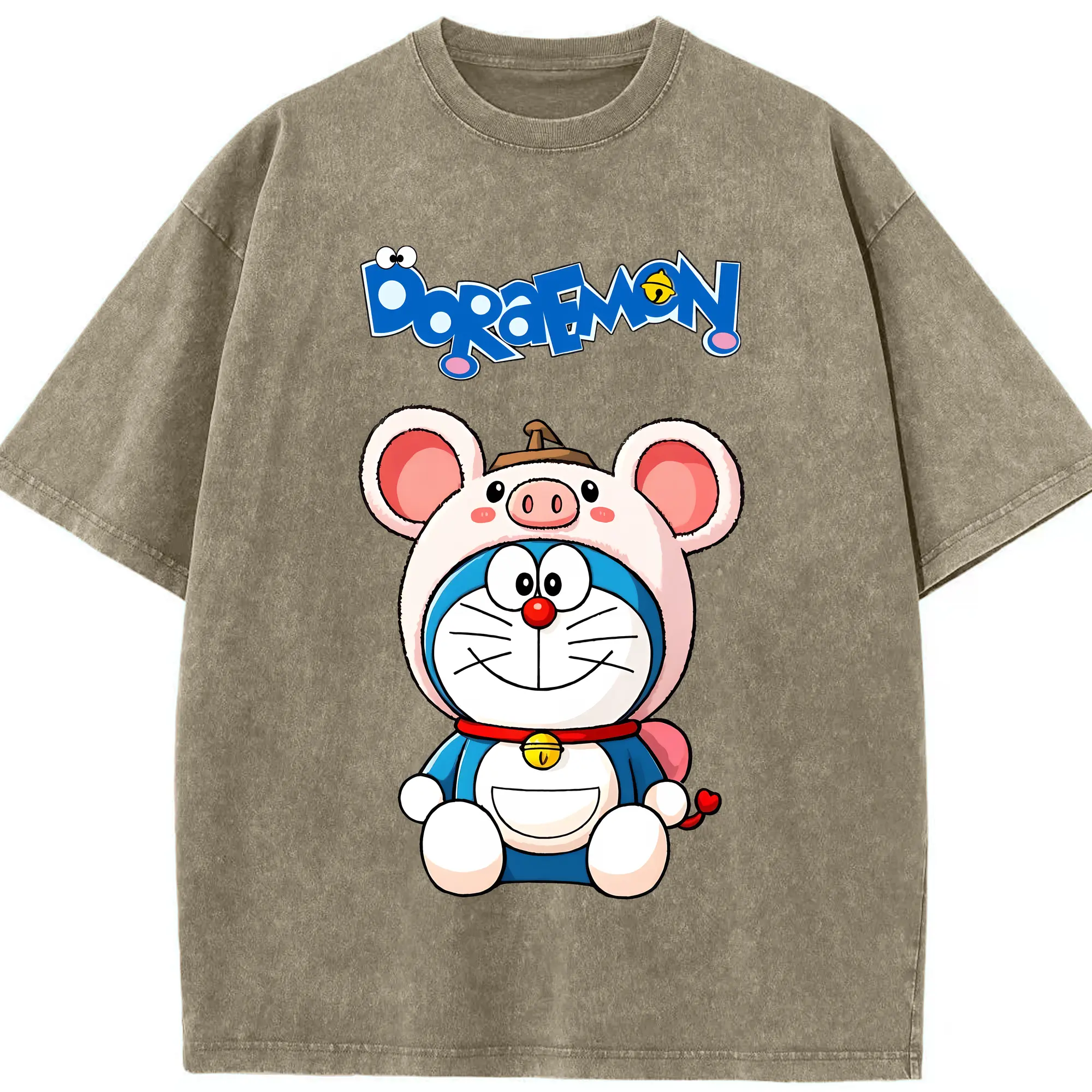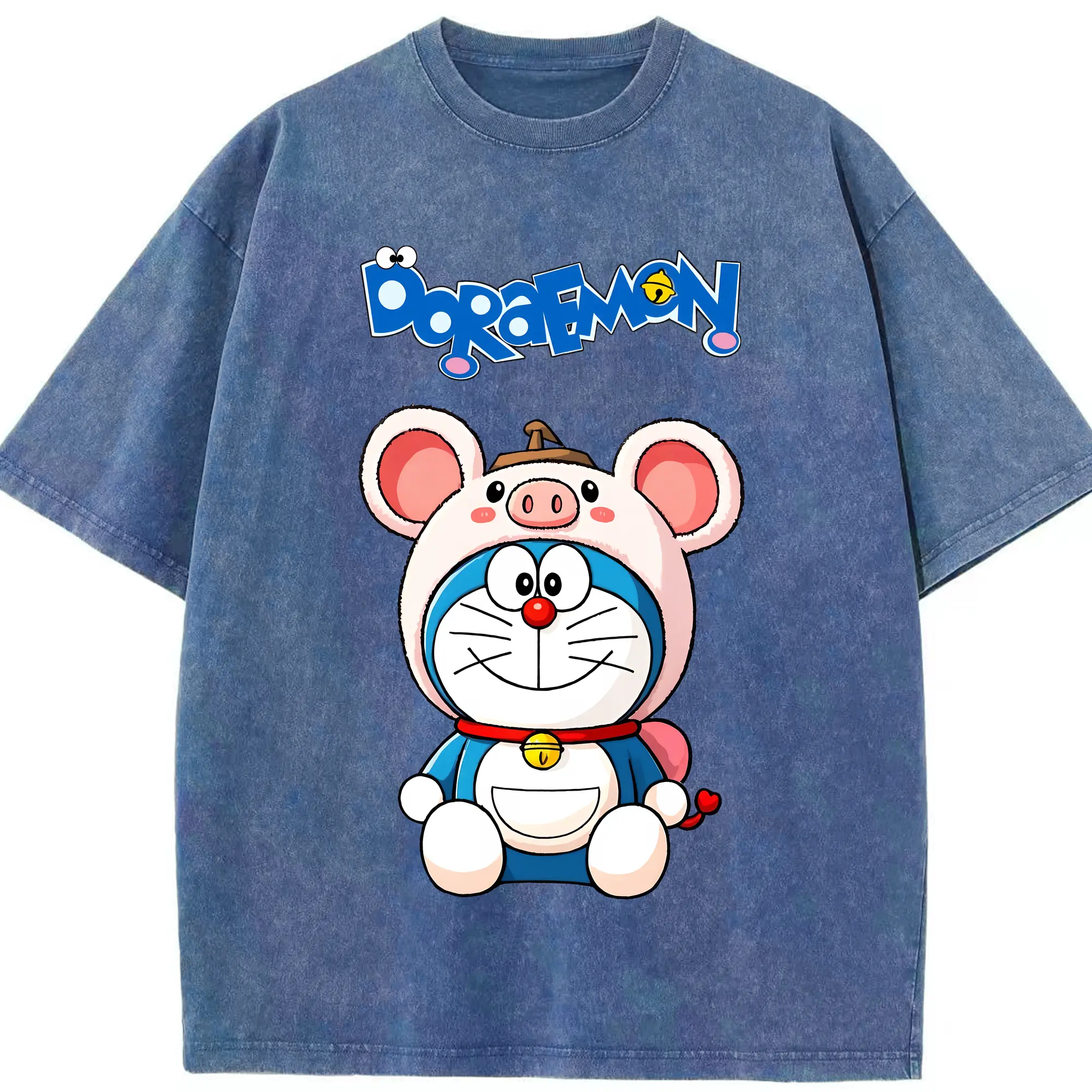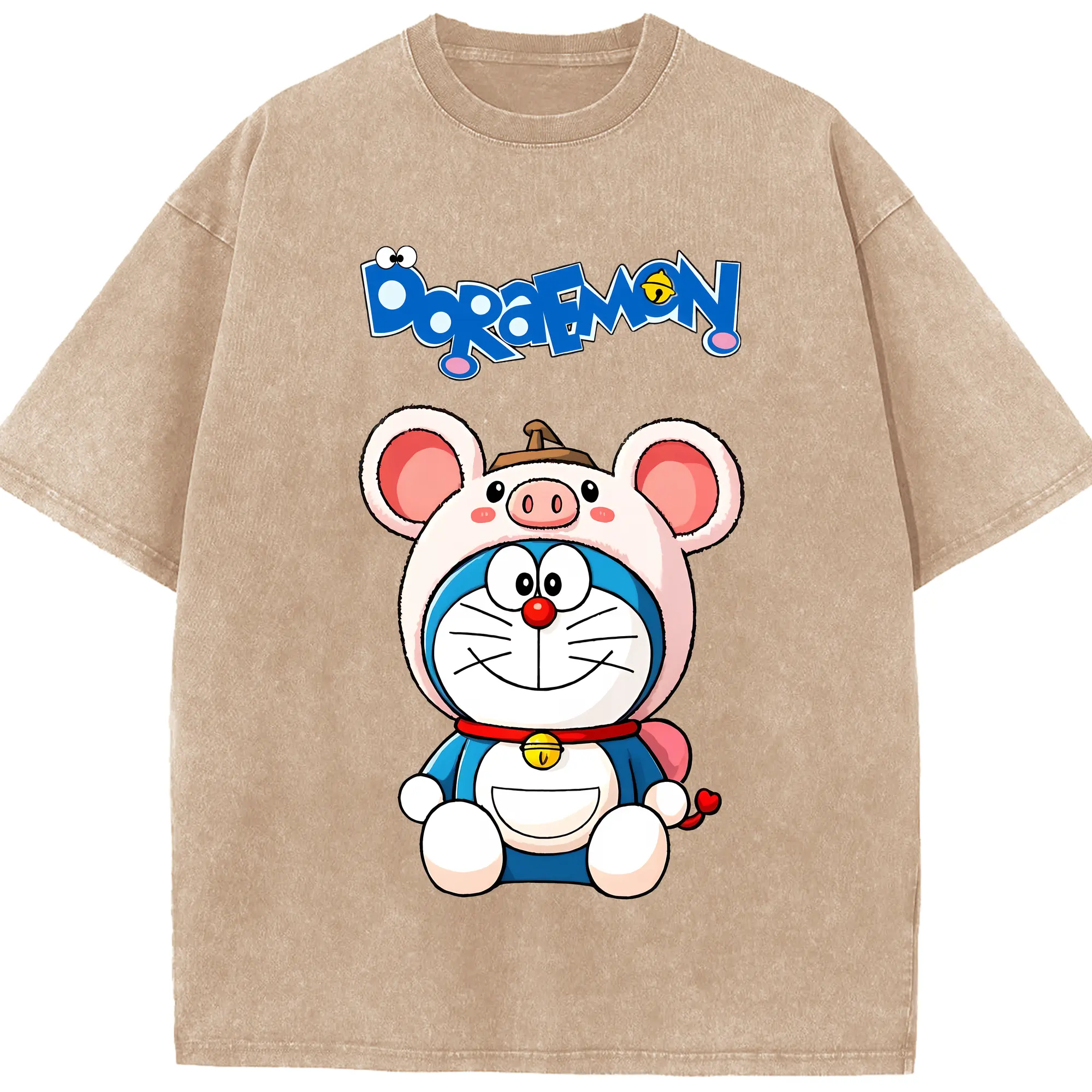 ドラえもん グッズドラえもん - 綿100% ヴィンテージ風 半袖Tシャツ ・ 背面プリント ・ 柔らか肌触り ・ 通気性 快適 ・ スポーツ カジュアル 外出用
