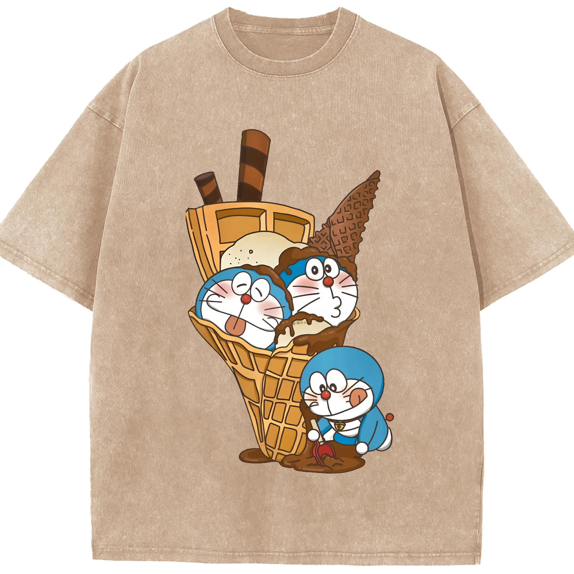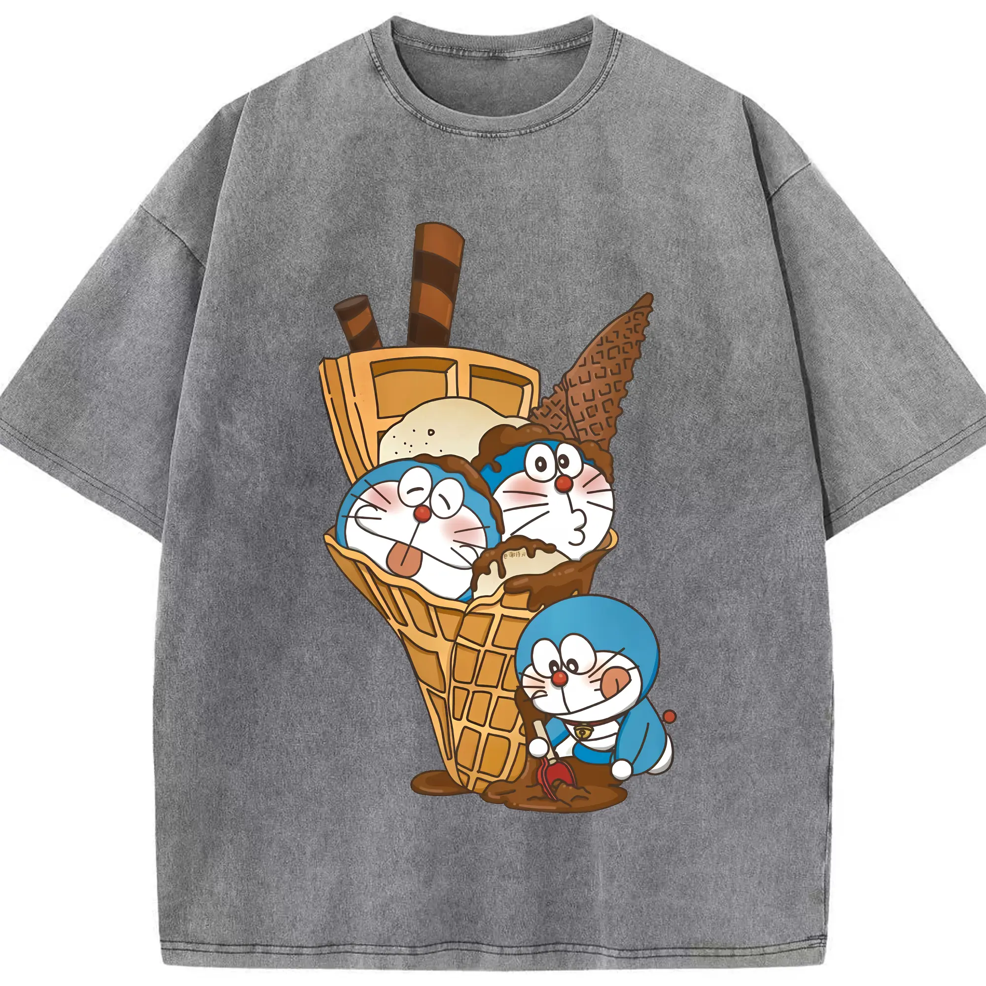 ドラえもん グッズドラえもん - 綿100% ヴィンテージ風 半袖Tシャツ ・ フロントプリント ・ 柔らか肌触り ・ 通気性 快適 ・ スポーツ カジュアル 外出用