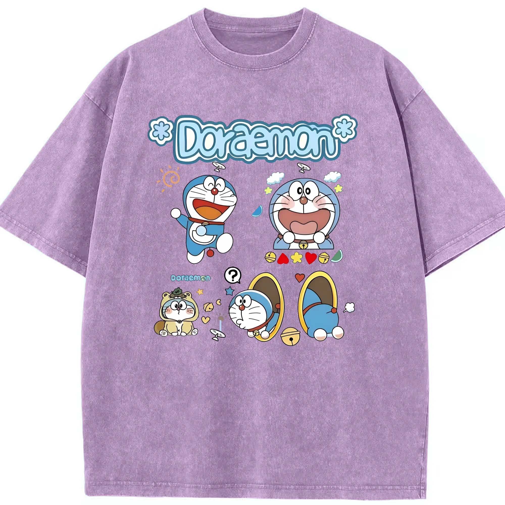 ドラえもん グッズドラえもん - 綿100% ヴィンテージ風 半袖Tシャツ ・ 背面プリント ・ 柔らか肌触り ・ 通気性 快適 ・ スポーツ カジュアル 外出用