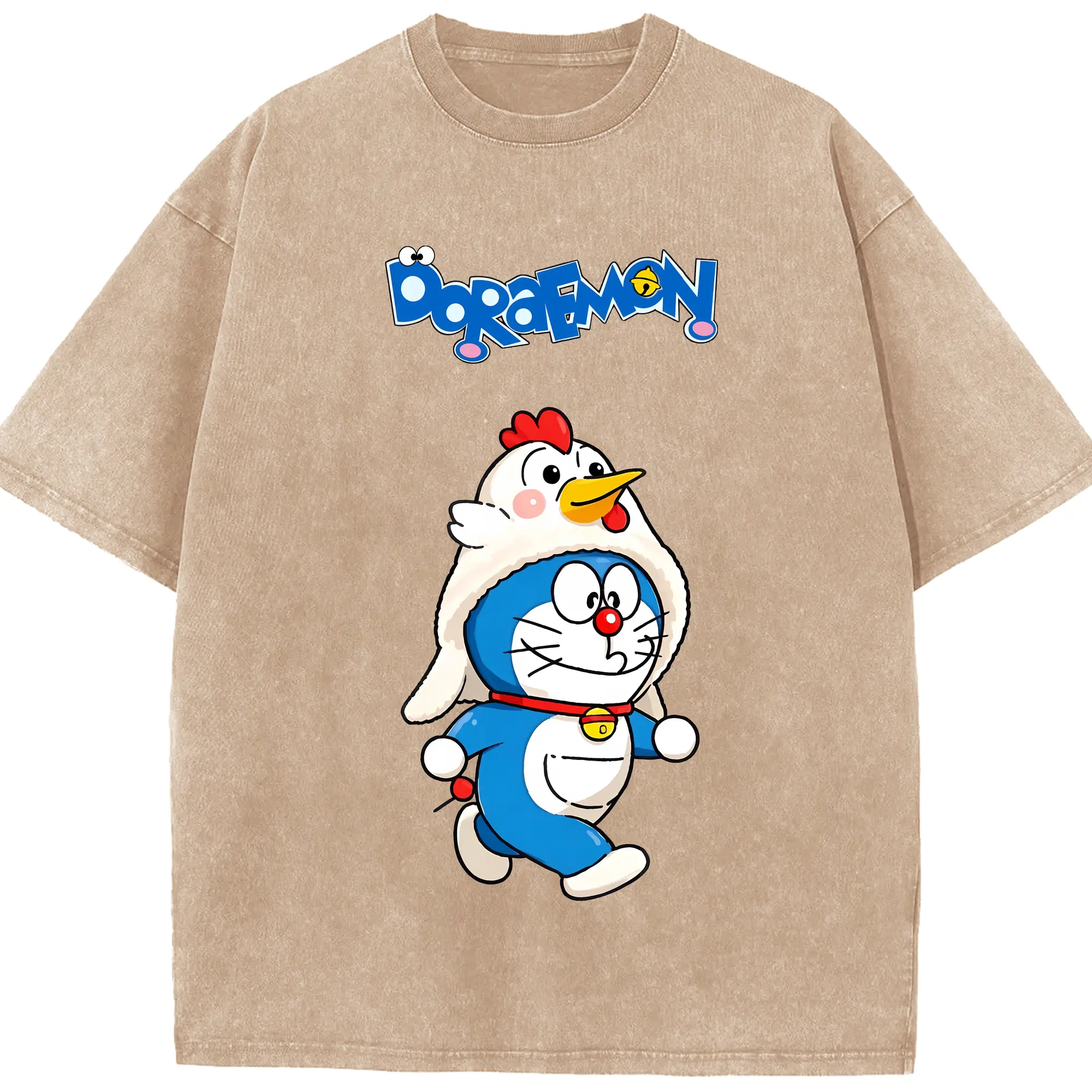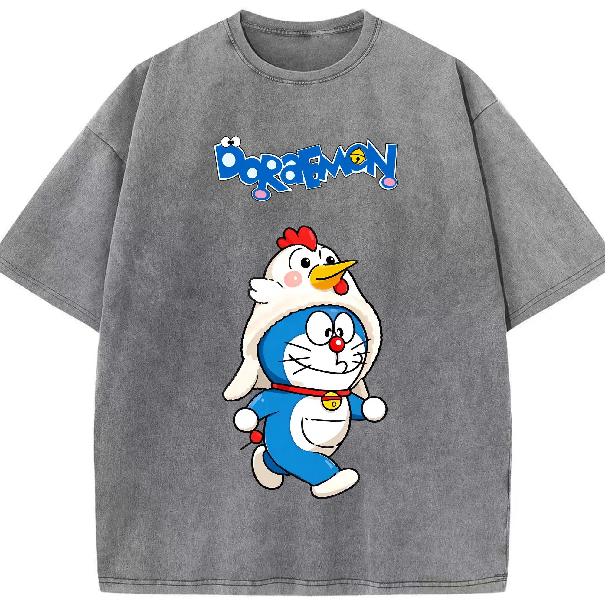ドラえもん グッズドラえもん - 綿100% ヴィンテージ風 半袖Tシャツ ・ 背面プリント ・ 柔らか肌触り ・ 通気性 快適 ・ スポーツ カジュアル 外出用