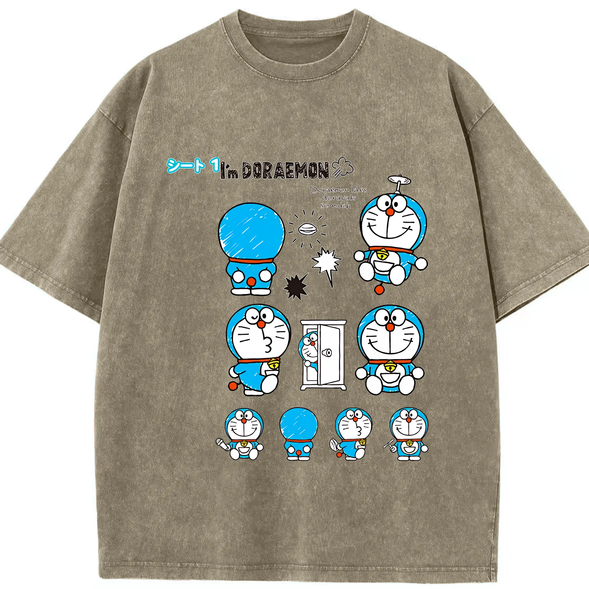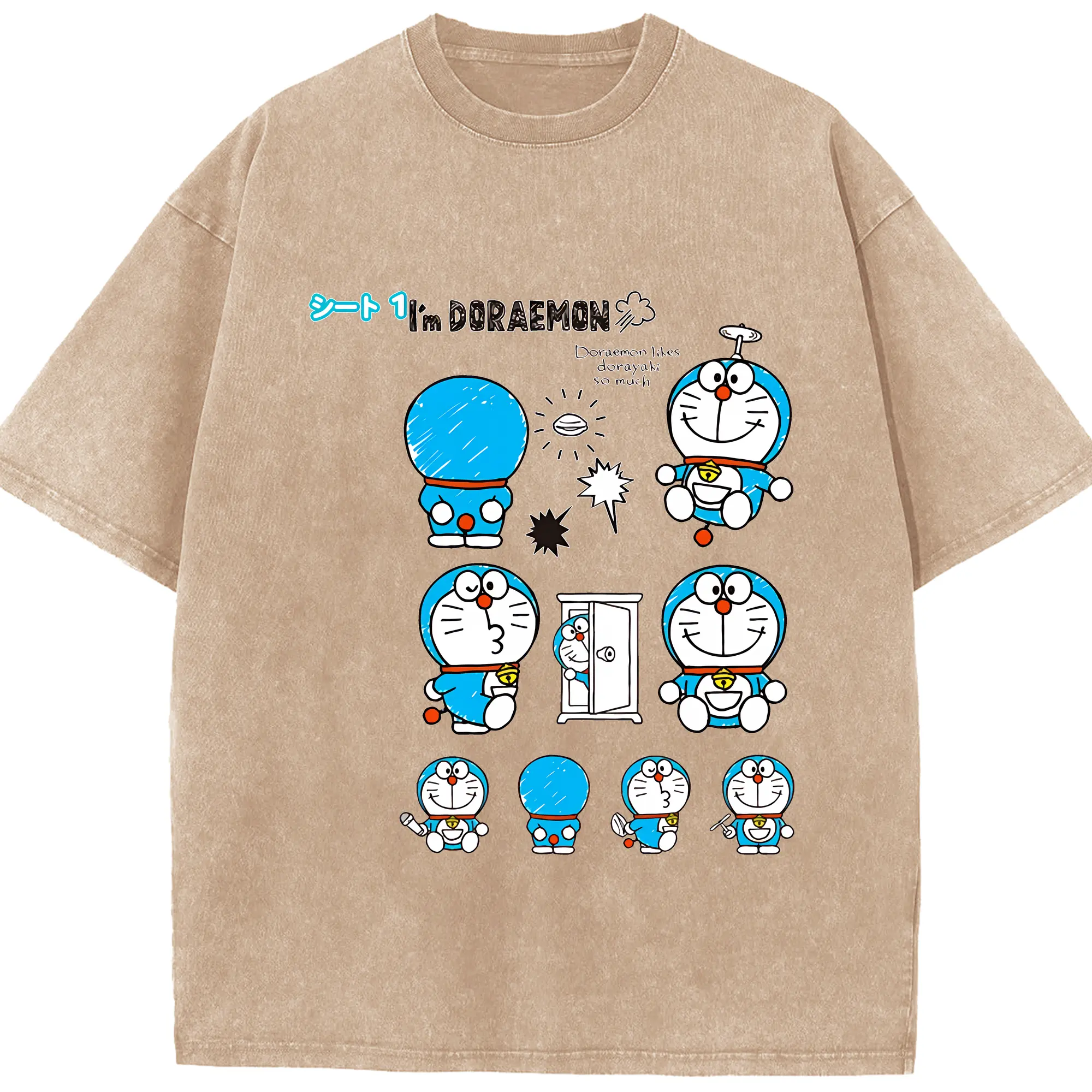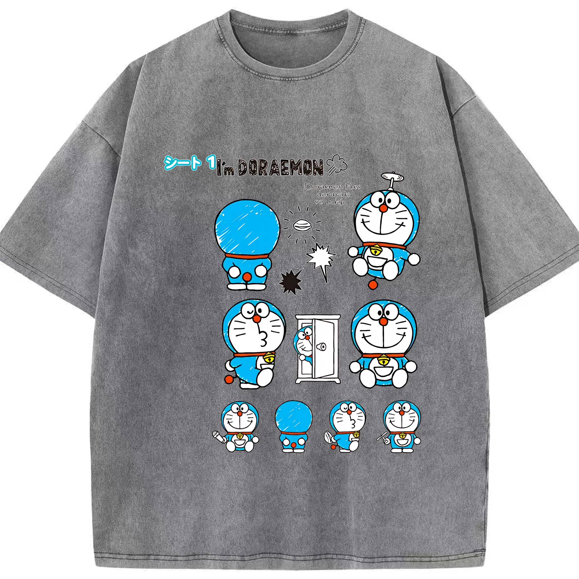 ドラえもん グッズドラえもん - 綿100% ヴィンテージ風 半袖Tシャツ ・ 背面プリント ・ 柔らか肌触り ・ 通気性 快適 ・ スポーツ カジュアル 外出用