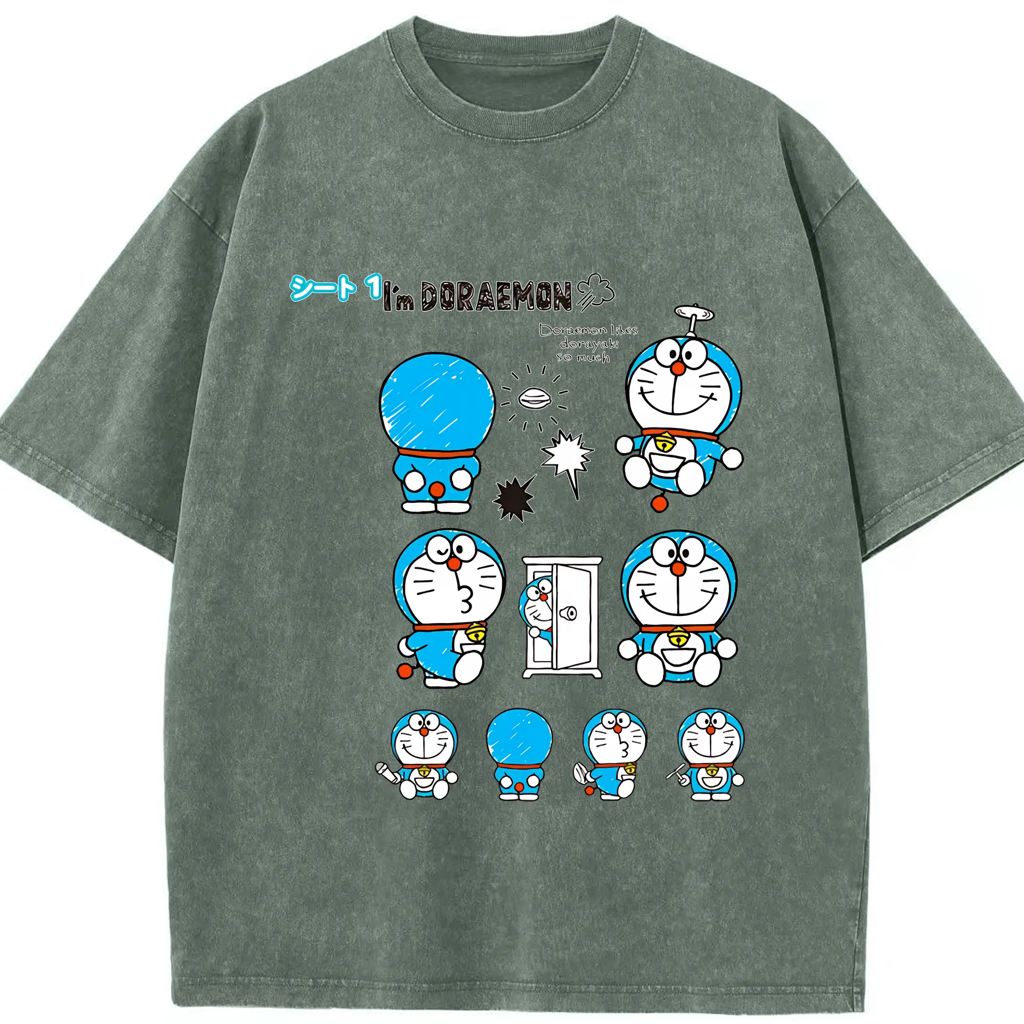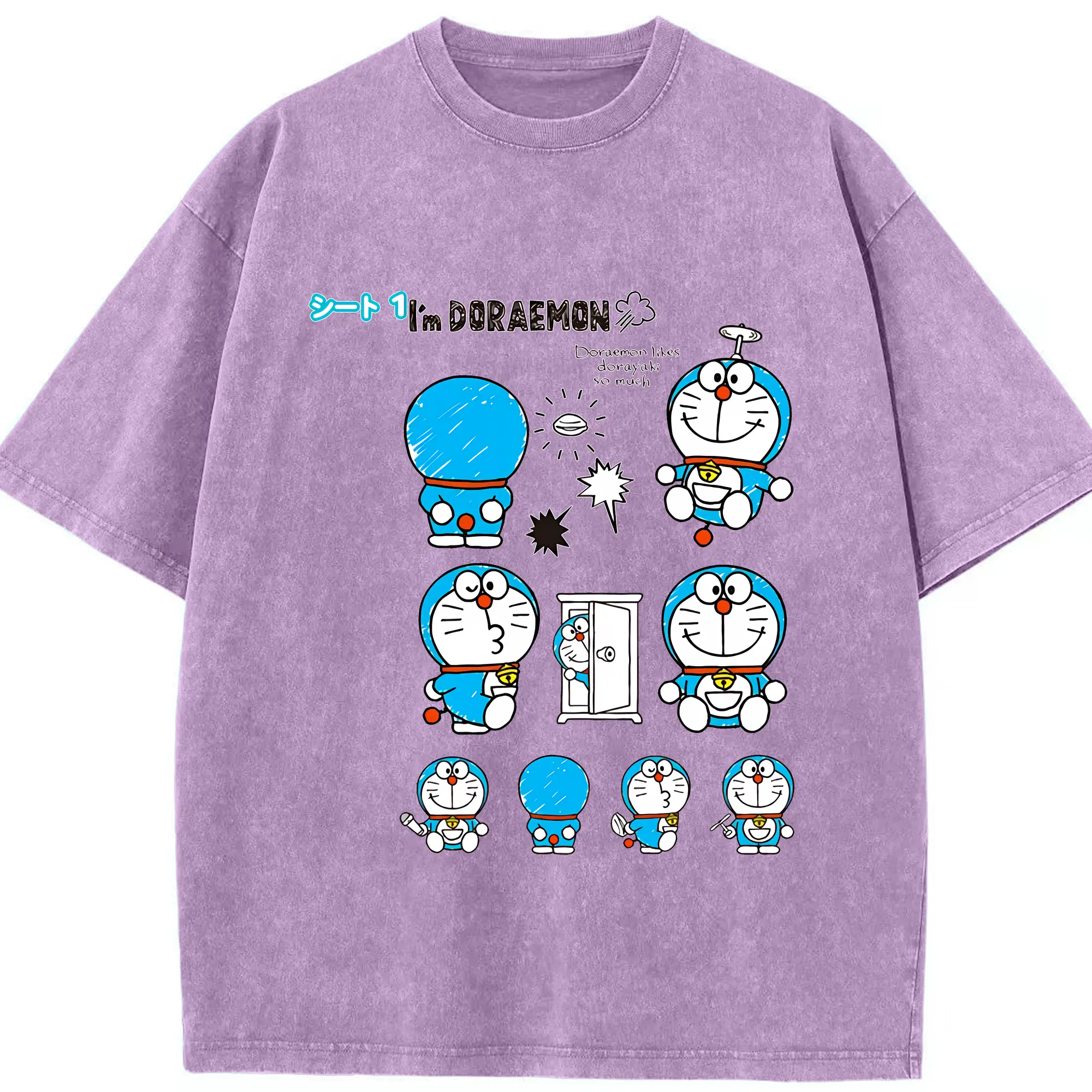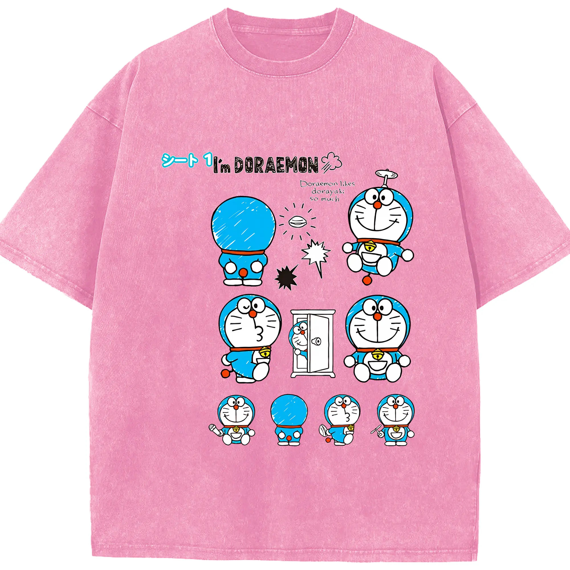 ドラえもん グッズドラえもん - 綿100% ヴィンテージ風 半袖Tシャツ ・ 背面プリント ・ 柔らか肌触り ・ 通気性 快適 ・ スポーツ カジュアル 外出用