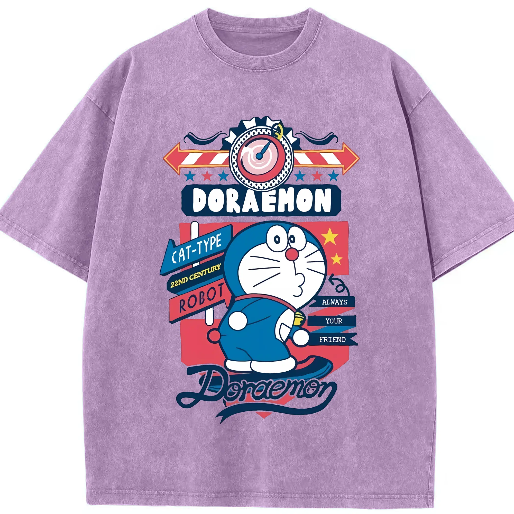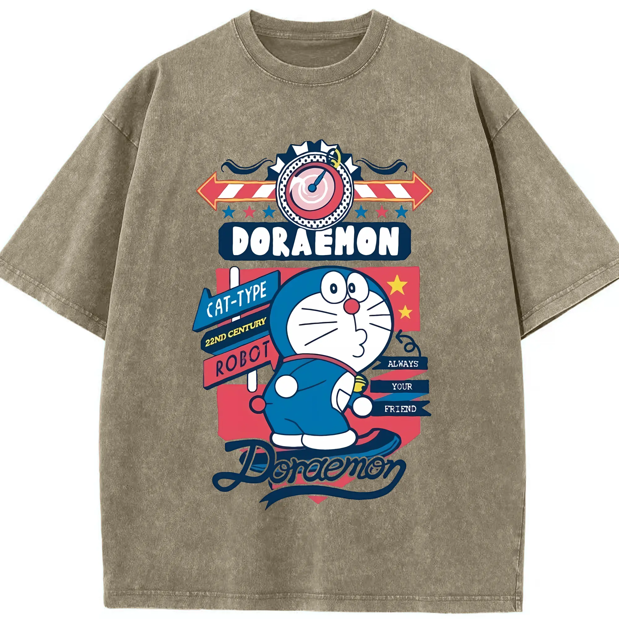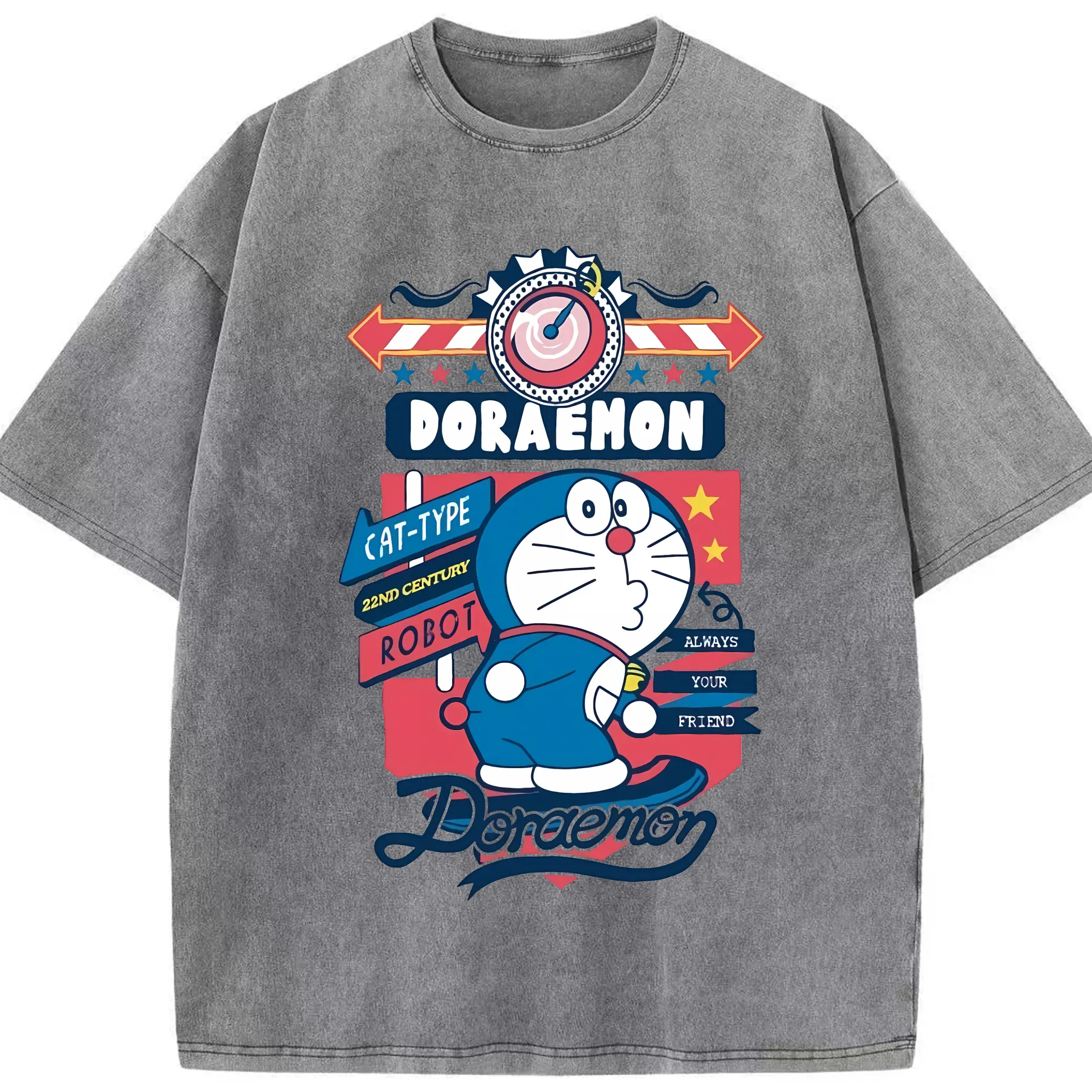 ドラえもん グッズドラえもん - 綿100% ヴィンテージ風 半袖Tシャツ ・ 背面プリント ・ 柔らか肌触り ・ 通気性 快適 ・ スポーツ カジュアル 外出用