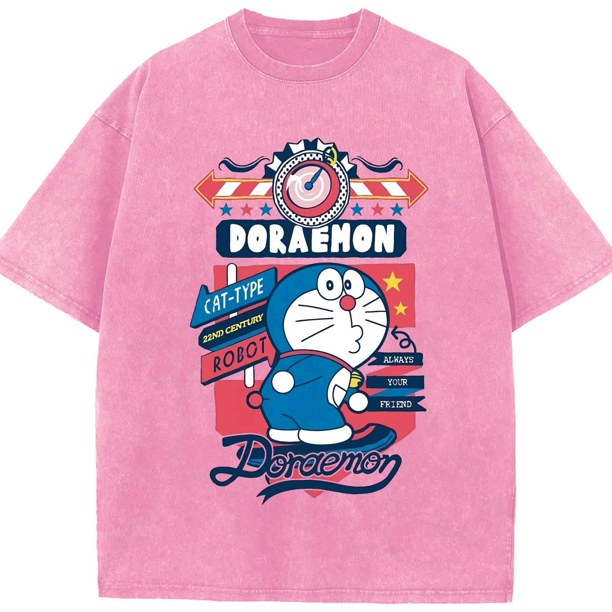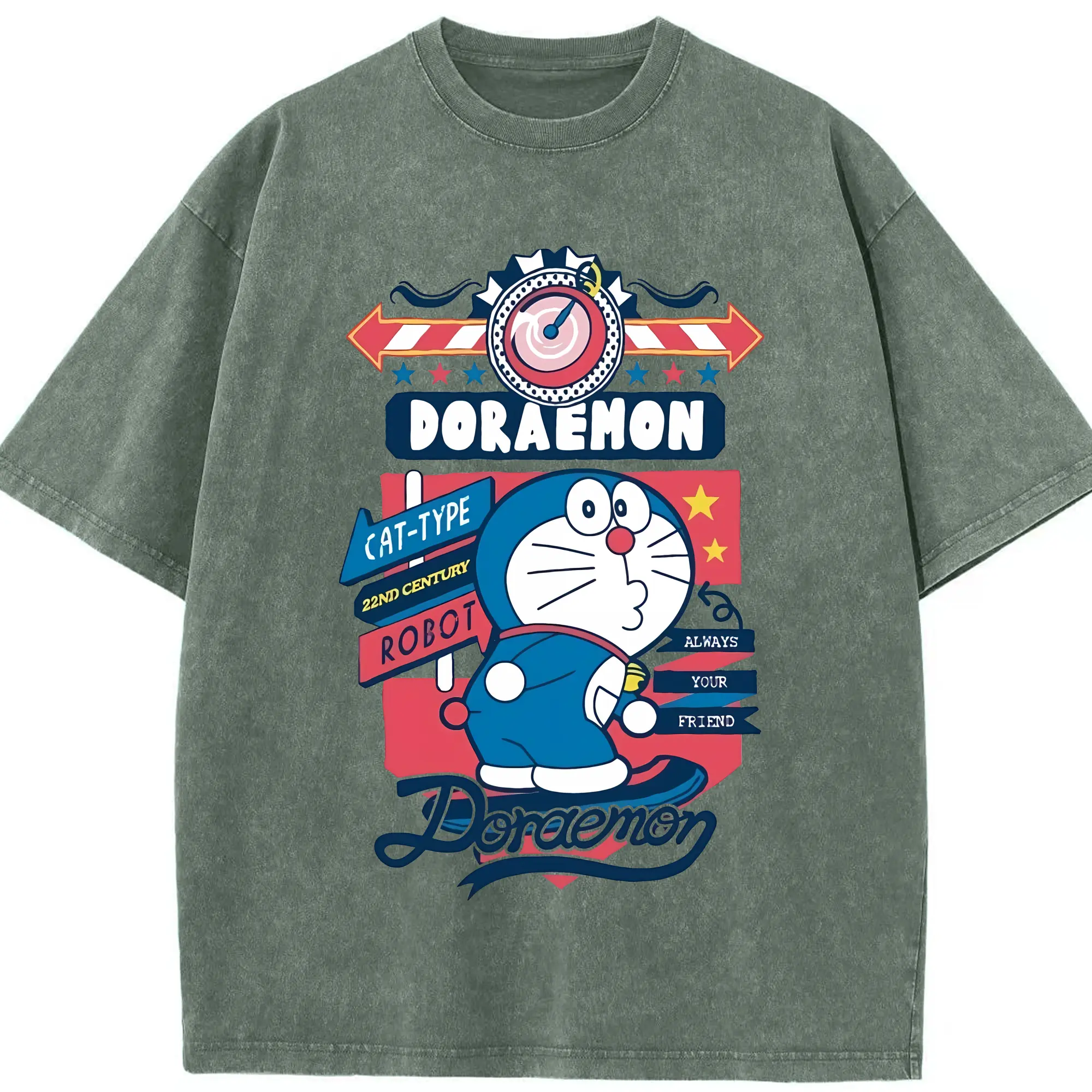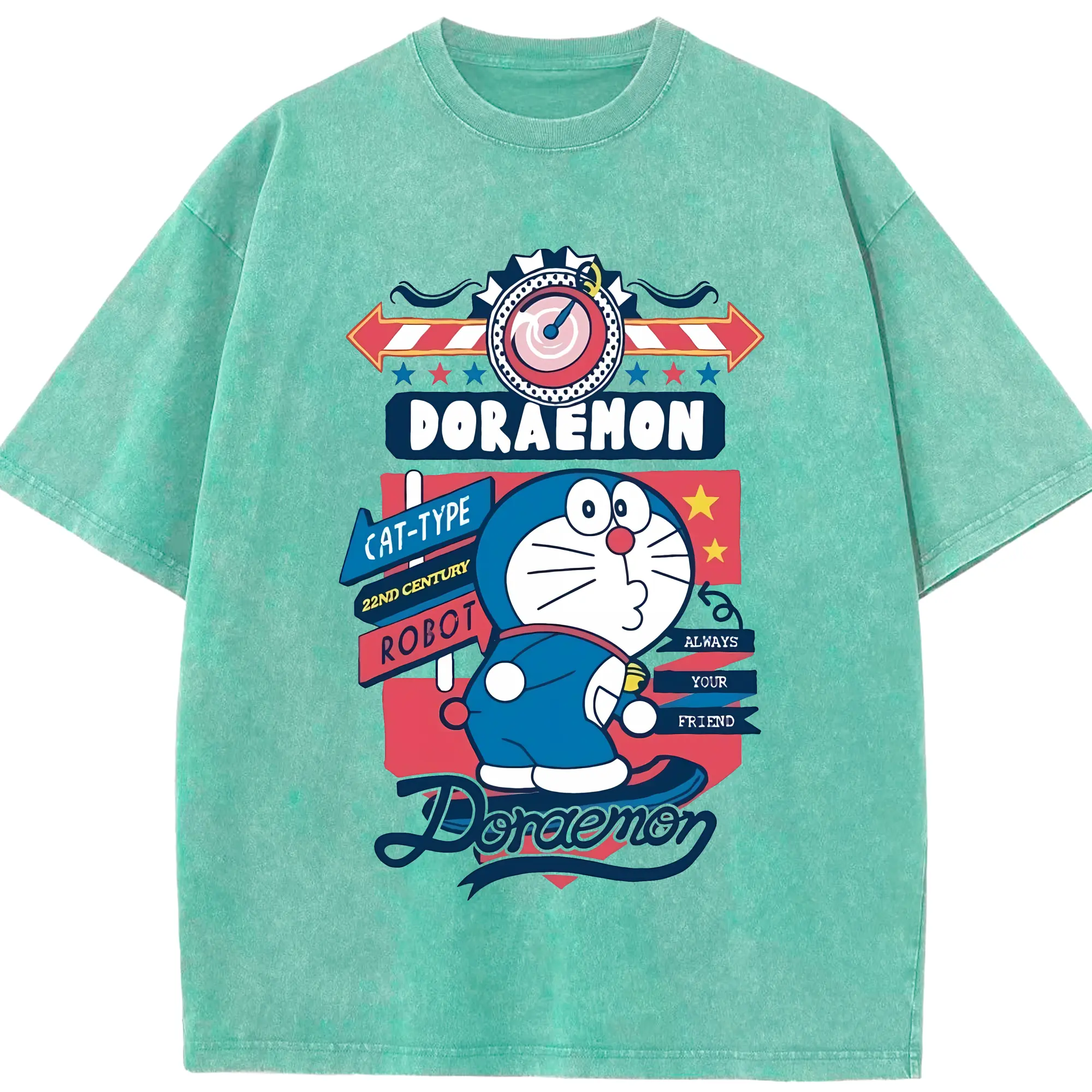 ドラえもん グッズドラえもん - 綿100% ヴィンテージ風 半袖Tシャツ ・ 背面プリント ・ 柔らか肌触り ・ 通気性 快適 ・ スポーツ カジュアル 外出用