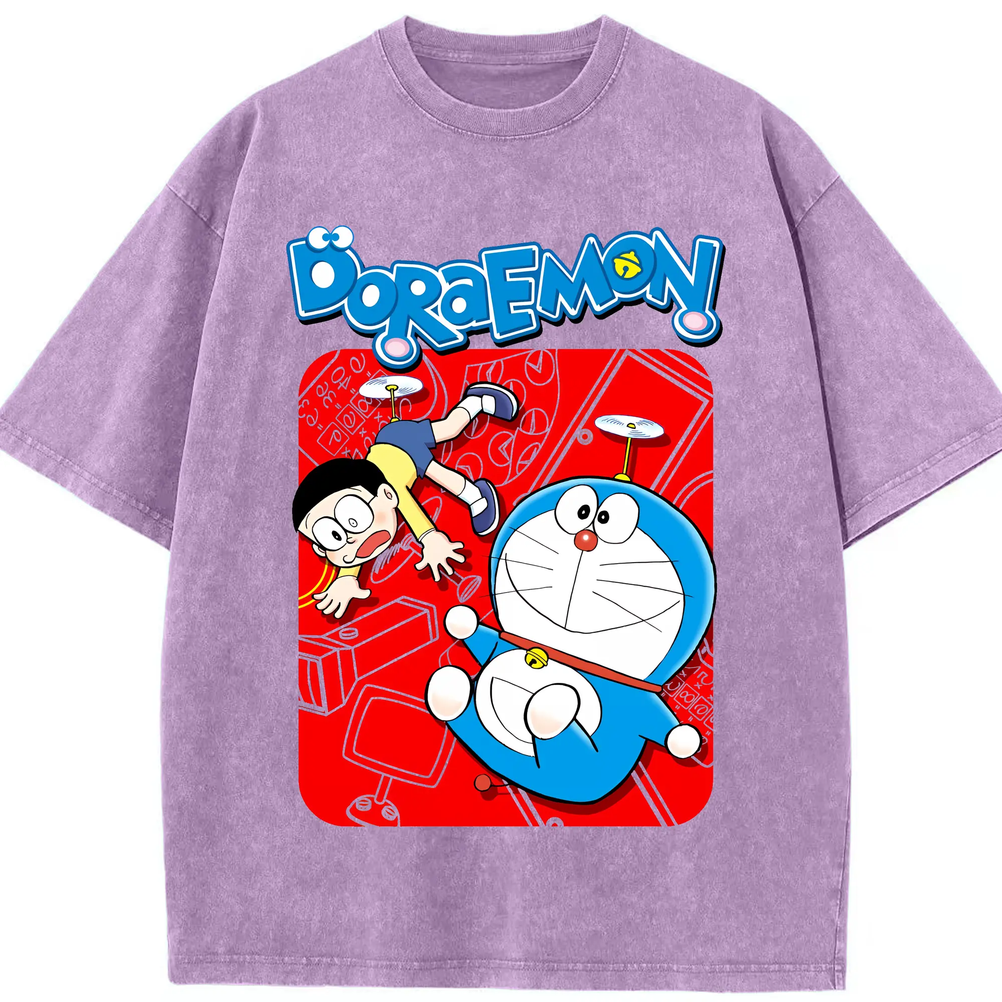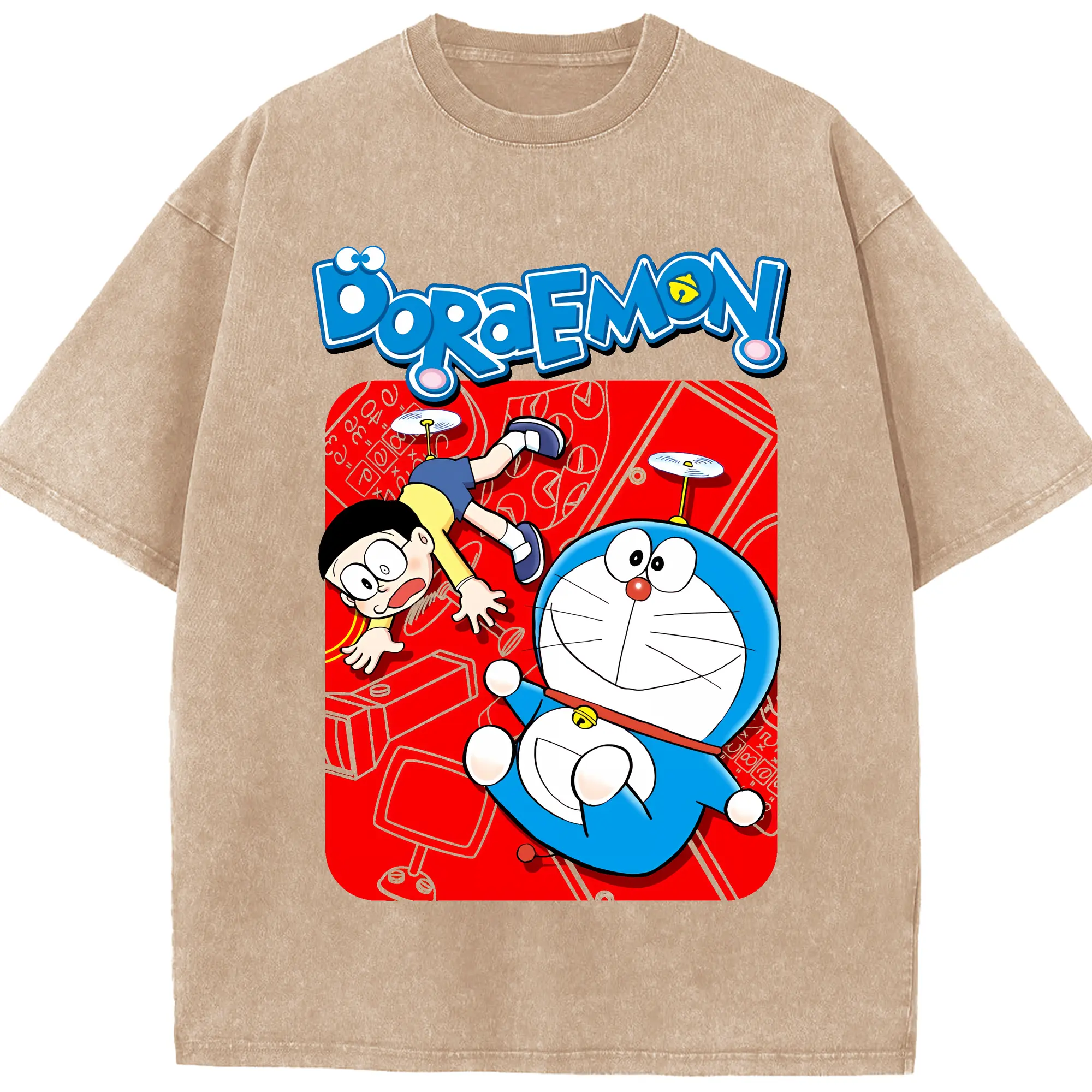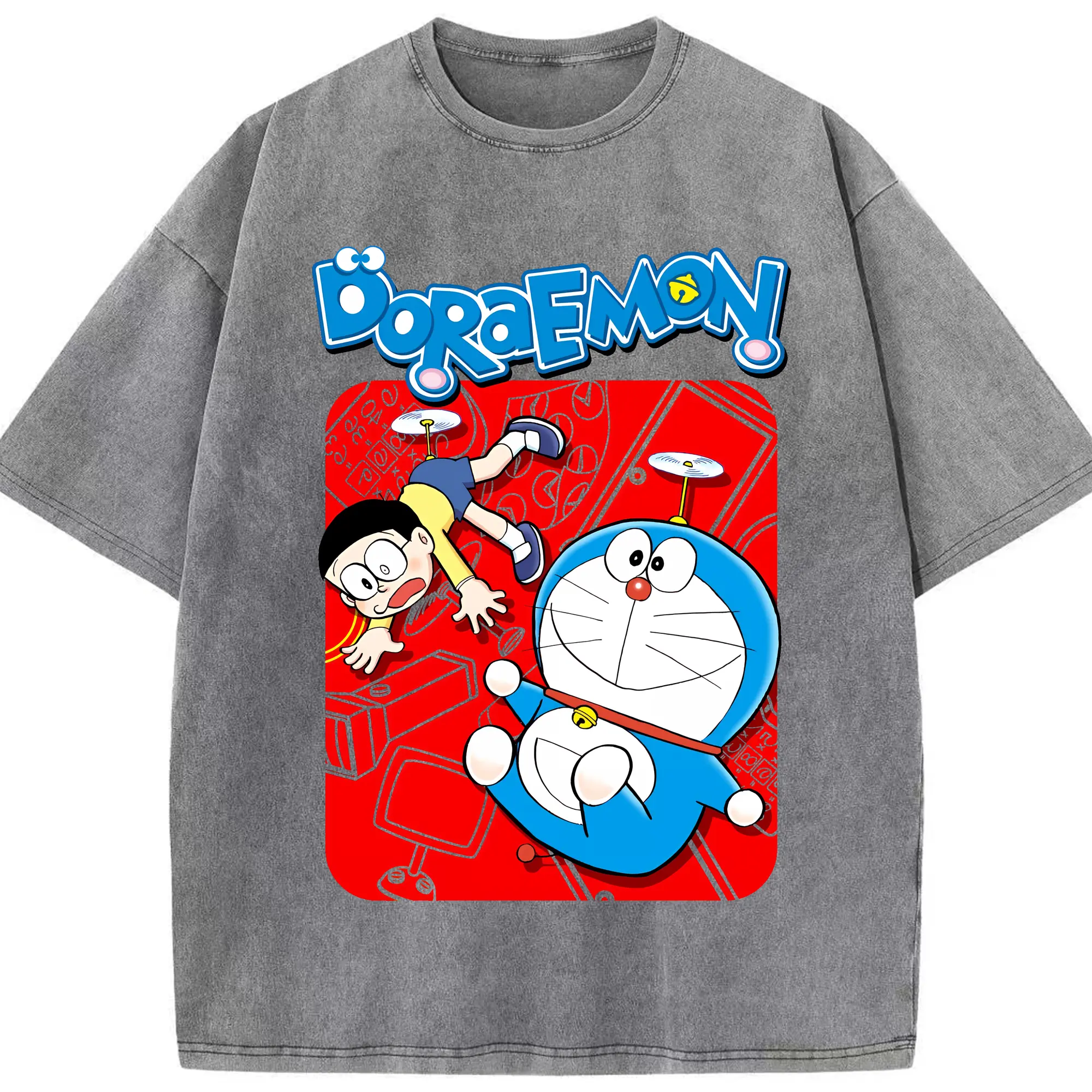 ドラえもん グッズドラえもん - 綿100% ヴィンテージ風 半袖Tシャツ ・ 背面プリント ・ 柔らか肌触り ・ 通気性 快適 ・ スポーツ カジュアル 外出用