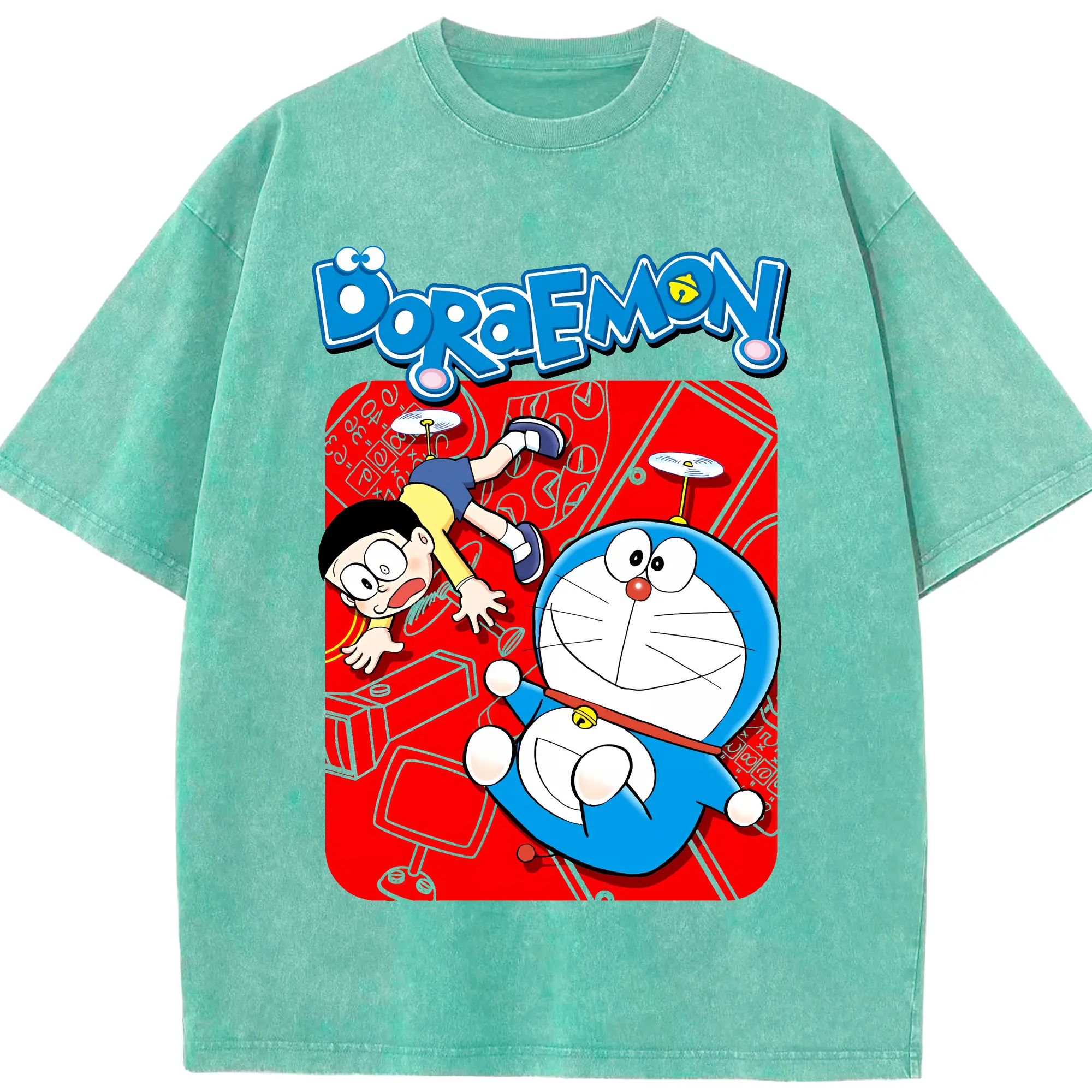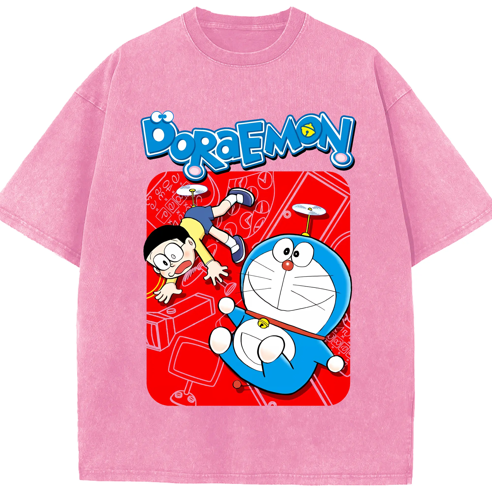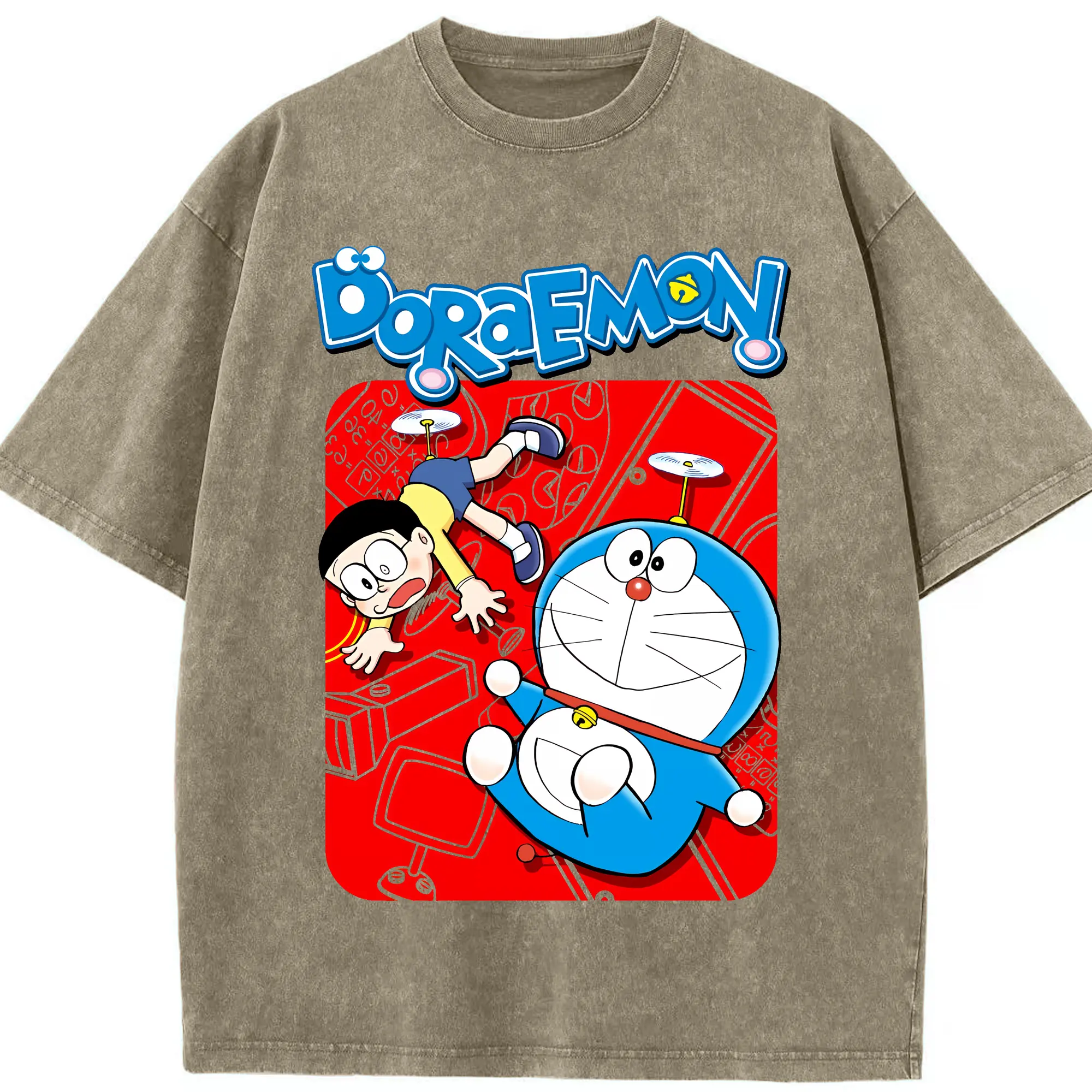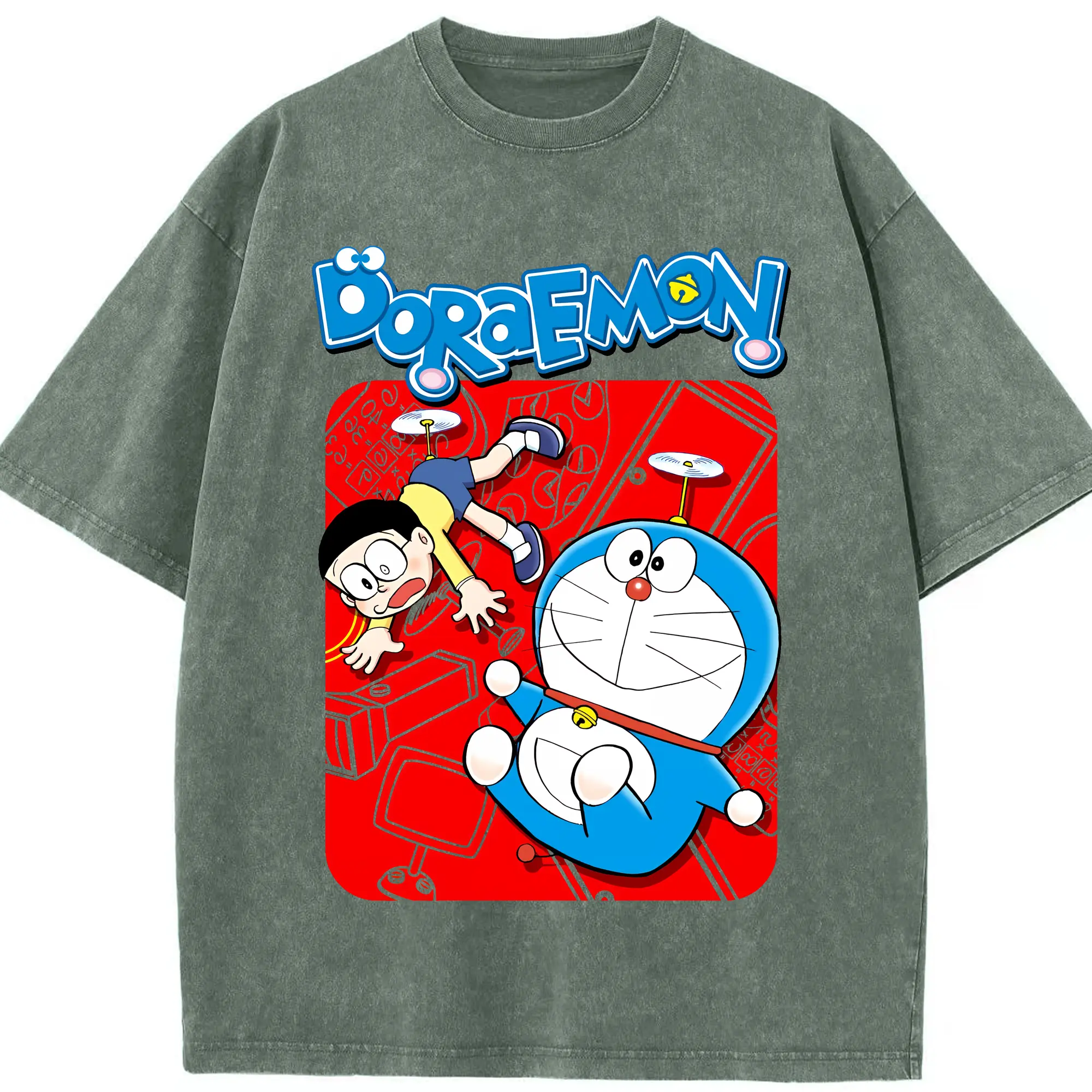ドラえもん グッズドラえもん - 綿100% ヴィンテージ風 半袖Tシャツ ・ 背面プリント ・ 柔らか肌触り ・ 通気性 快適 ・ スポーツ カジュアル 外出用