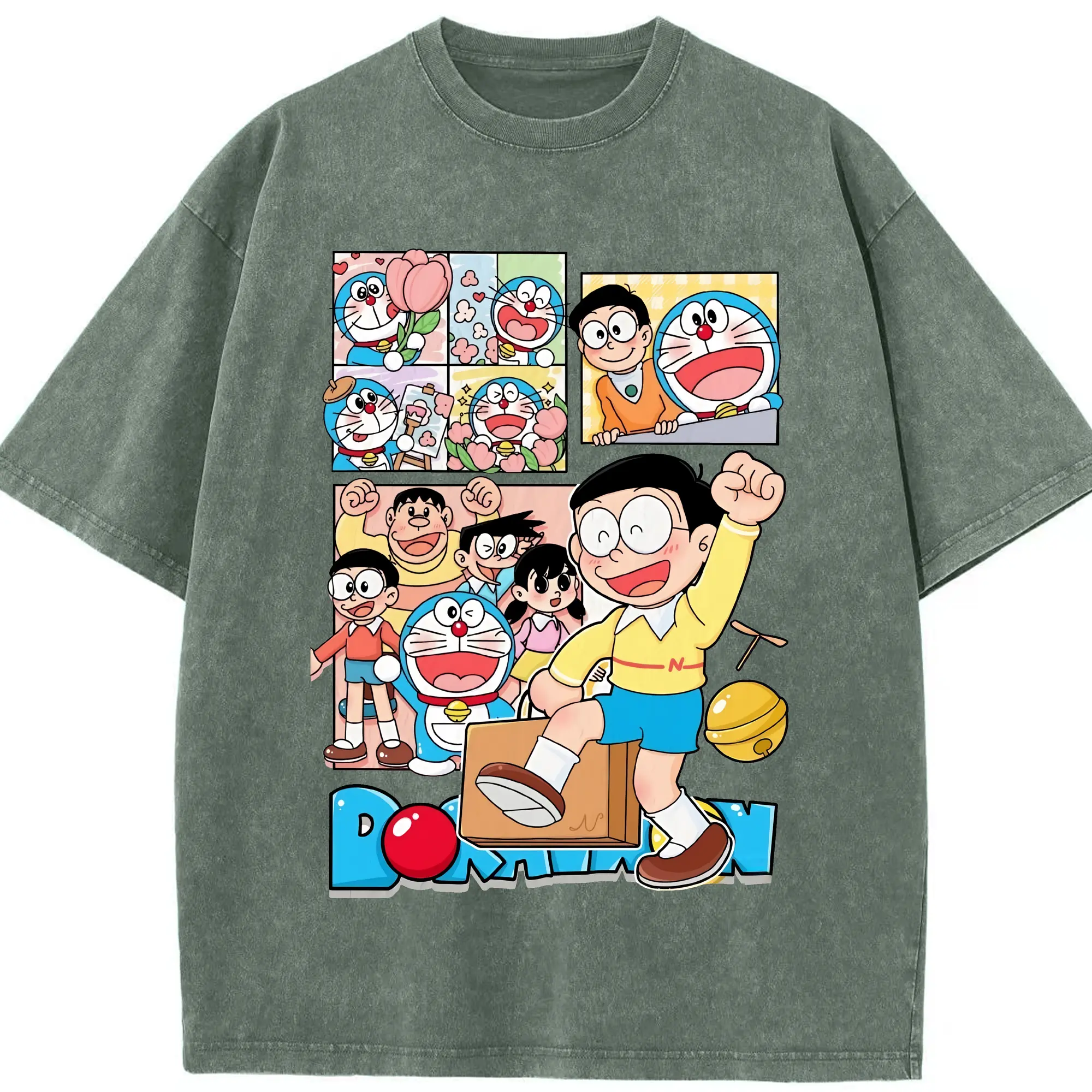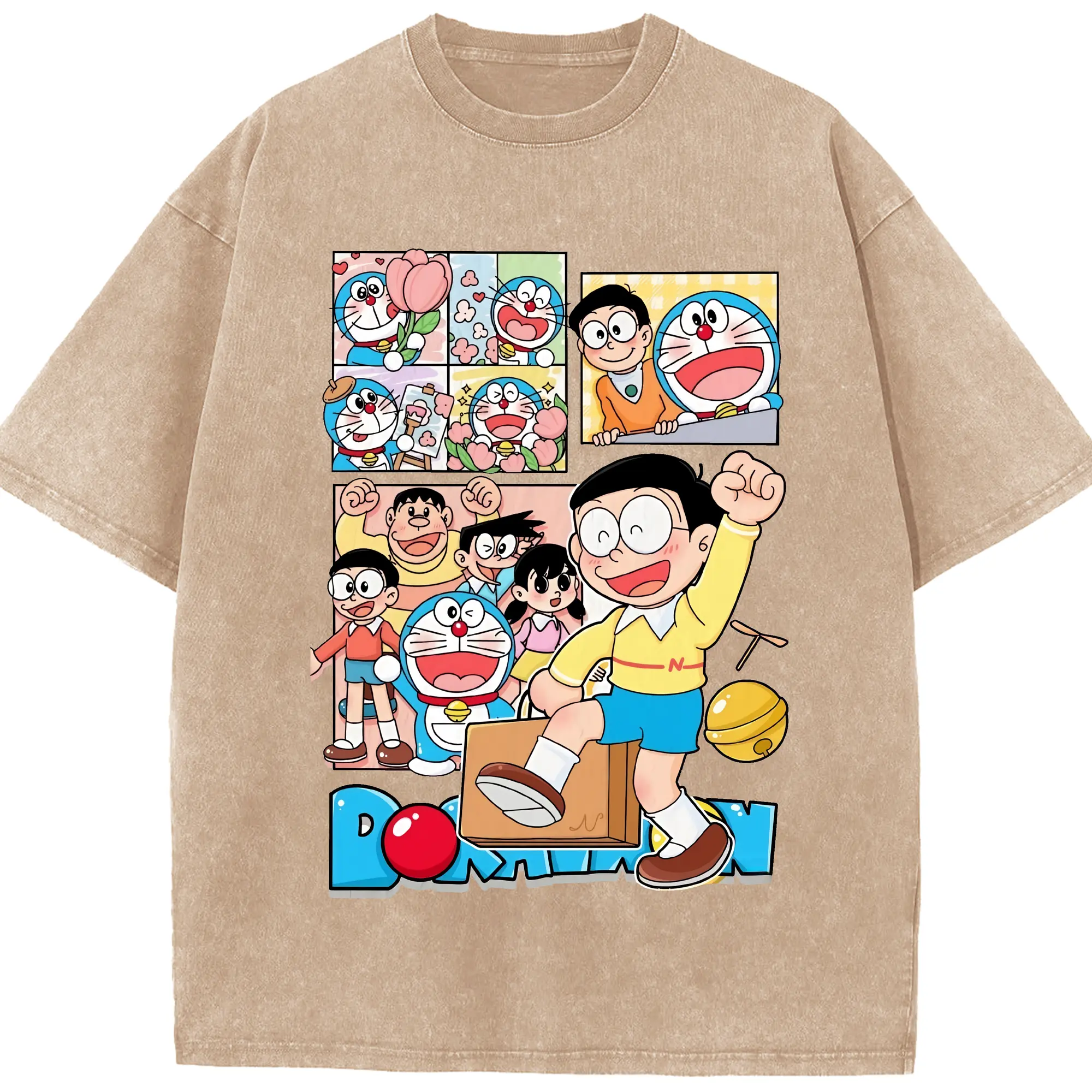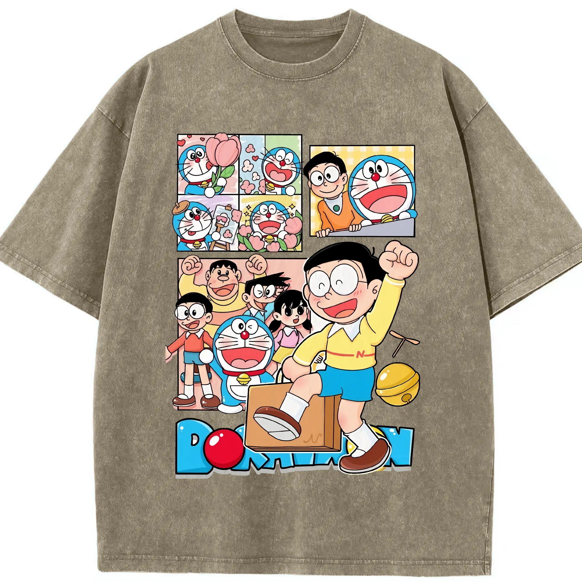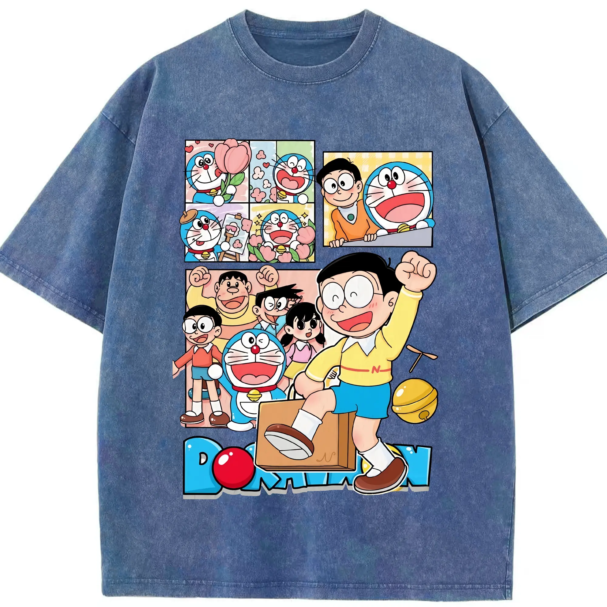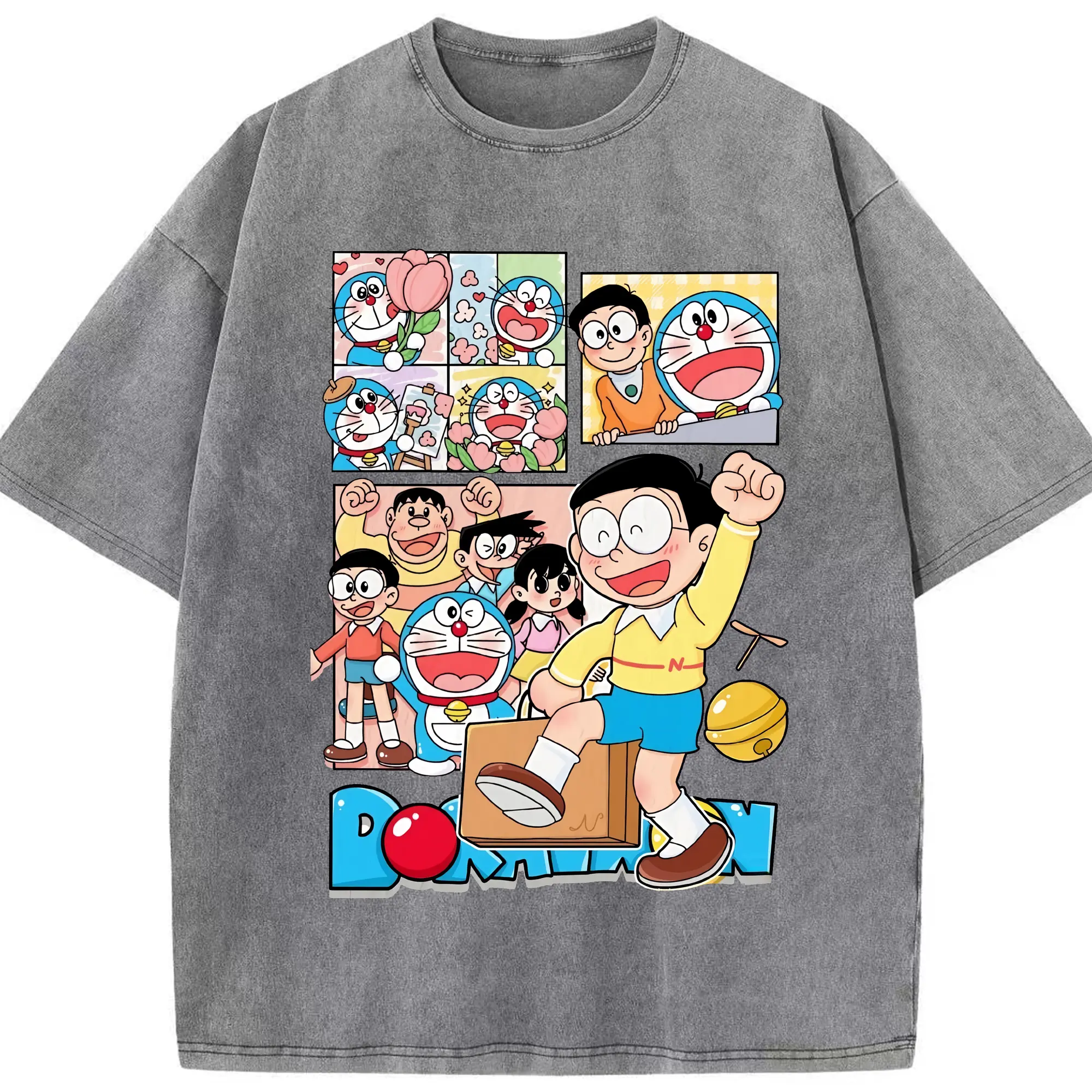ドラえもん グッズドラえもん - 綿100% ヴィンテージ風 半袖Tシャツ ・ 背面プリント ・ 柔らか肌触り ・ 通気性 快適 ・ スポーツ カジュアル 外出用
