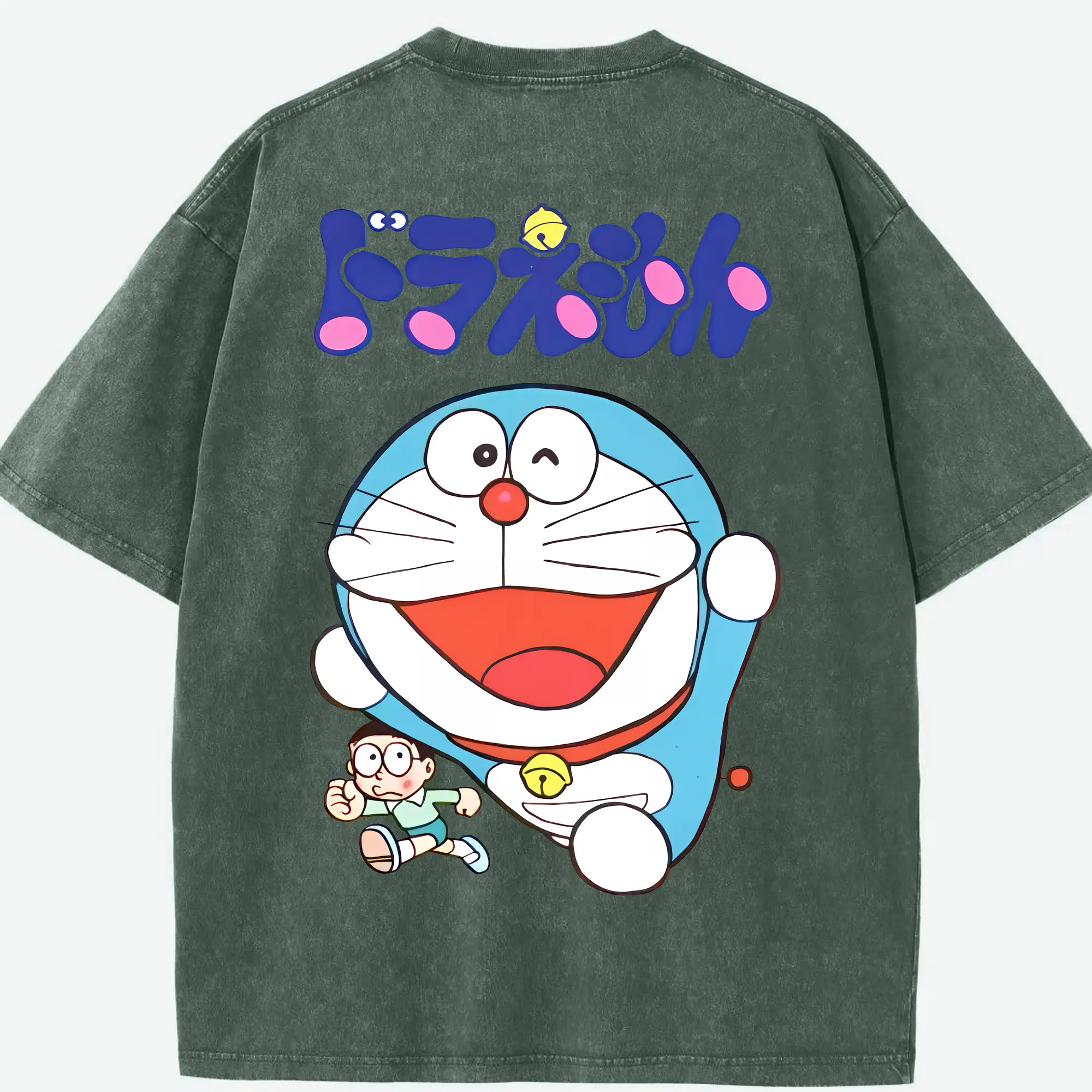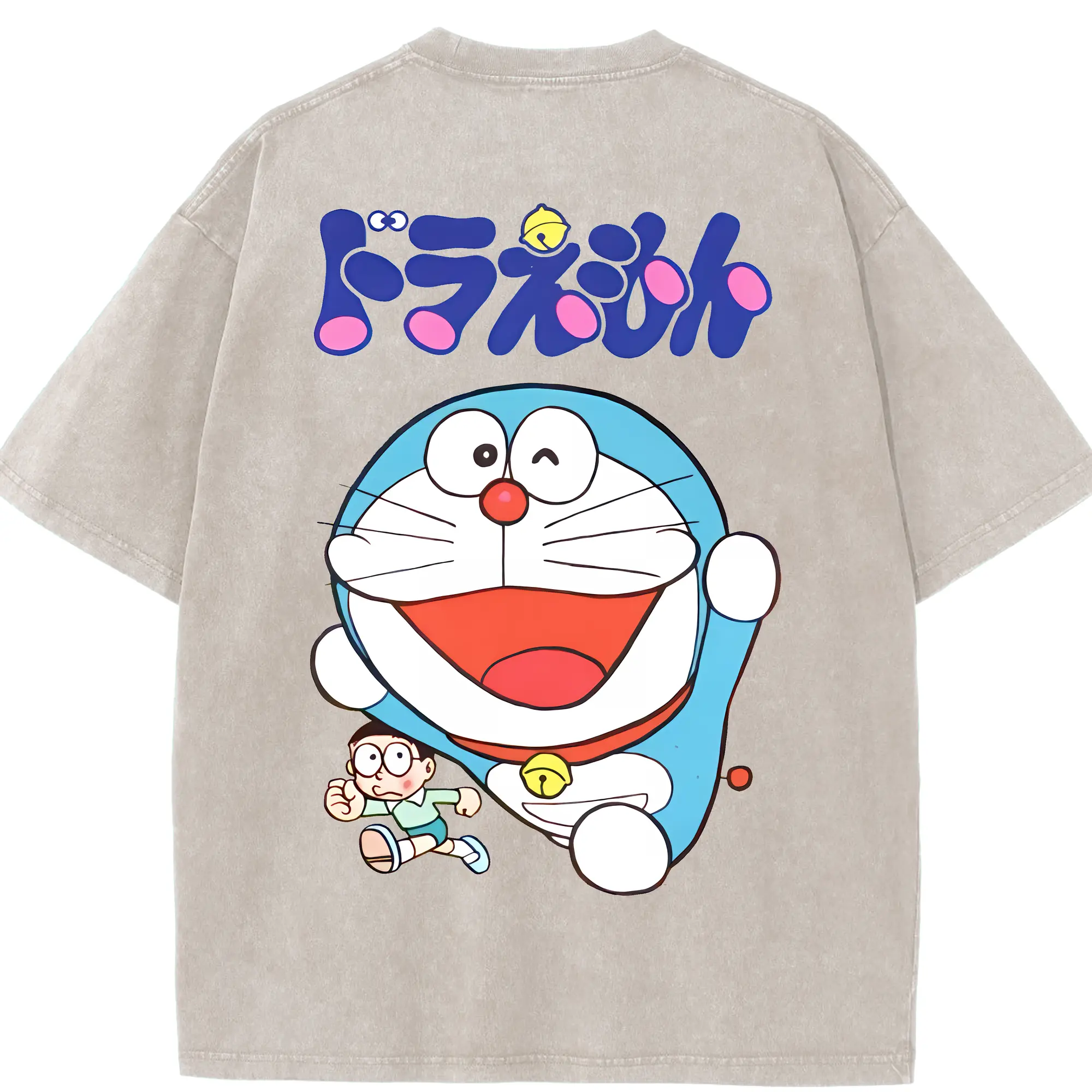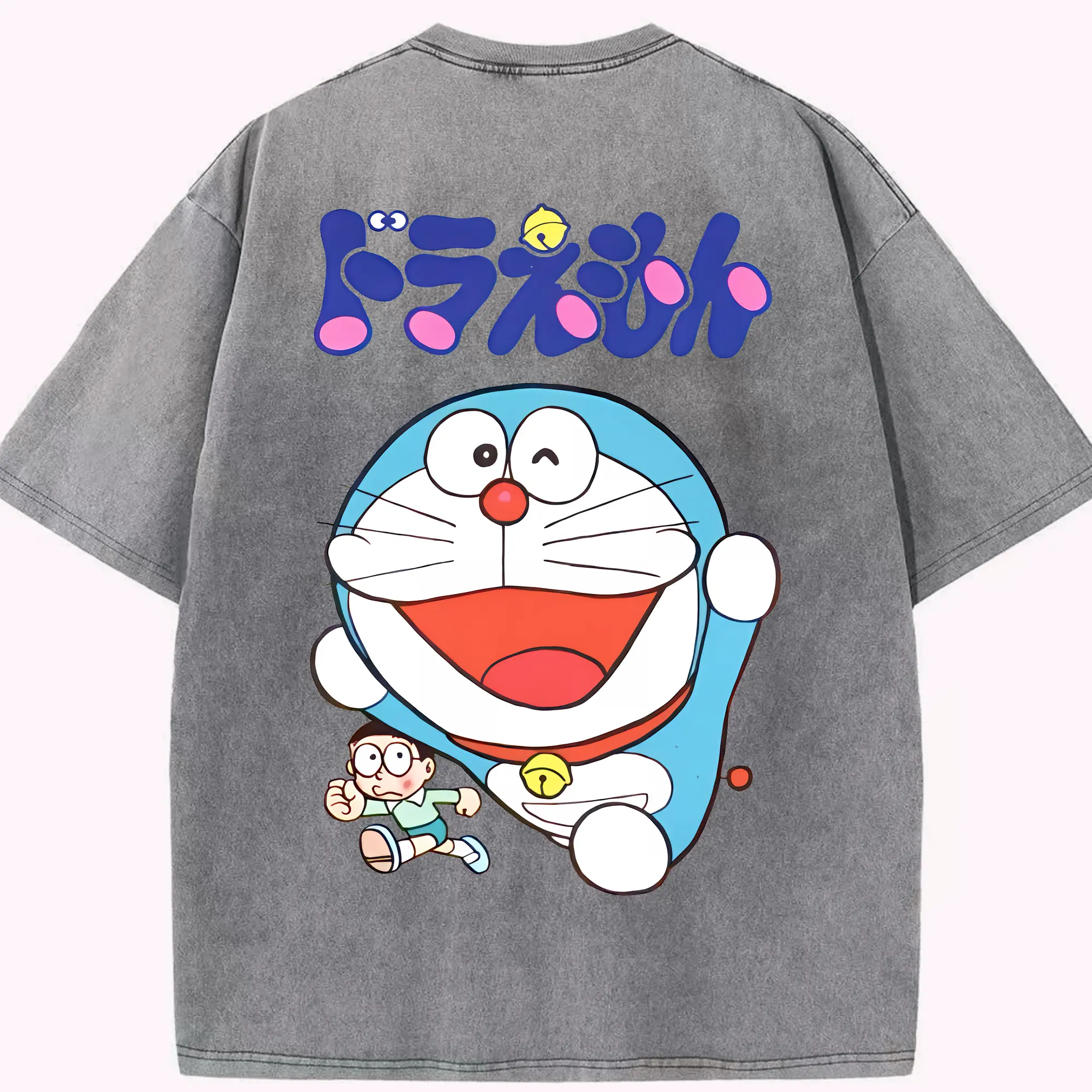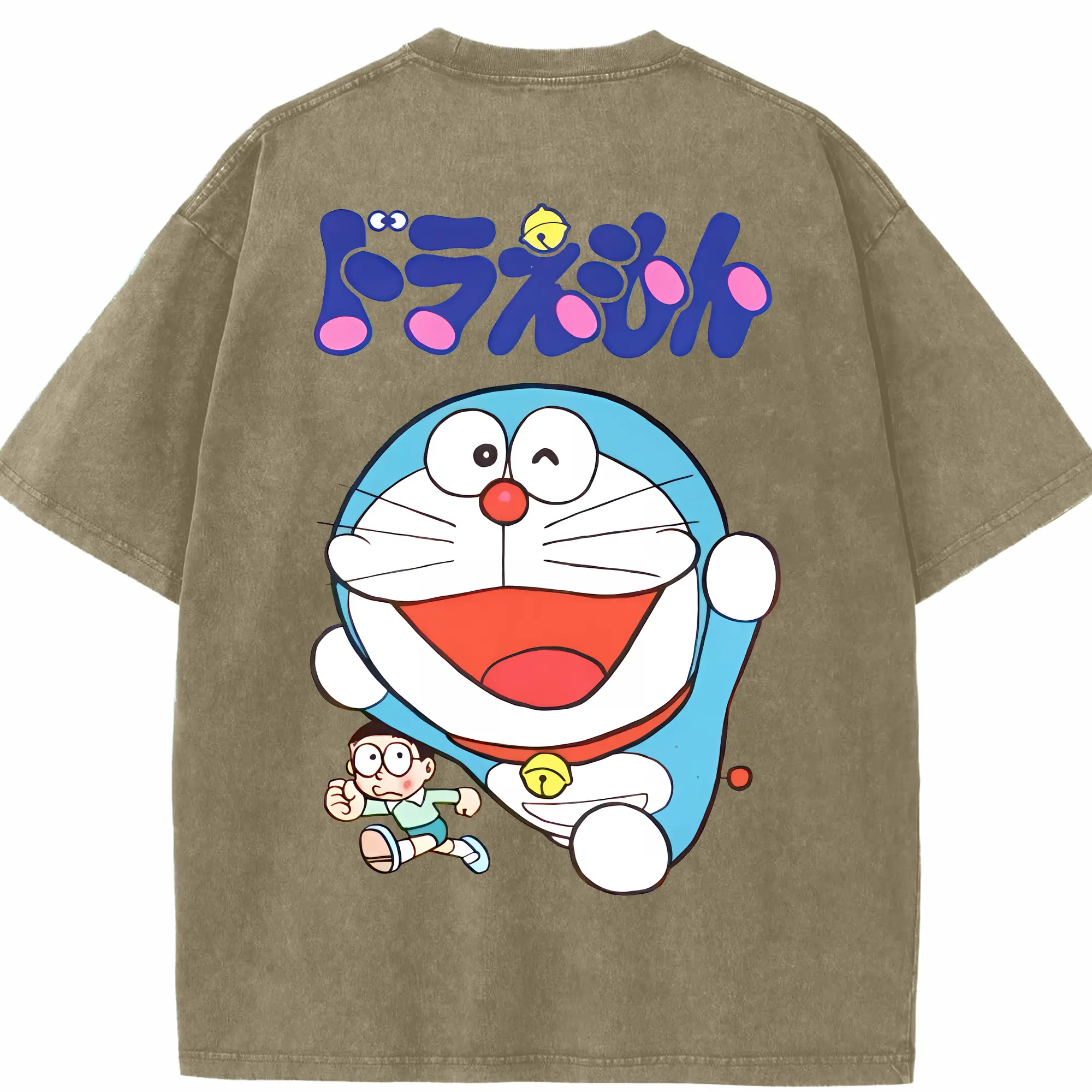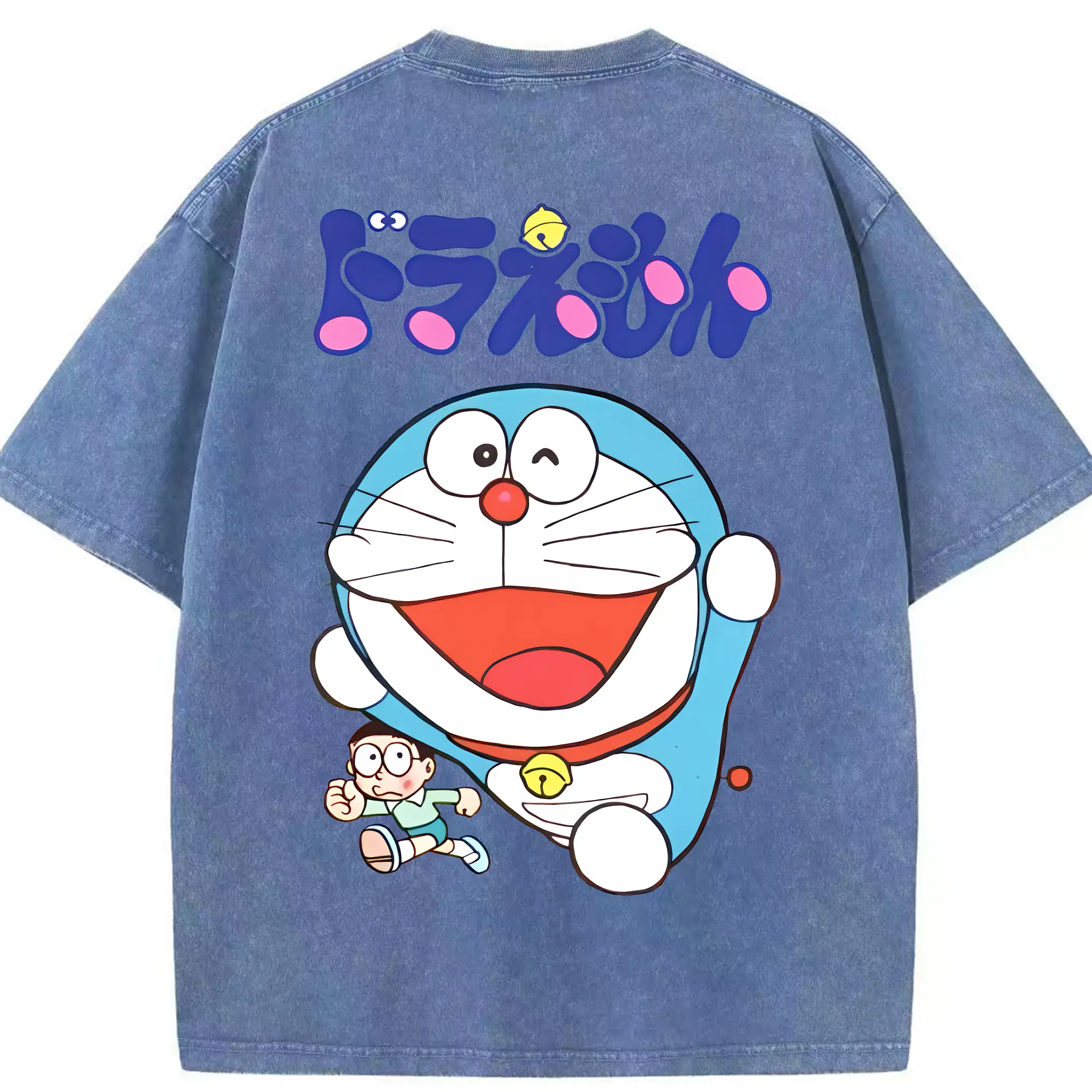 ドラえもん グッズドラえもん - 綿100% ヴィンテージ風 半袖Tシャツ ・ フロントプリント ・ 柔らか肌触り ・ 通気性 快適 ・ スポーツ カジュアル 外出用