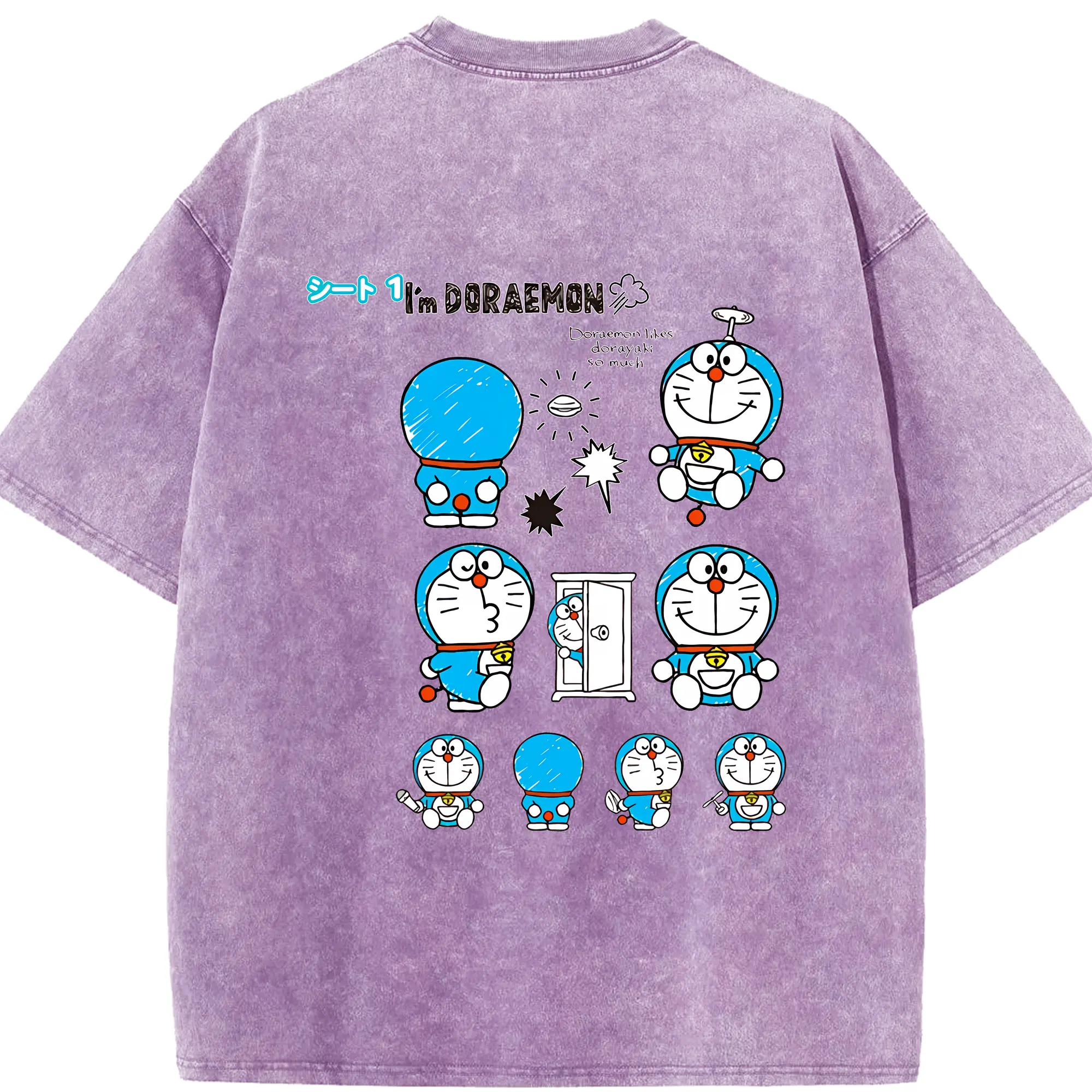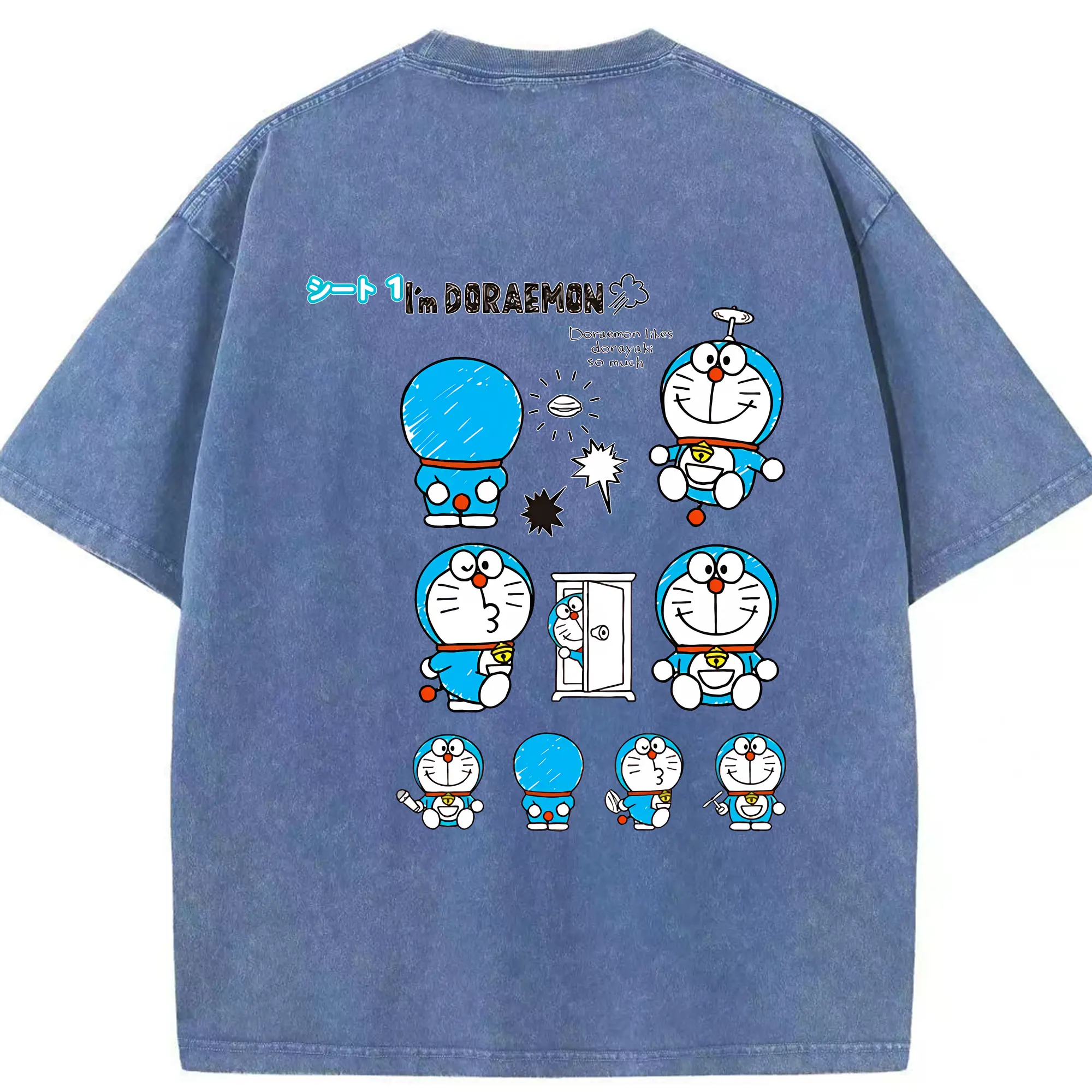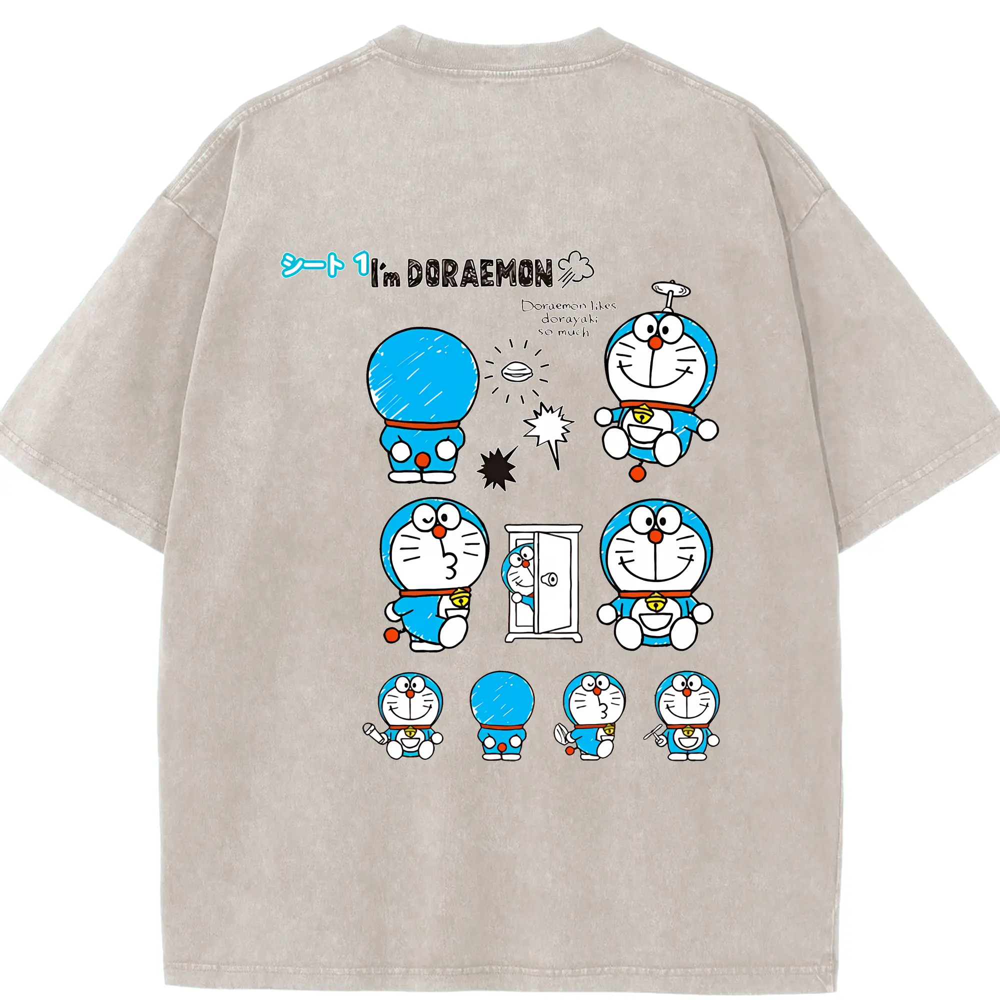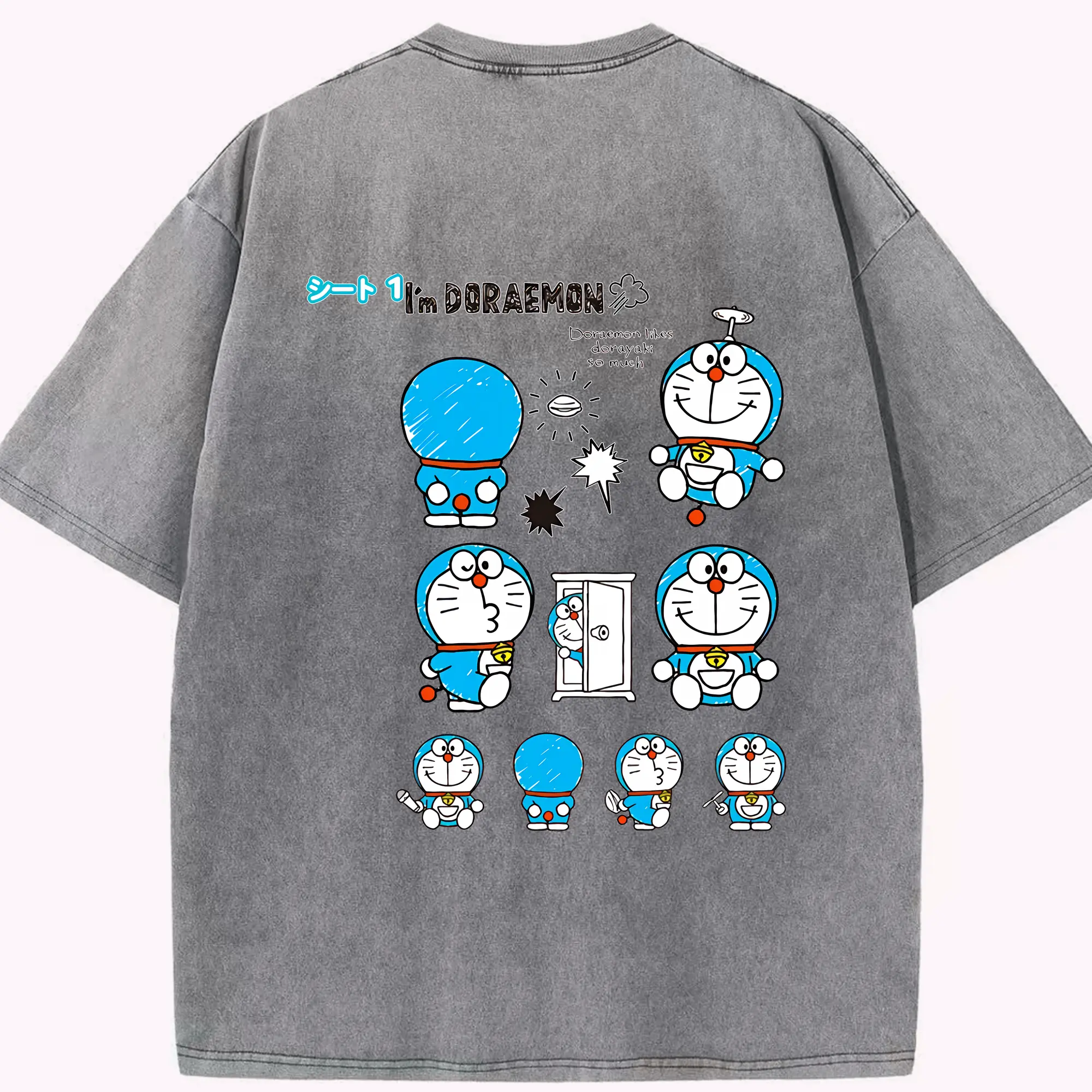 ドラえもん グッズドラえもん - 綿100% ヴィンテージ風 半袖Tシャツ ・ フロントプリント ・ 柔らか肌触り ・ 通気性 快適 ・ スポーツ カジュアル 外出用