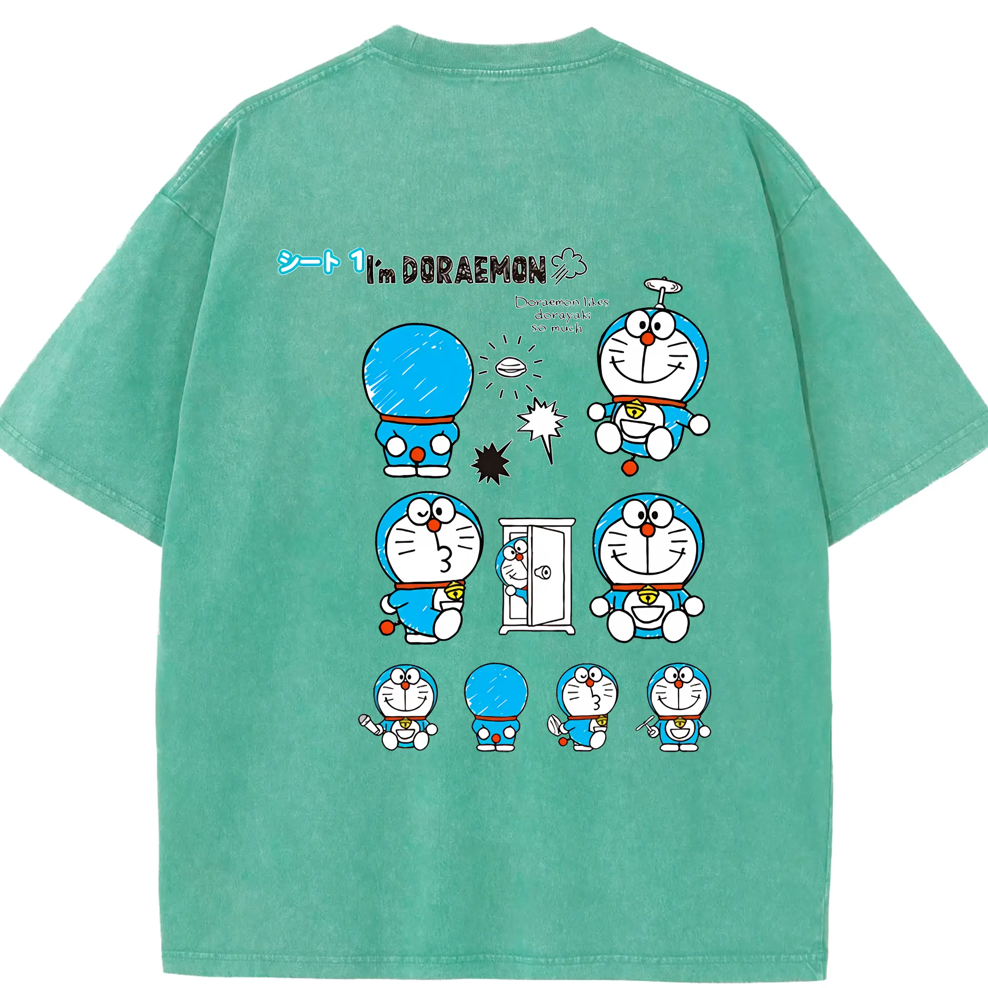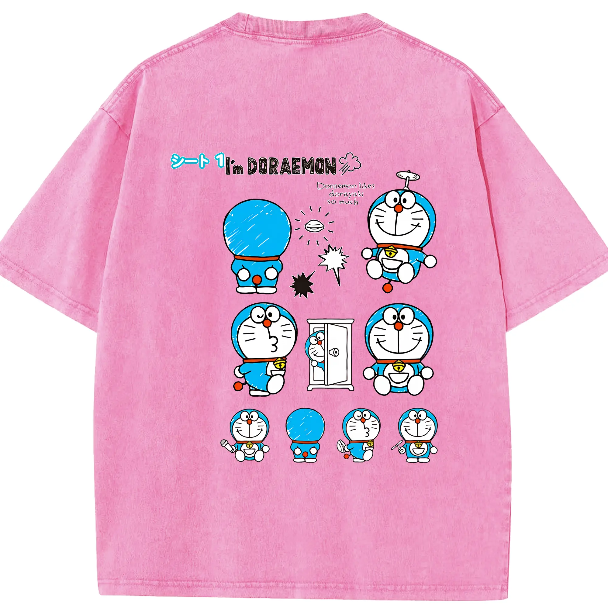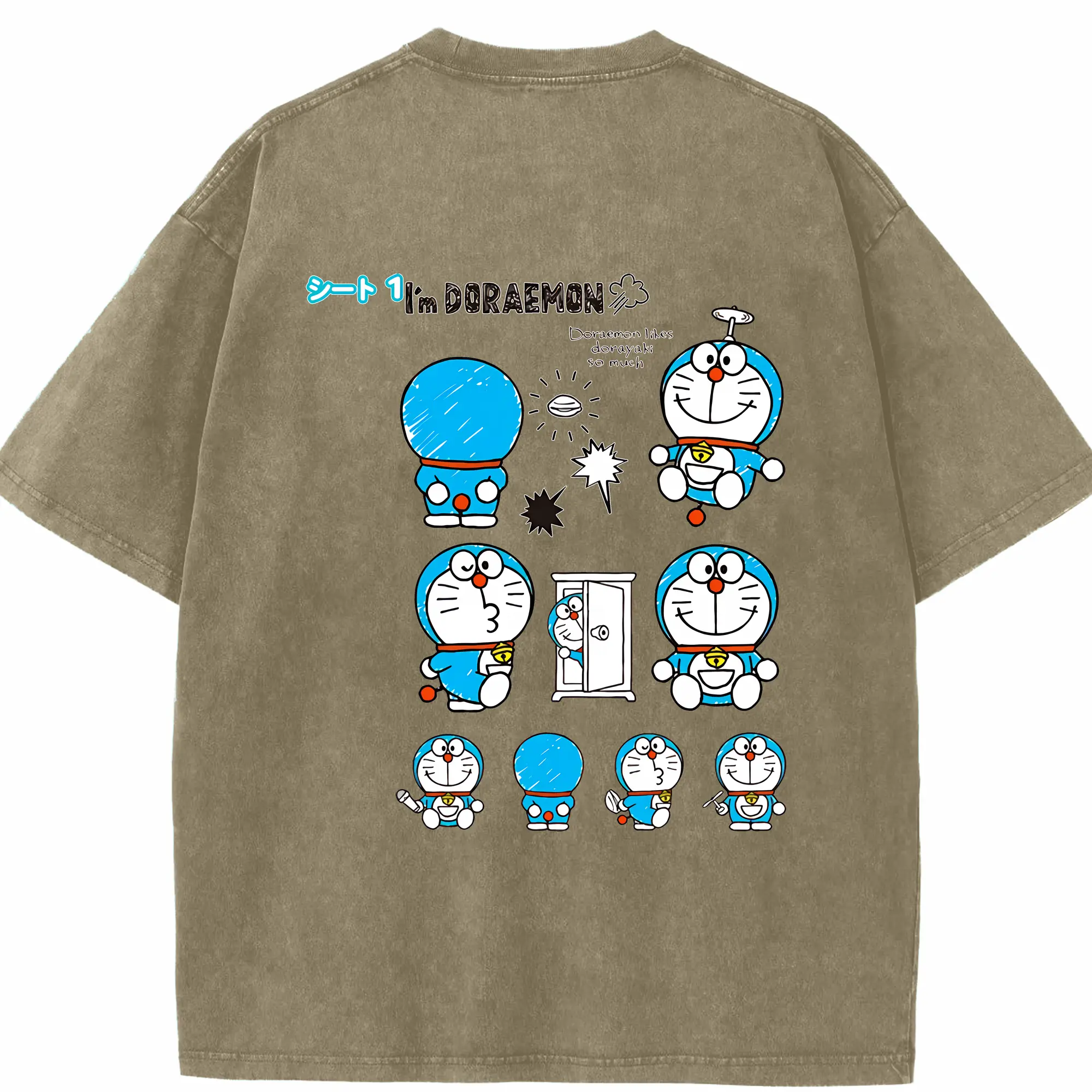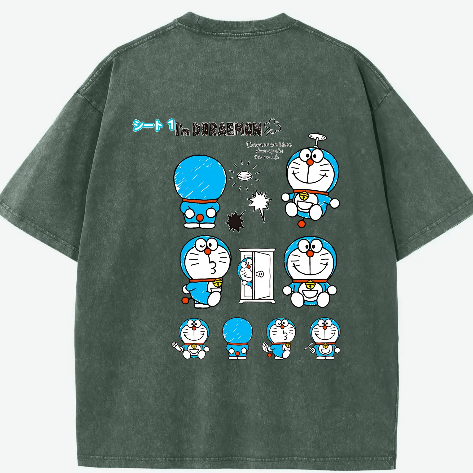 ドラえもん グッズドラえもん - 綿100% ヴィンテージ風 半袖Tシャツ ・ フロントプリント ・ 柔らか肌触り ・ 通気性 快適 ・ スポーツ カジュアル 外出用