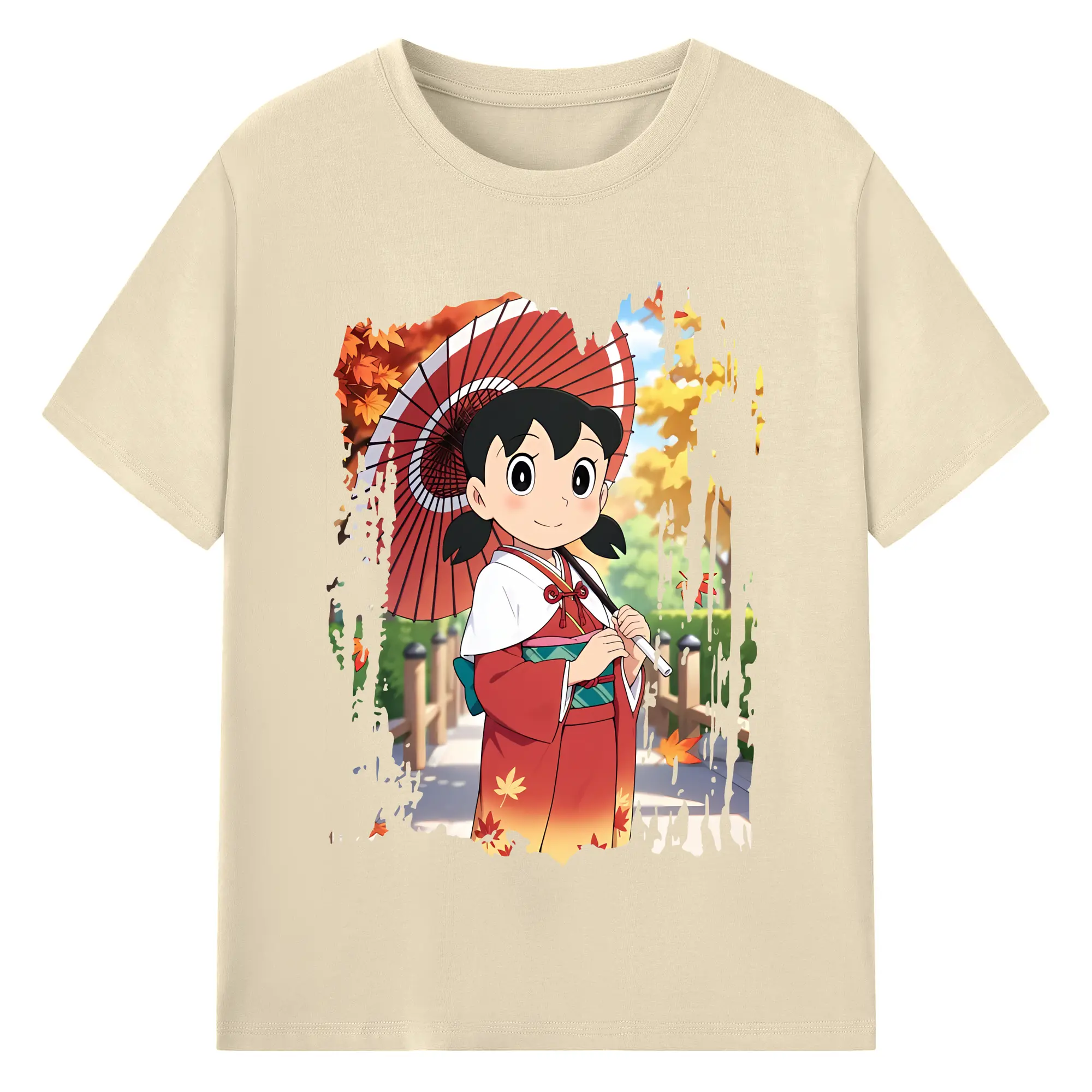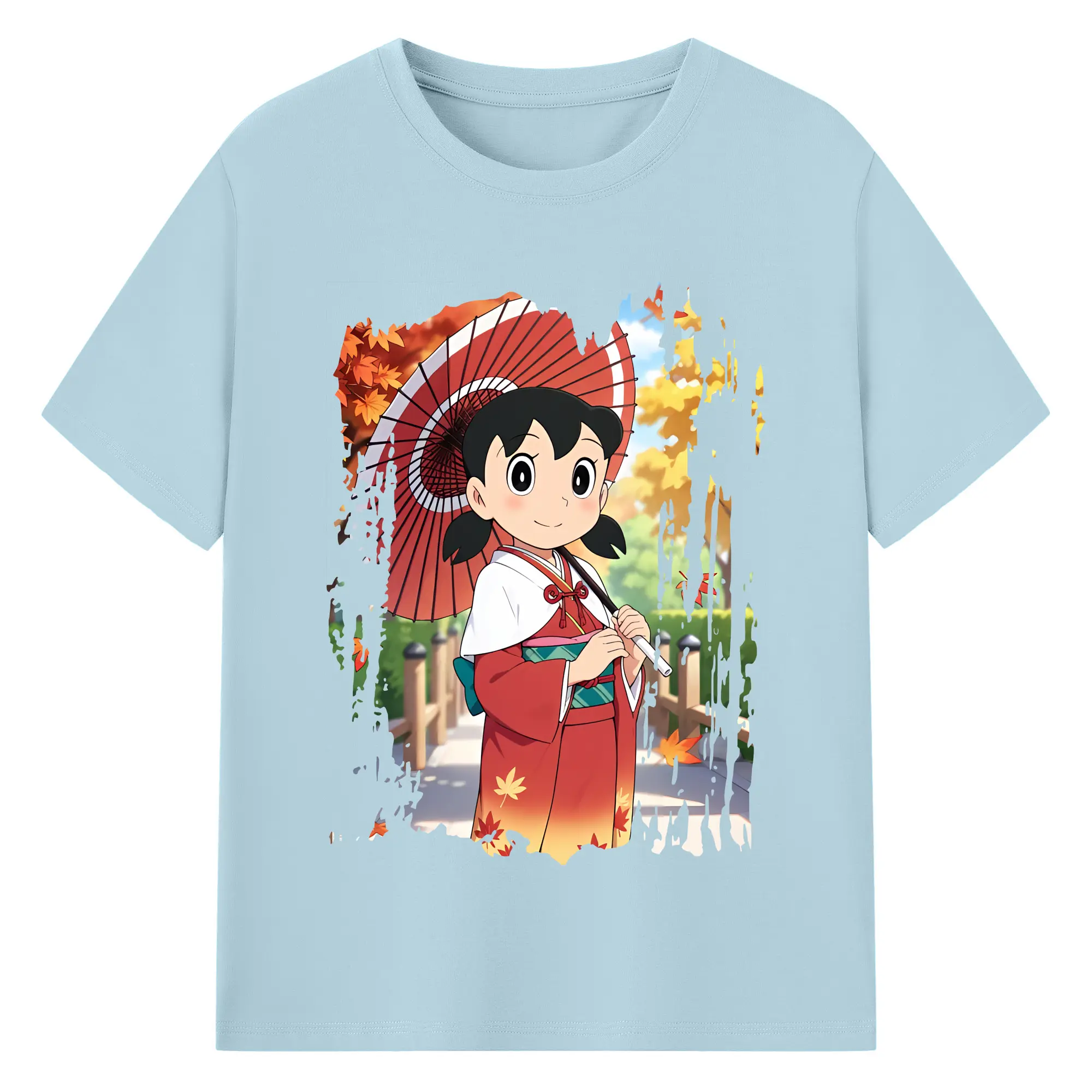 ドラえもん グッズ 源 静香 - 綿100% 半袖Tシャツ ・ バックプリント ・ 快適 通気性 ・ 日常使い 散歩 スポーツ用