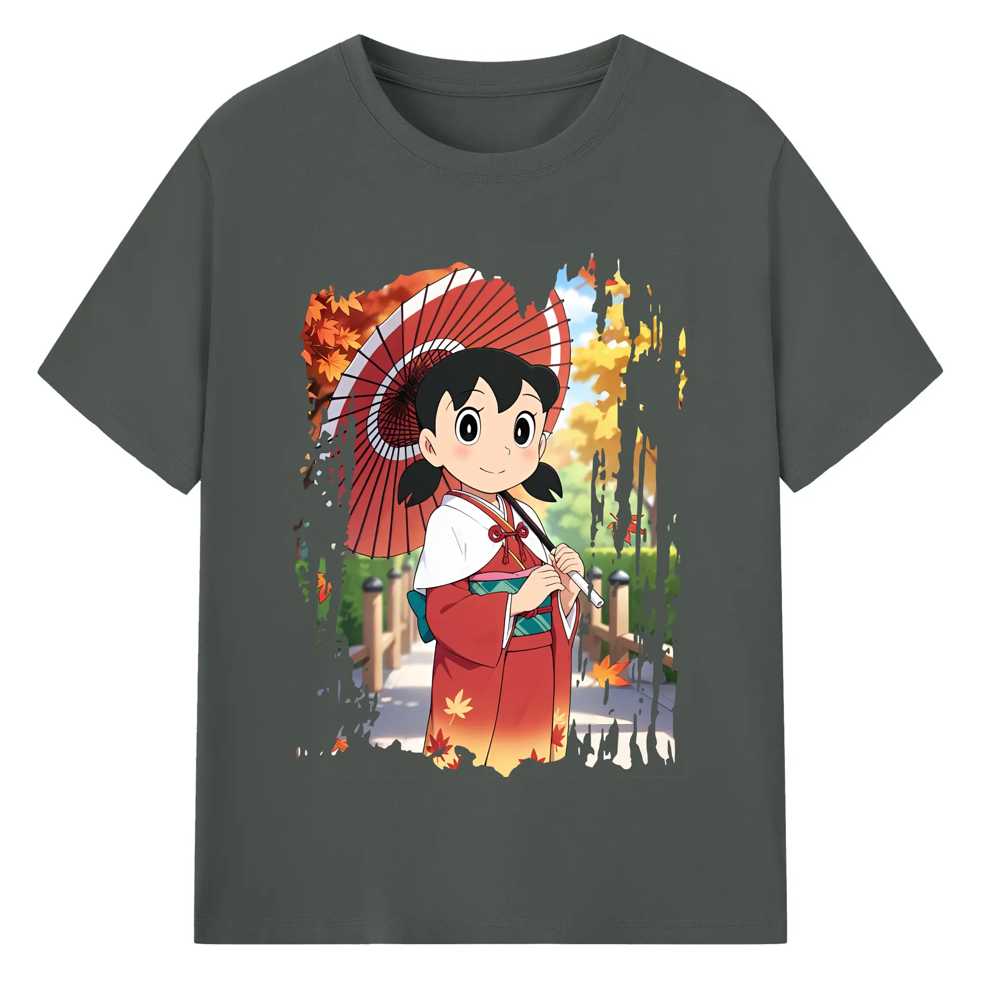 ドラえもん グッズ 源 静香 - 綿100% ヴィンテージ風 半袖Tシャツ ・ フロントプリント ・ 柔らか肌触り ・ 通気性 快適 ・ スポーツ カジュアル 外出用