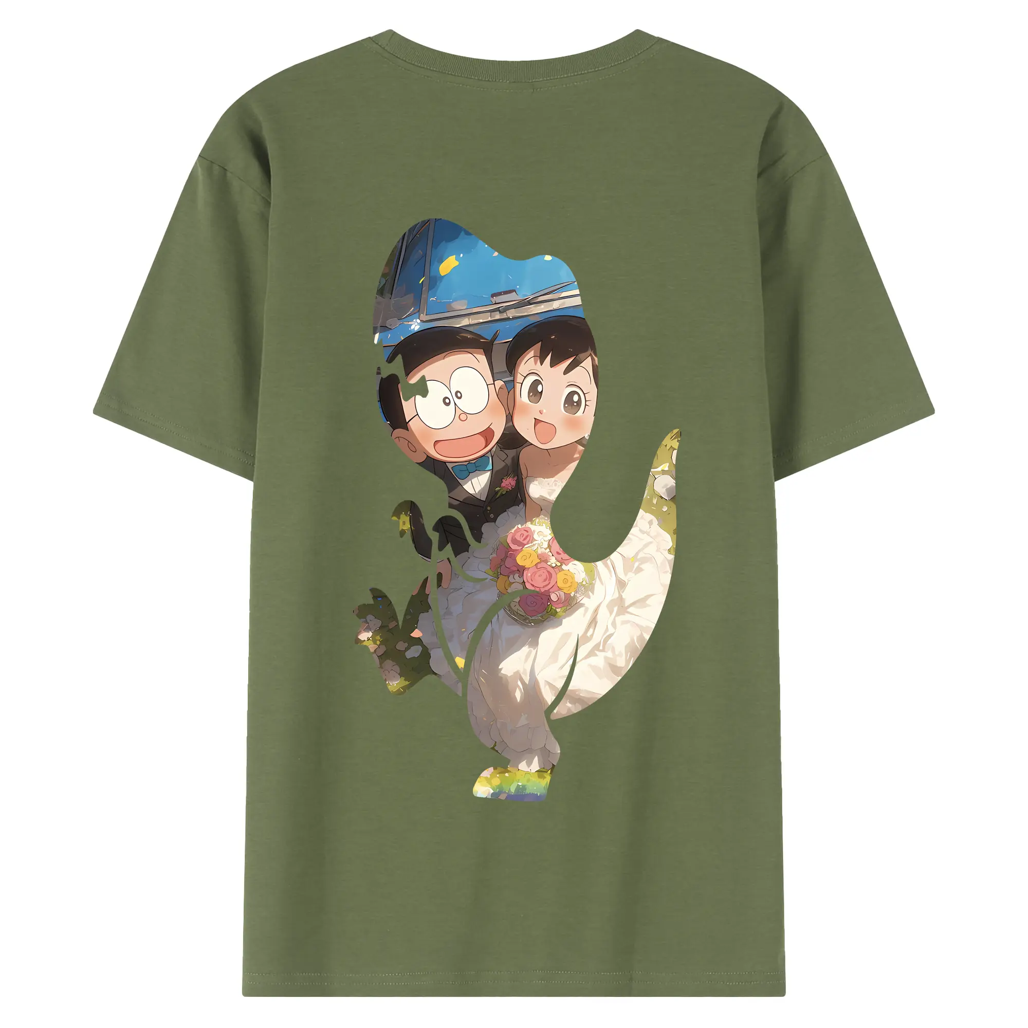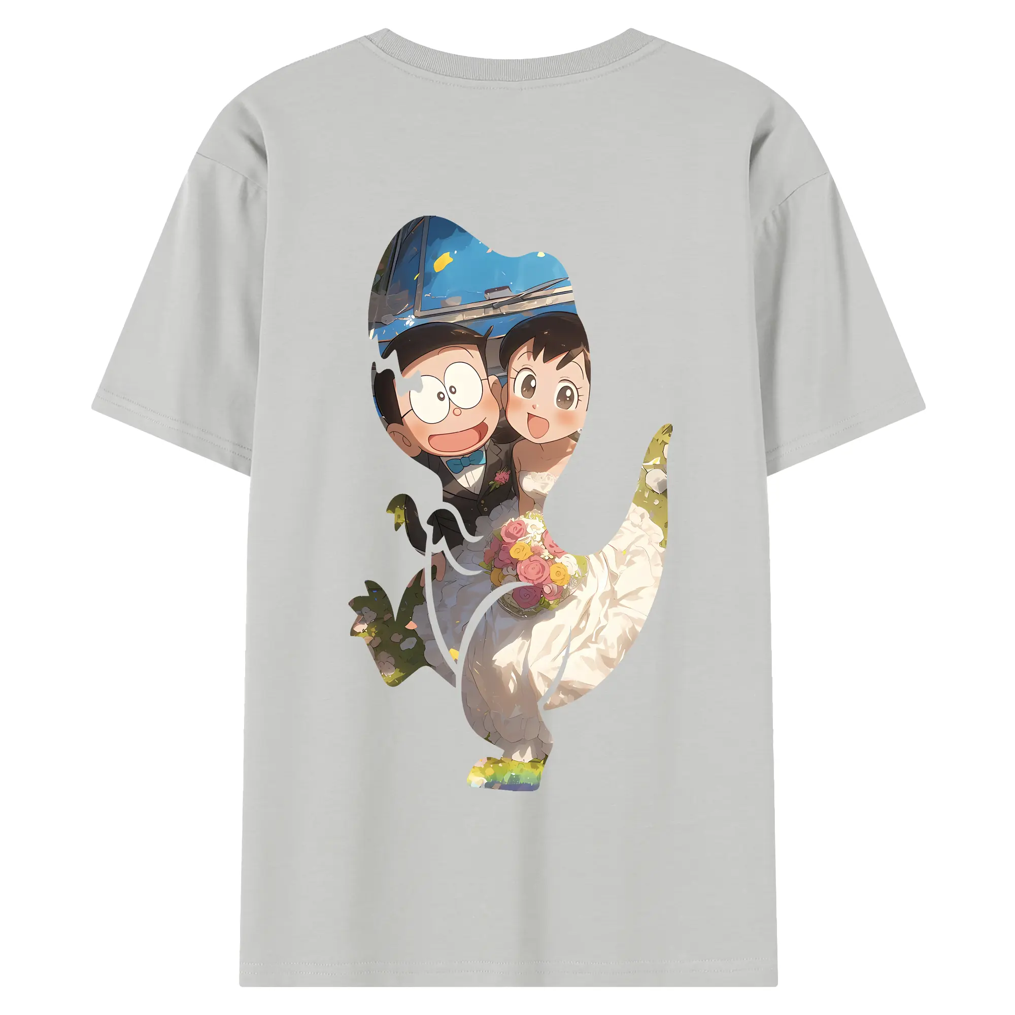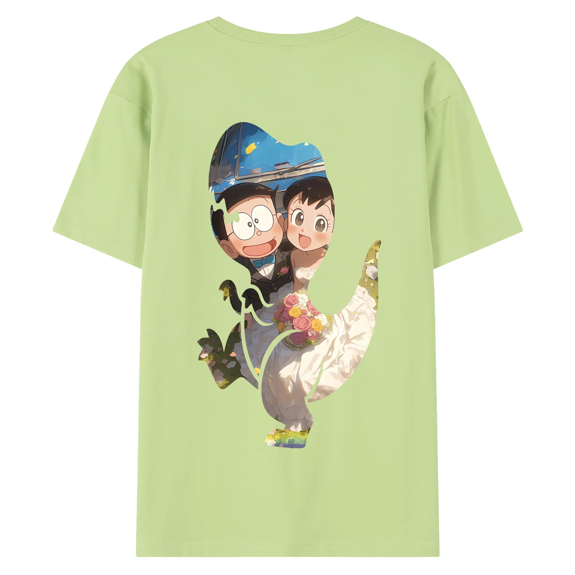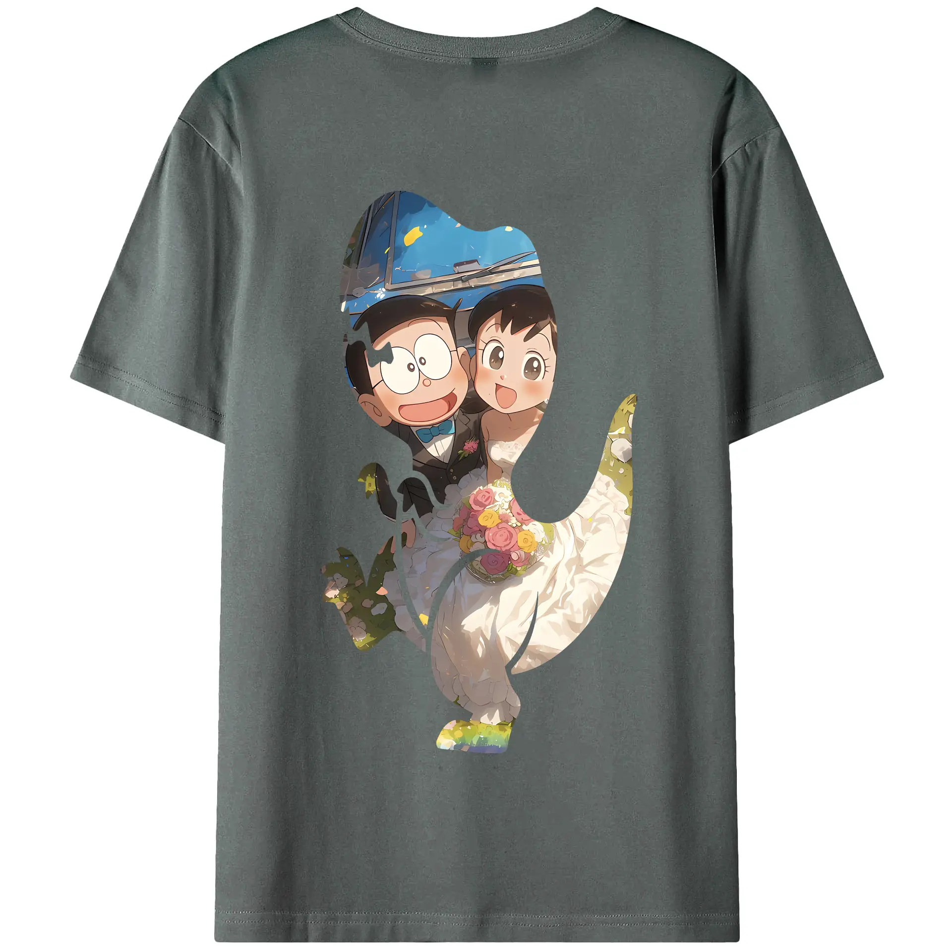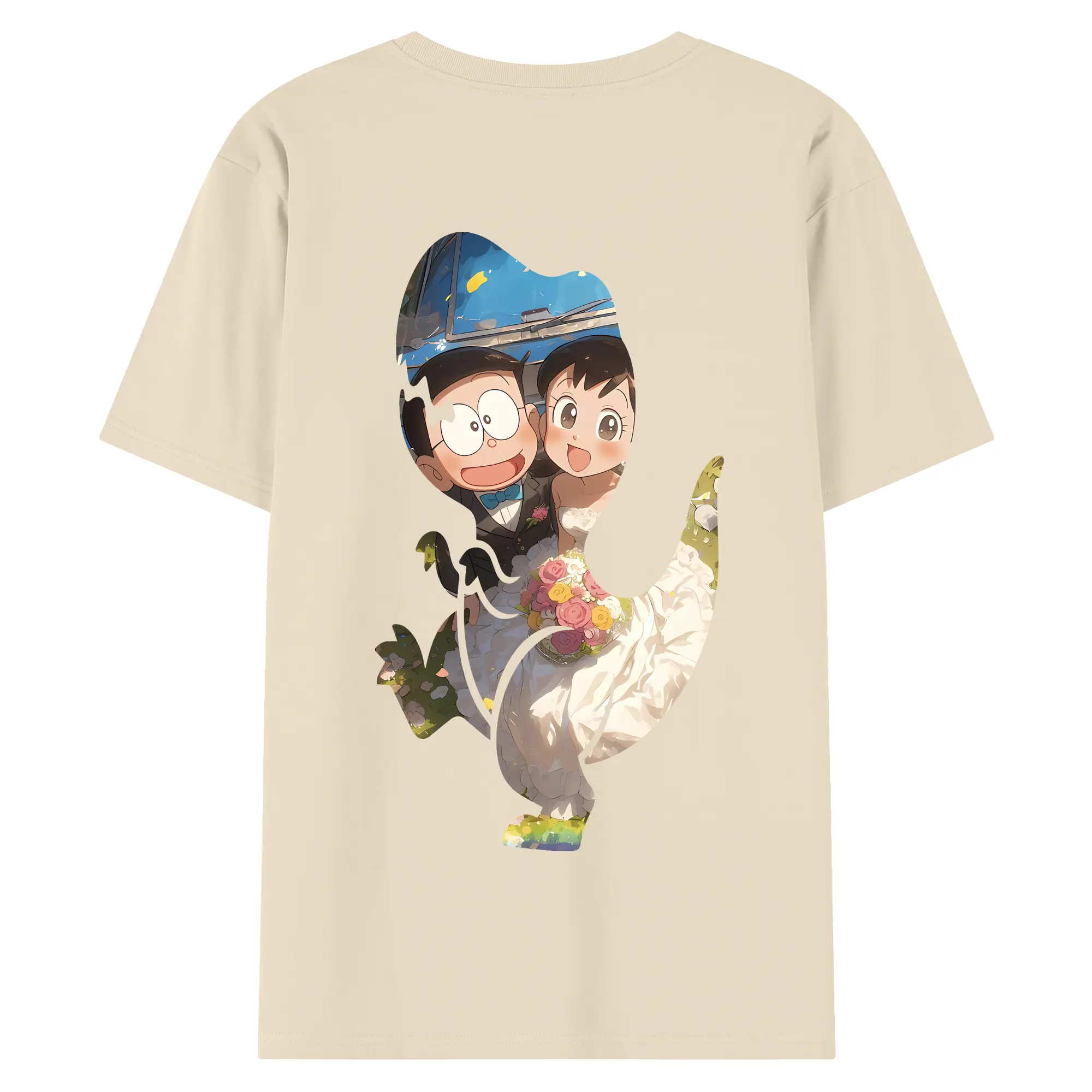 ドラえもん グッズ 源 静香 - 綿100% ヴィンテージ風 半袖Tシャツ ・ 背面プリント ・ 柔らか肌触り ・ 通気性 快適 ・ スポーツ カジュアル 外出用