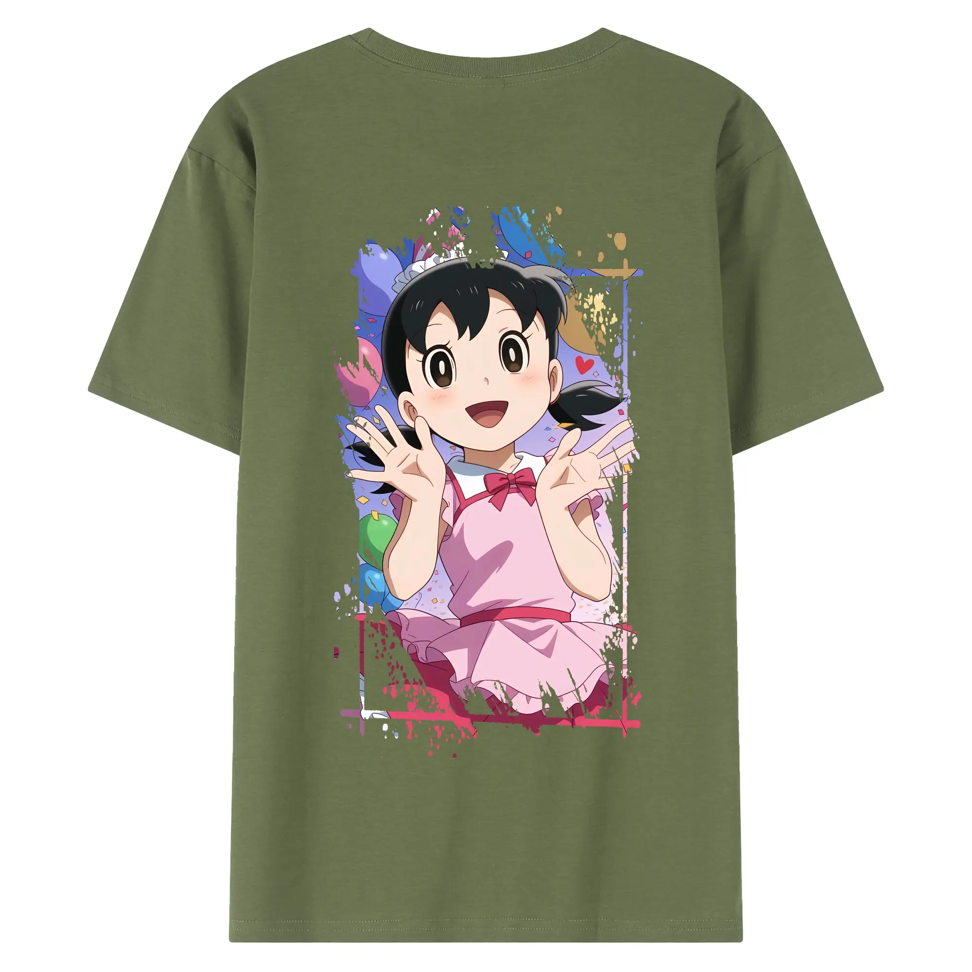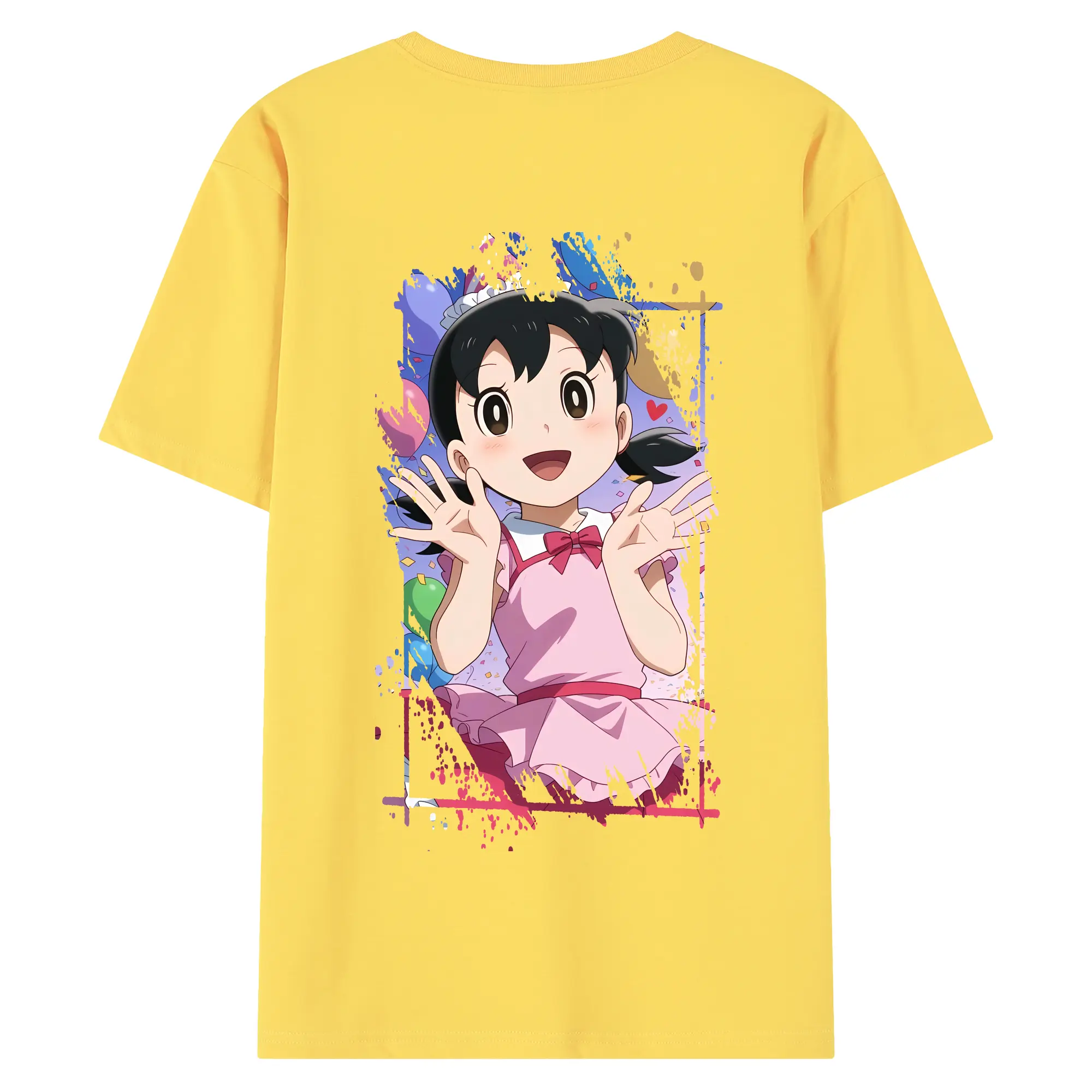 ドラえもん グッズ 源 静香 - 綿100% 半袖Tシャツ ・ フロントプリント ・ 快適 通気性 ・ 日常使い 散歩 スポーツ用