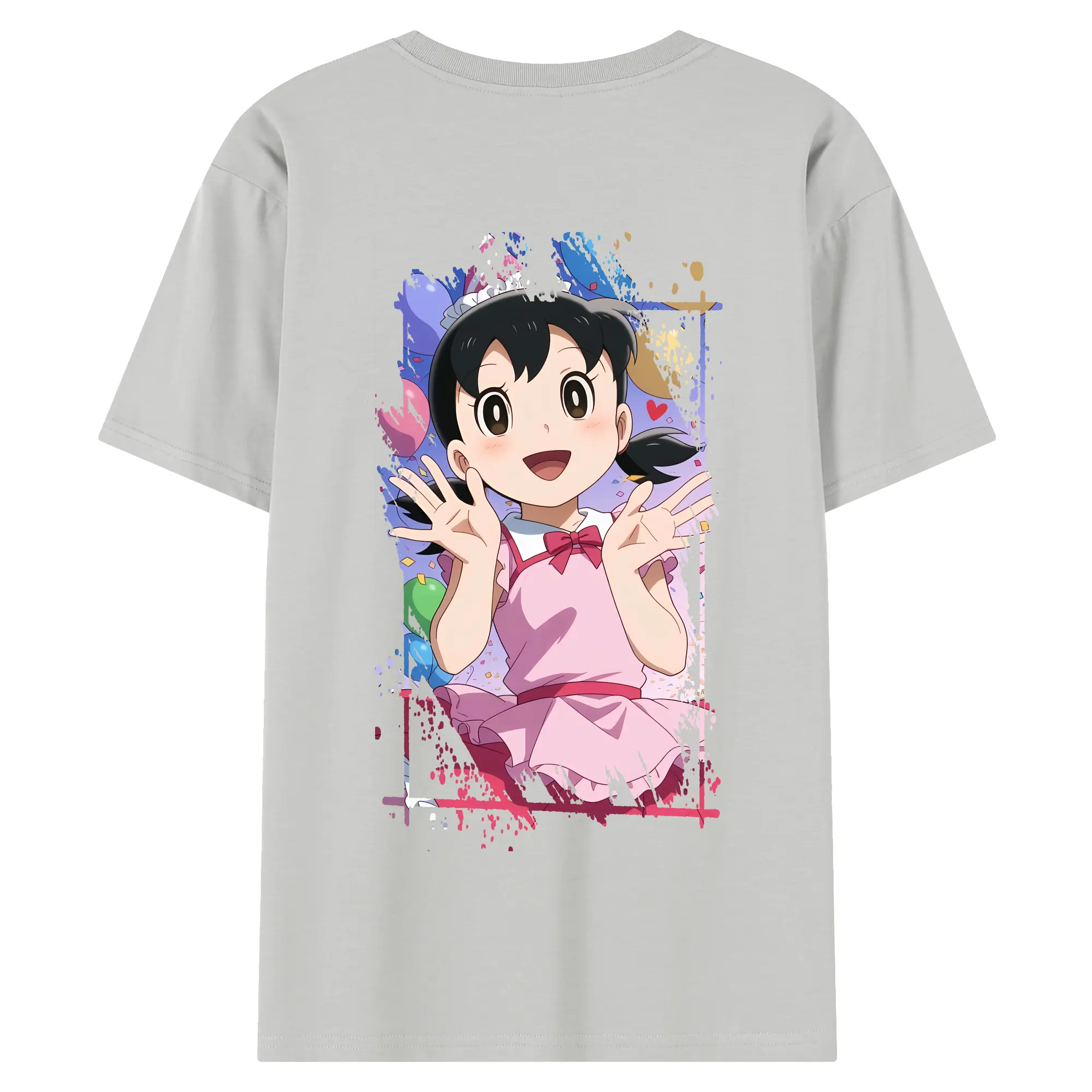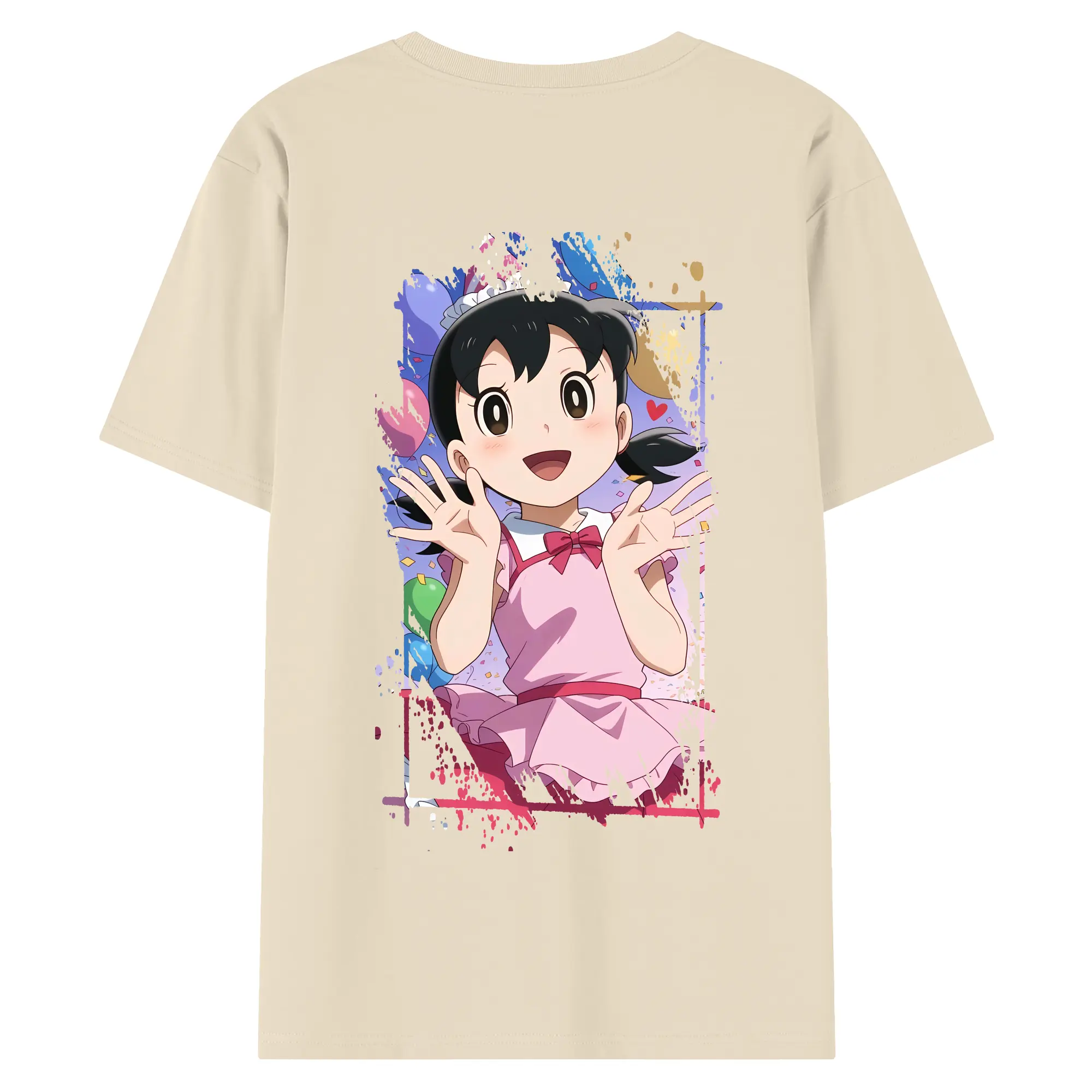 ドラえもん グッズ 源 静香 - 綿100% ヴィンテージ風 半袖Tシャツ ・ 背面プリント ・ 柔らか肌触り ・ 通気性 快適 ・ スポーツ カジュアル 外出用