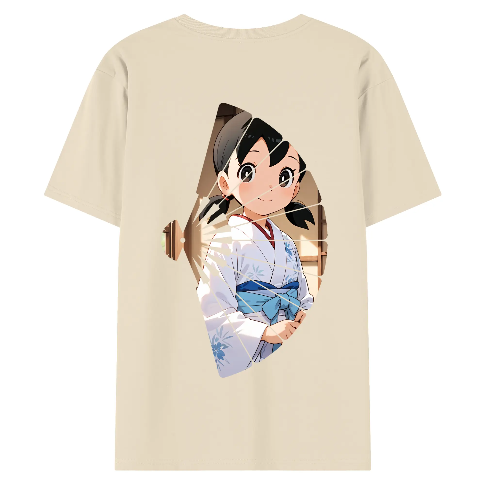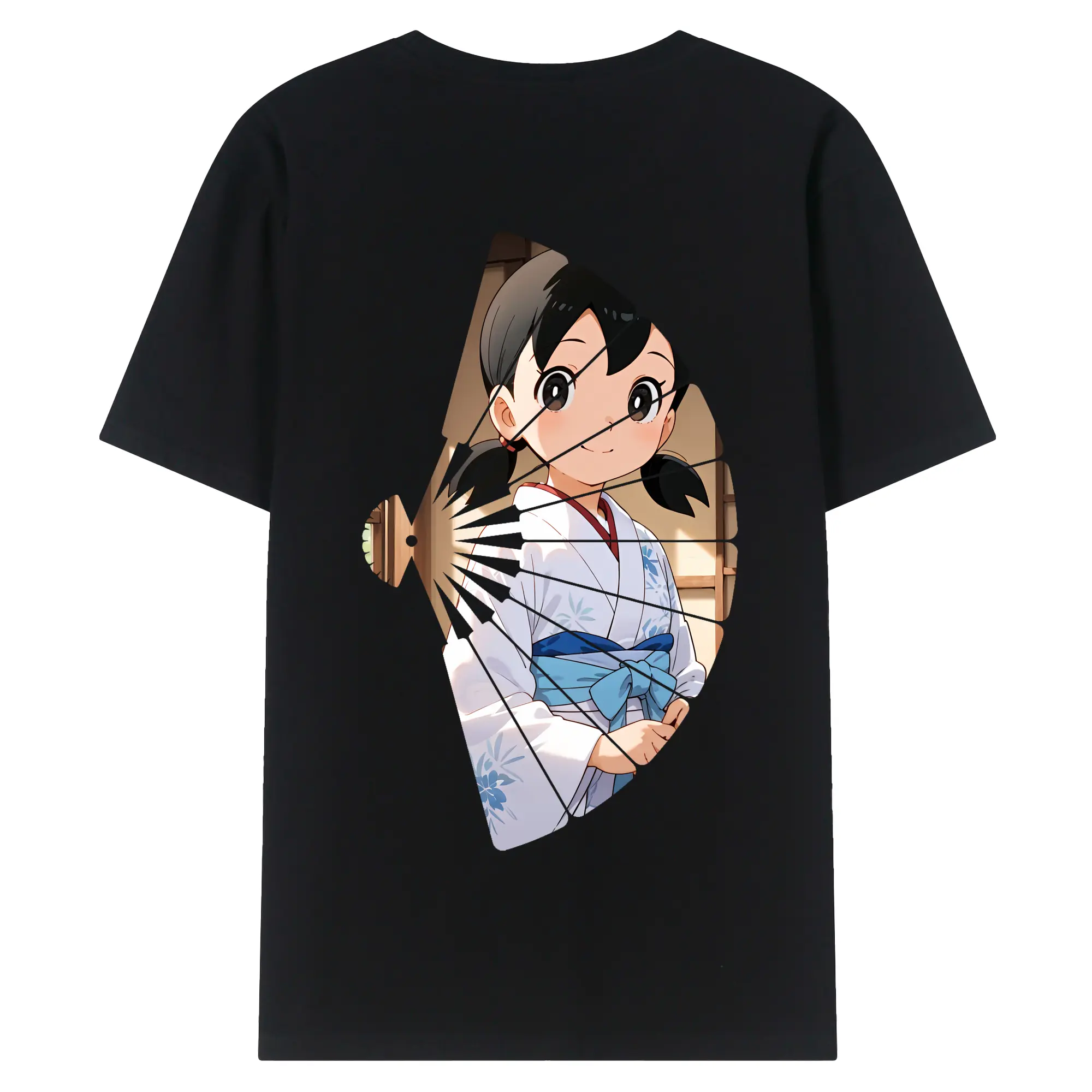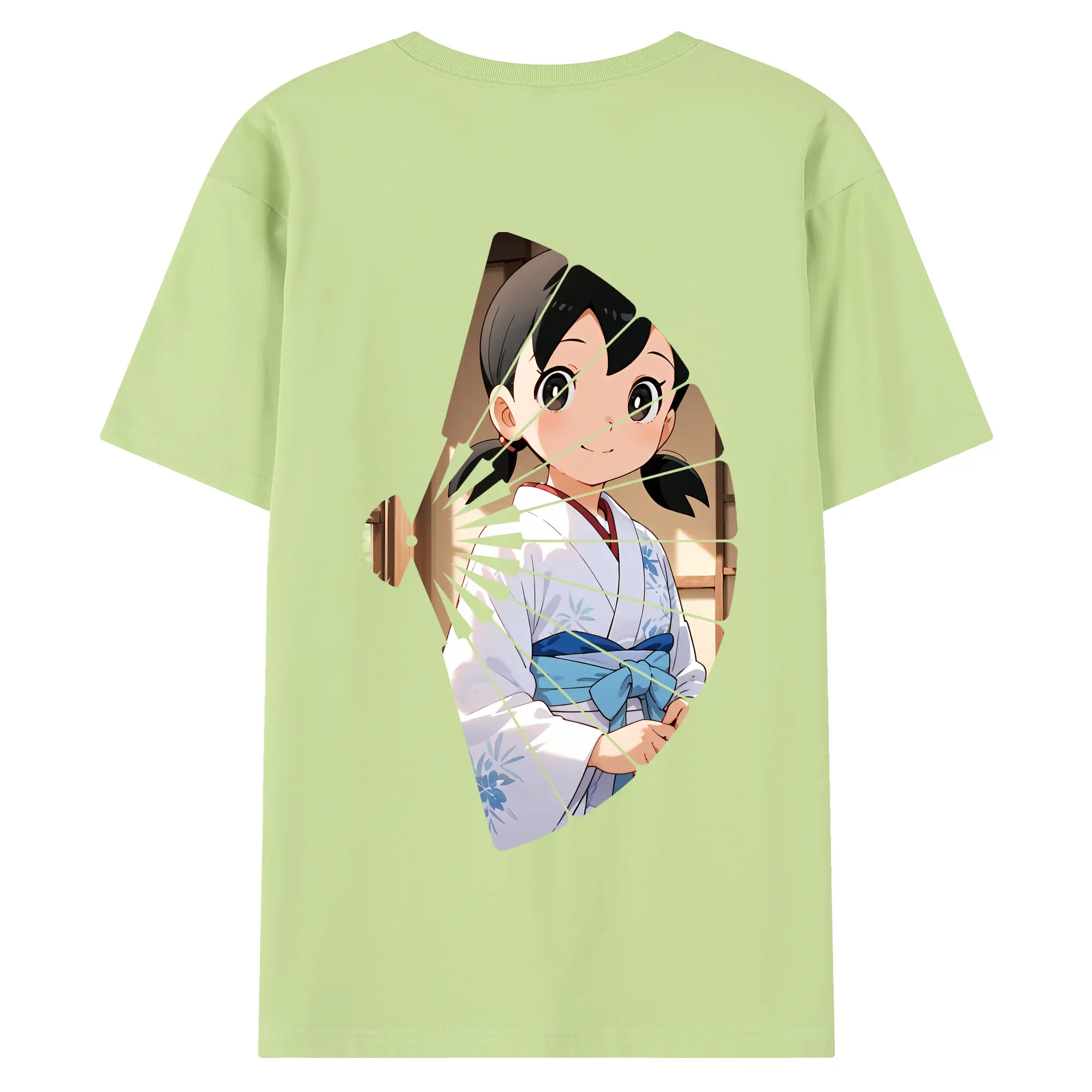 ドラえもん グッズ 源 静香 - 綿100% ヴィンテージ風 半袖Tシャツ ・ 背面プリント ・ 柔らか肌触り ・ 通気性 快適 ・ スポーツ カジュアル 外出用
