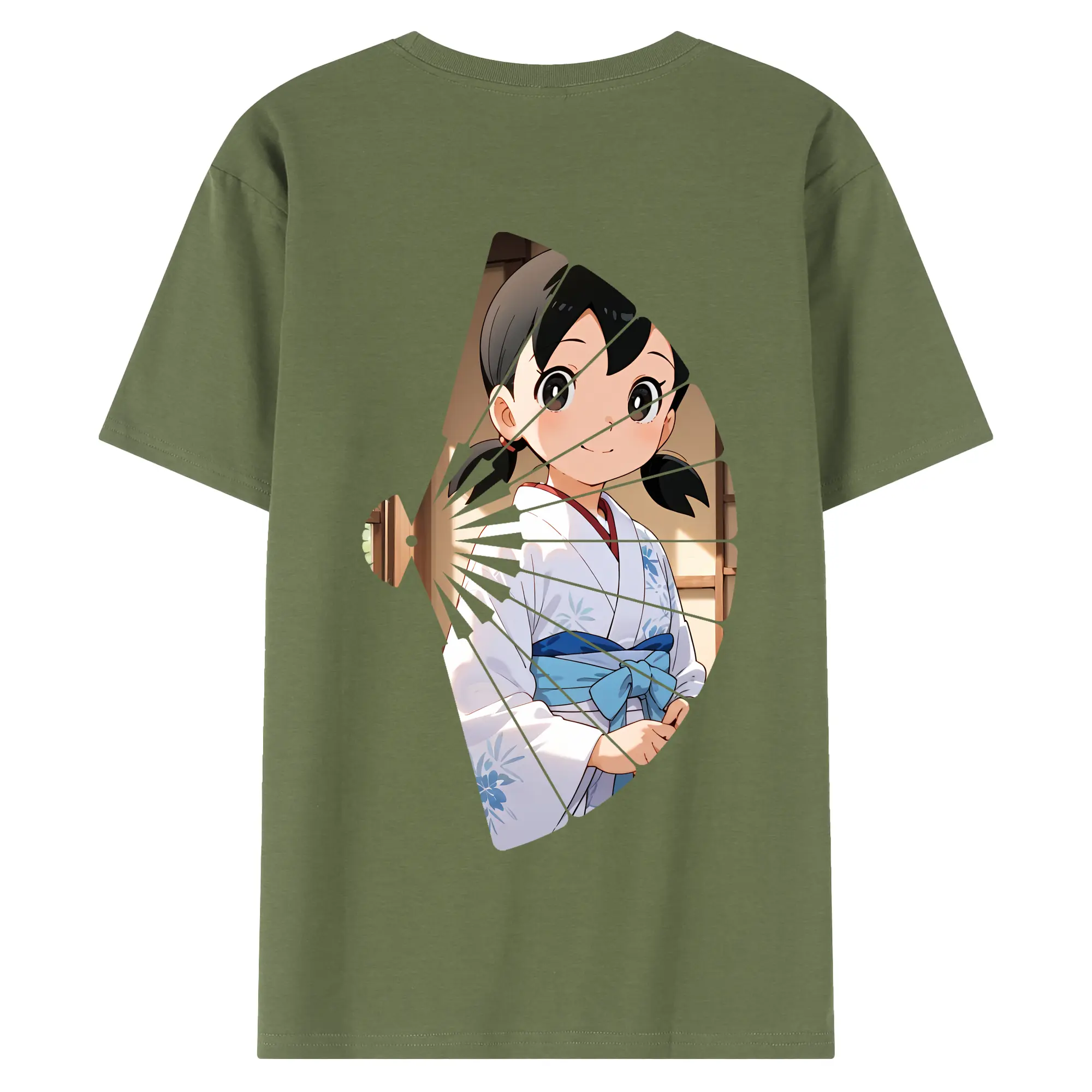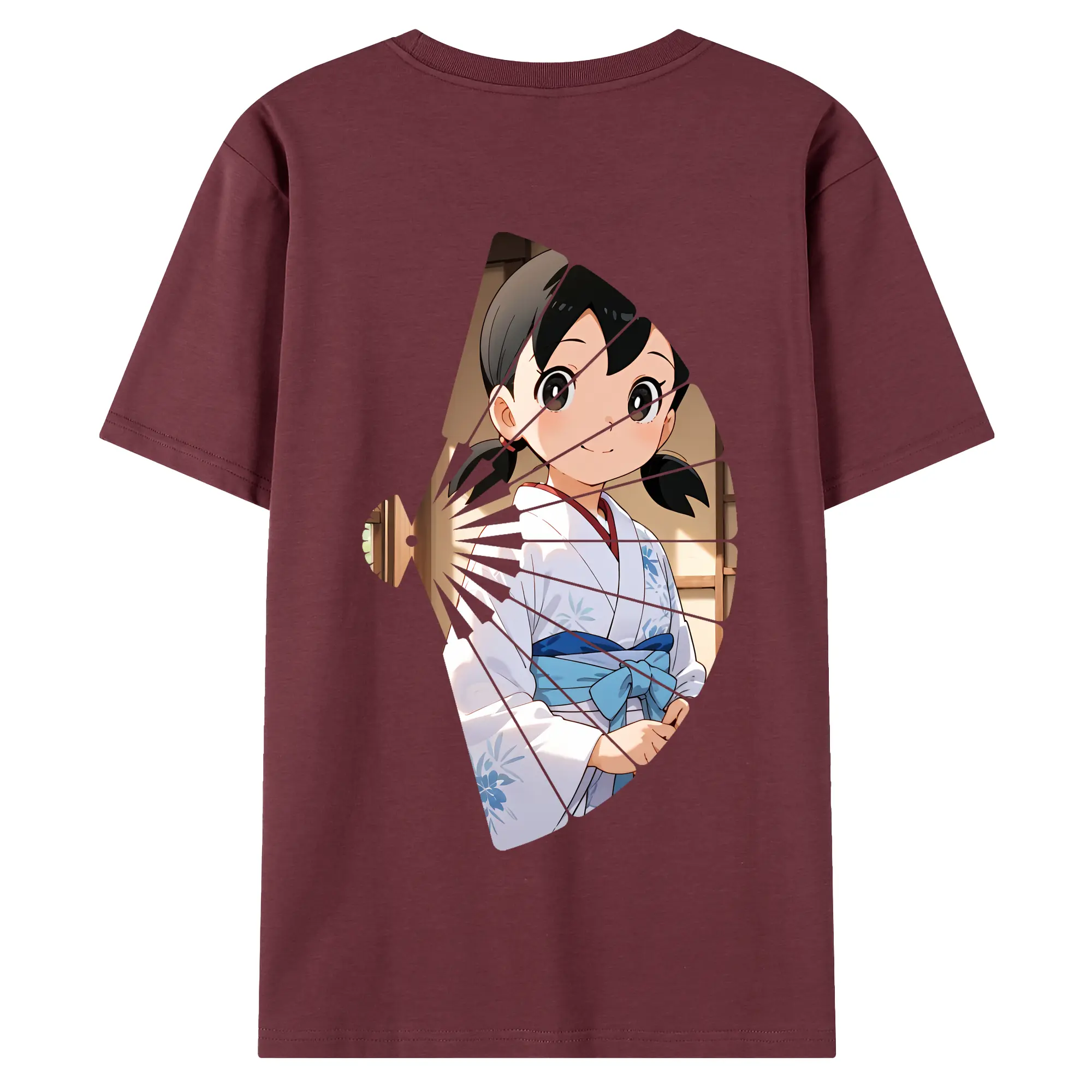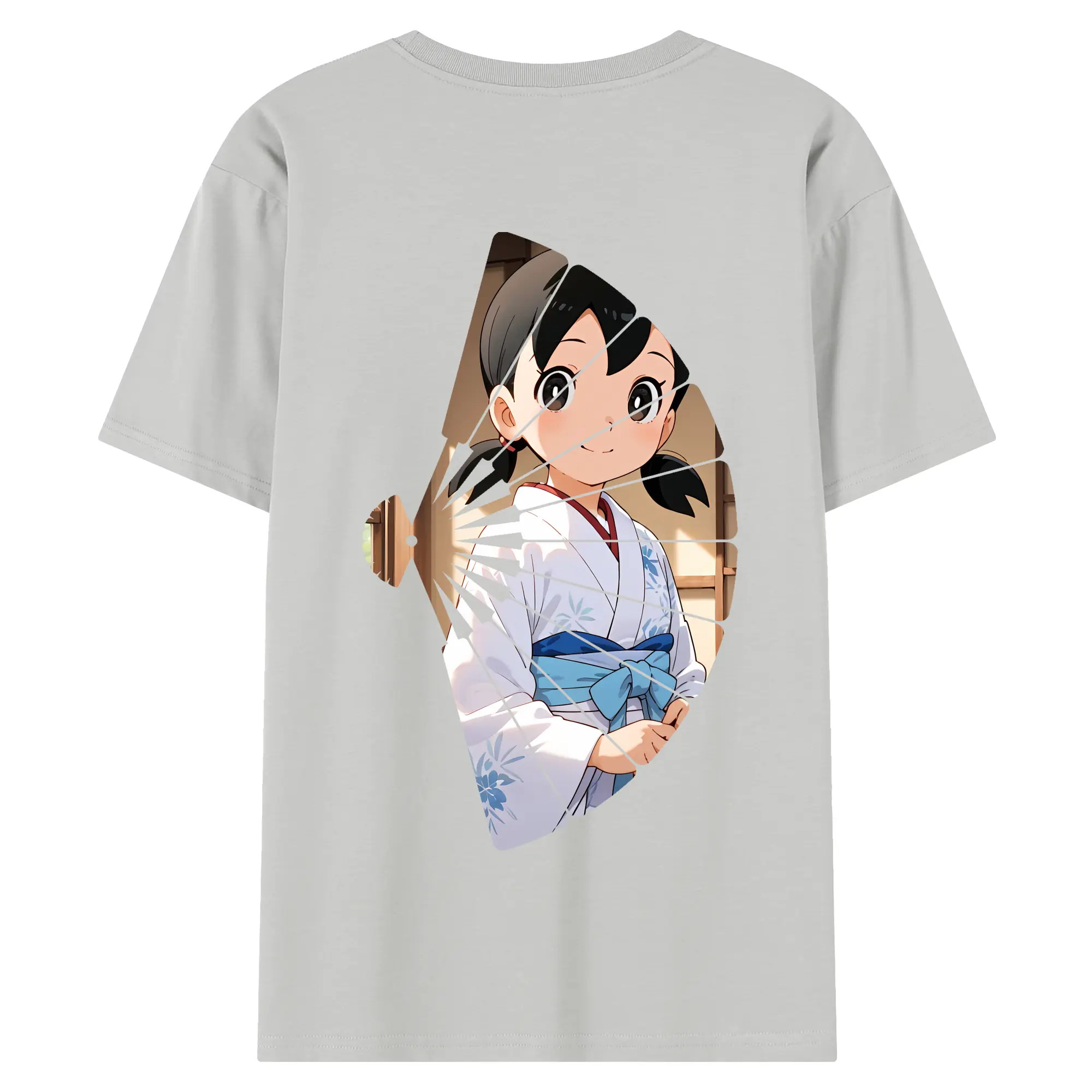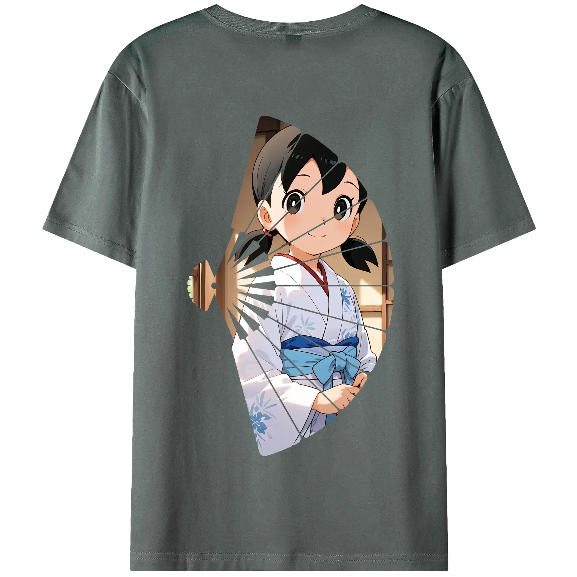 ドラえもん グッズ 源 静香 - 綿100% ヴィンテージ風 半袖Tシャツ ・ 背面プリント ・ 柔らか肌触り ・ 通気性 快適 ・ スポーツ カジュアル 外出用
