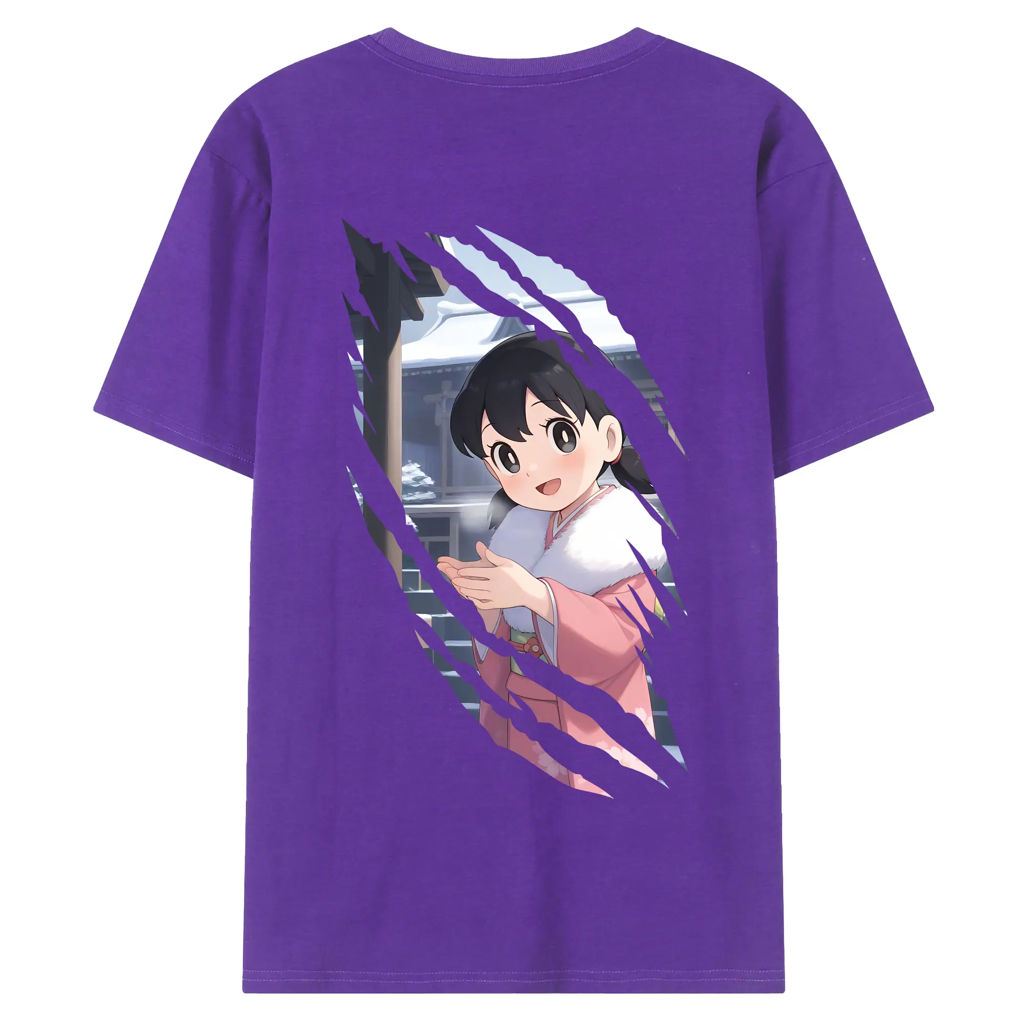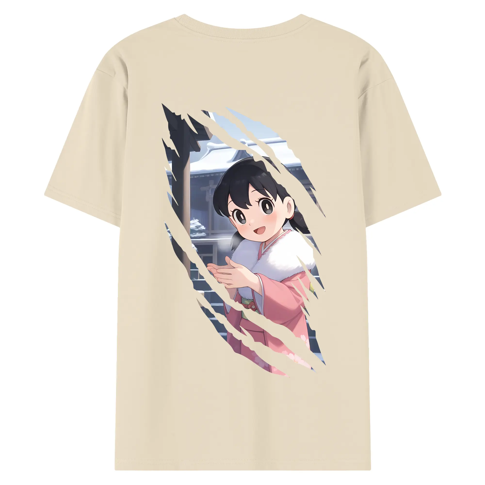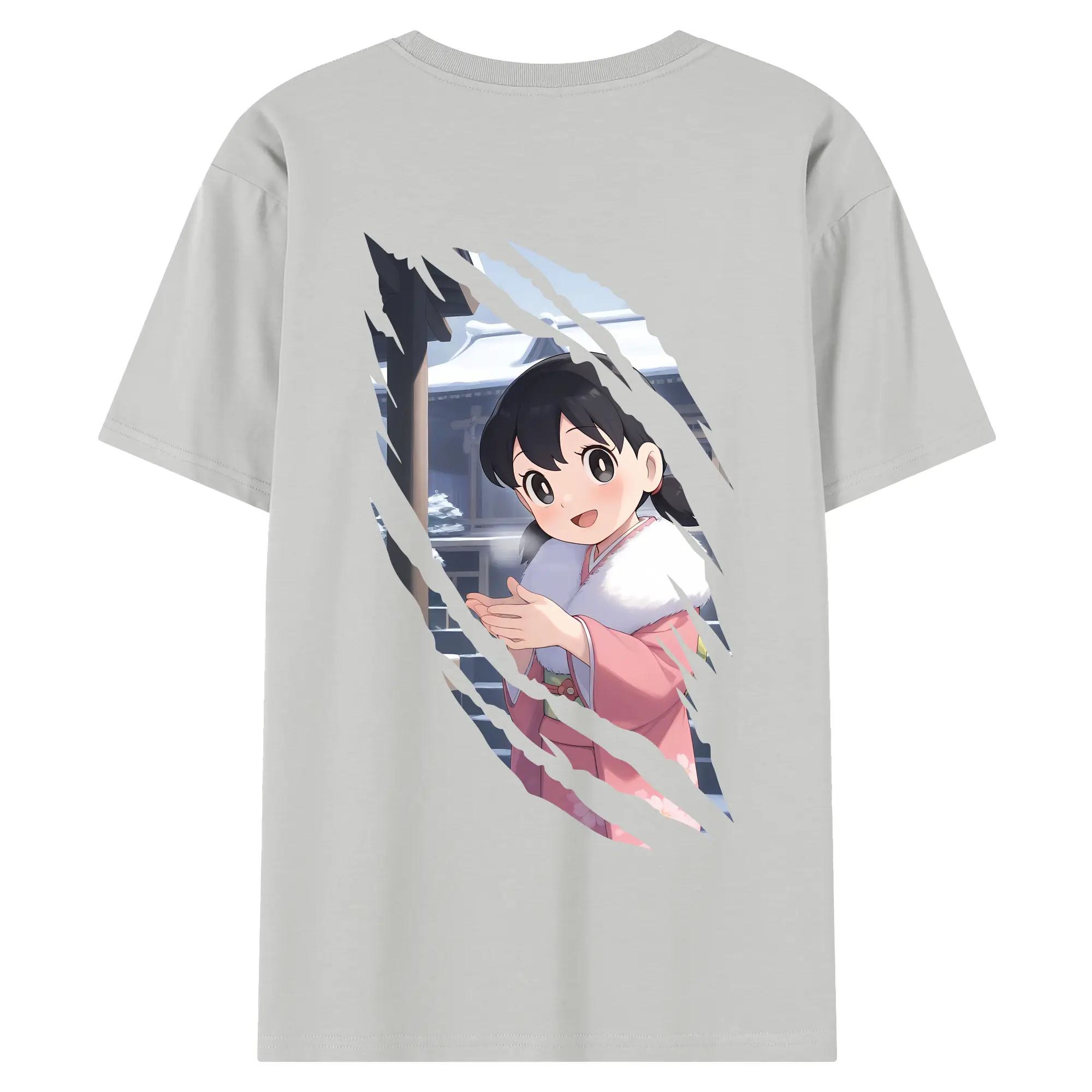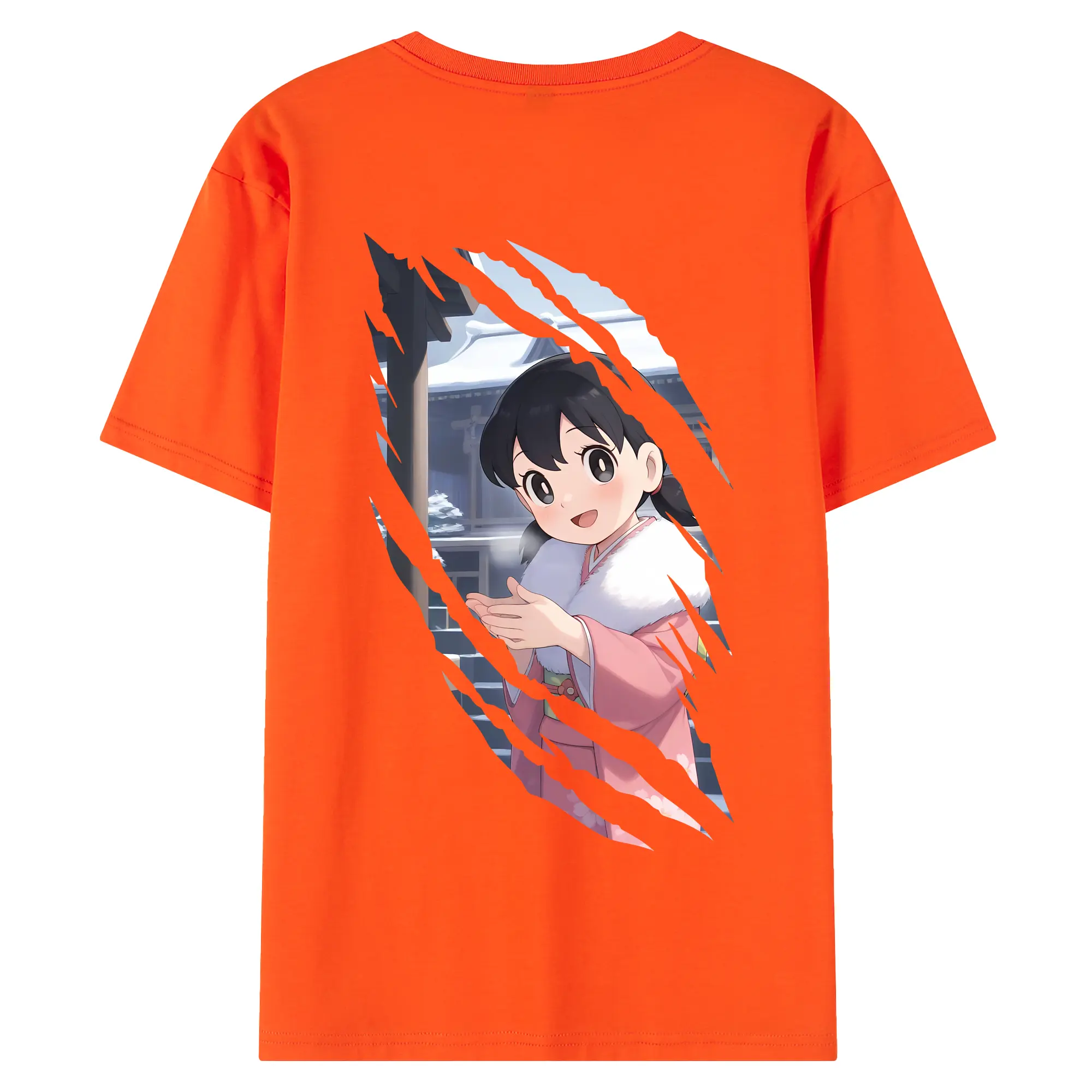 ドラえもん グッズ 源 静香 - 綿100% ヴィンテージ風 半袖Tシャツ ・ 背面プリント ・ 柔らか肌触り ・ 通気性 快適 ・ スポーツ カジュアル 外出用