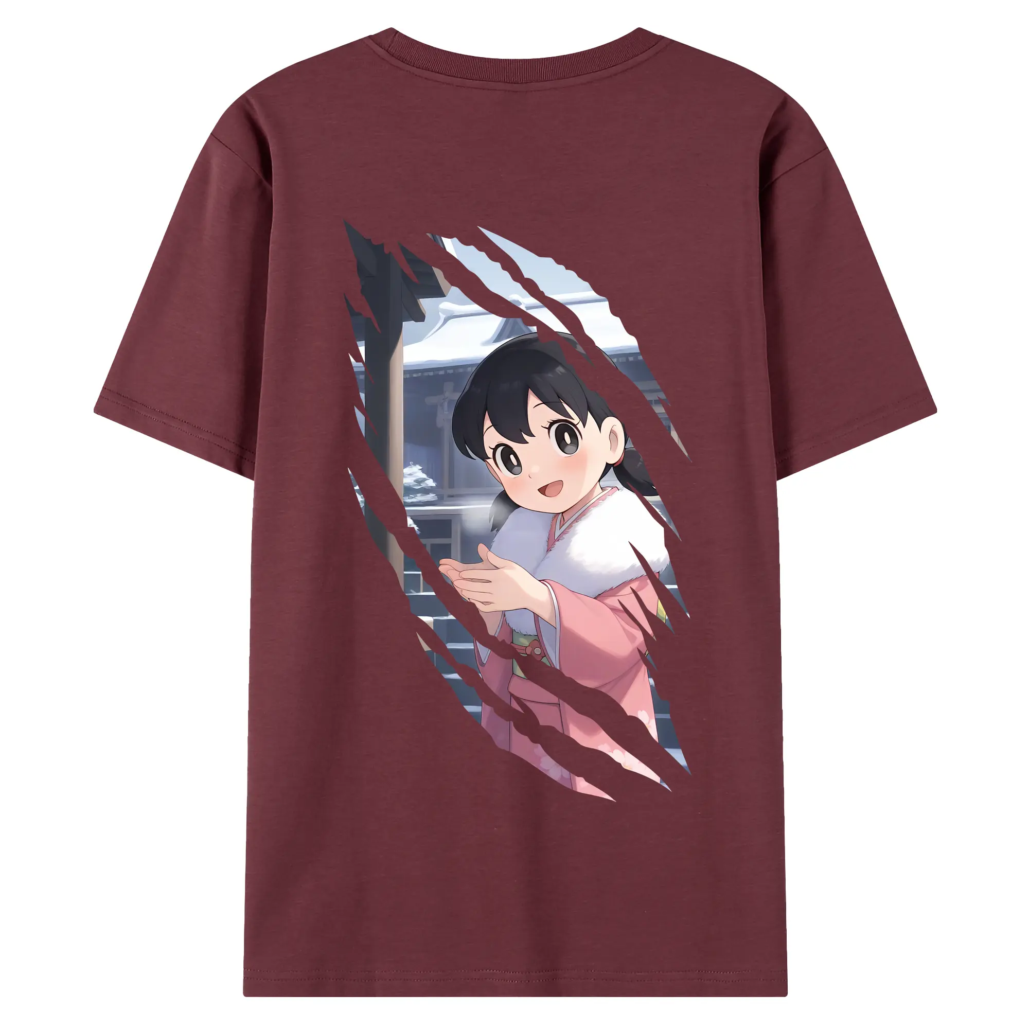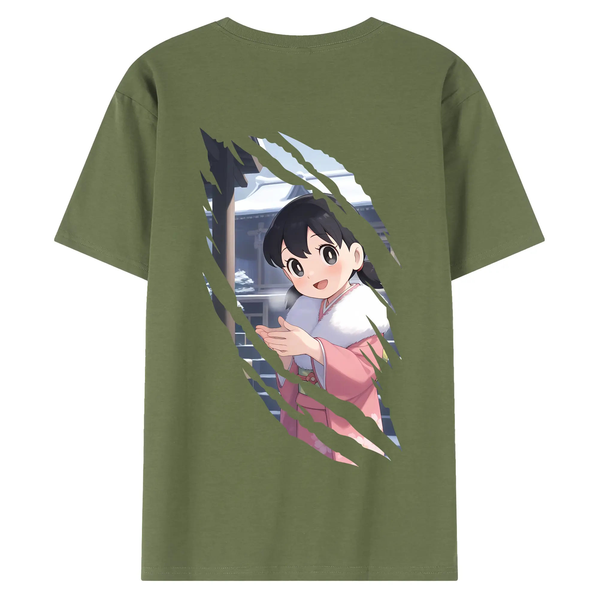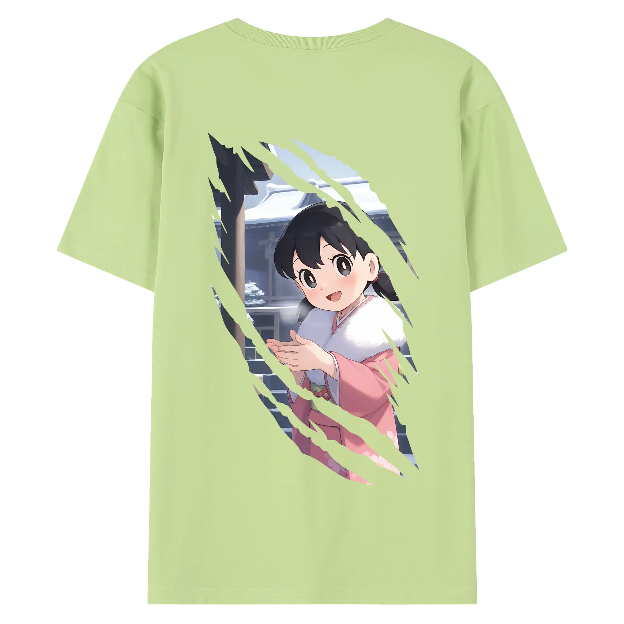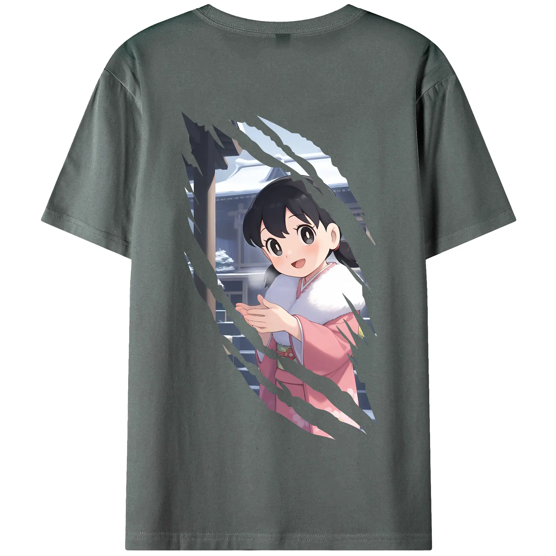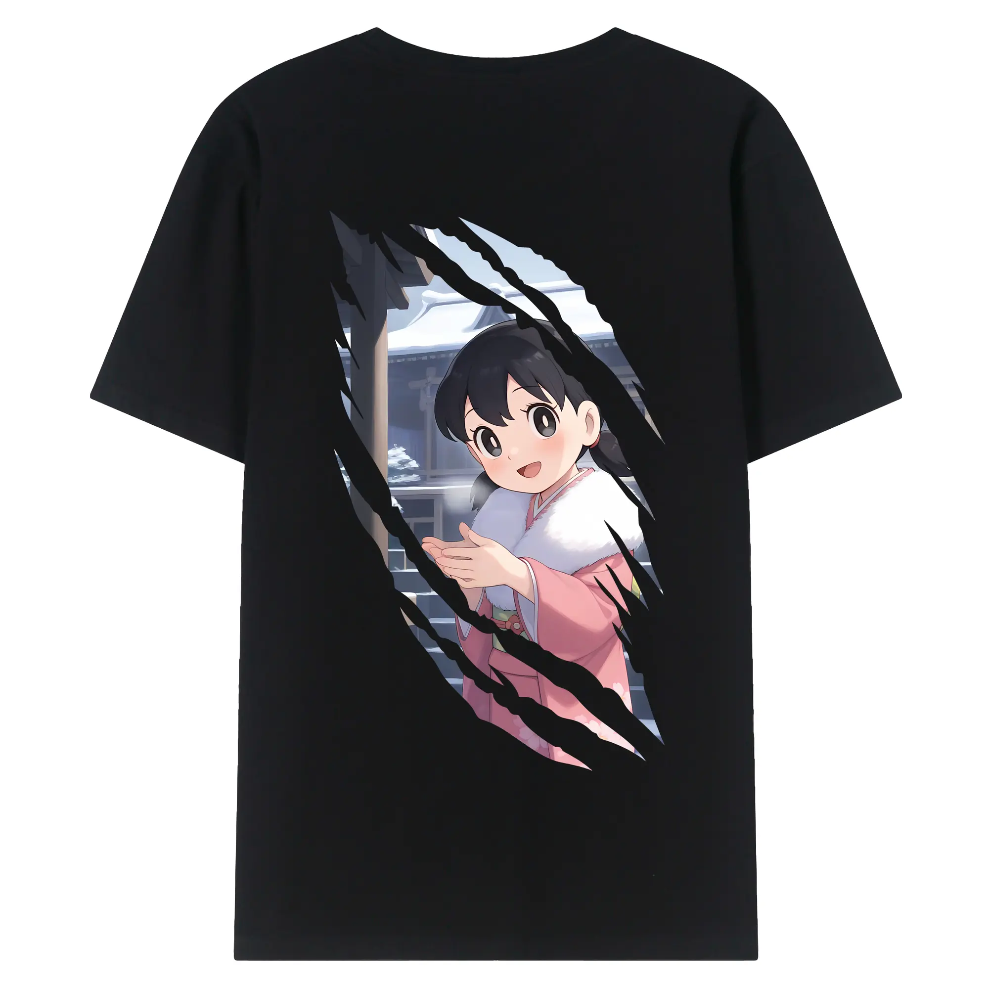 ドラえもん グッズ 源 静香 - 綿100% ヴィンテージ風 半袖Tシャツ ・ 背面プリント ・ 柔らか肌触り ・ 通気性 快適 ・ スポーツ カジュアル 外出用