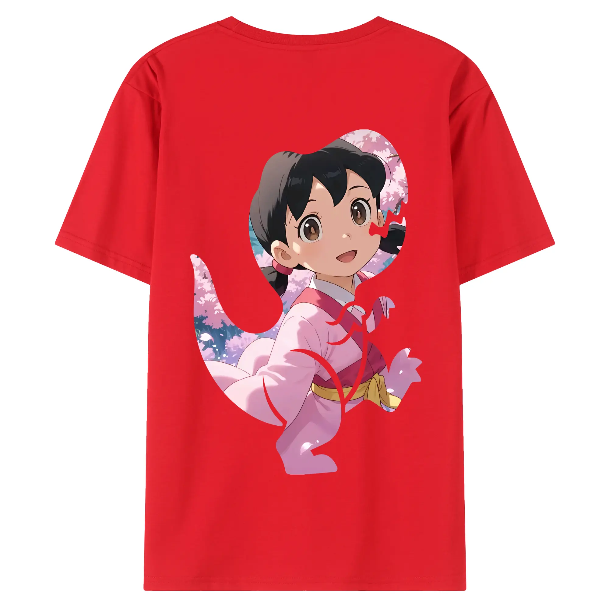 ドラえもん グッズ 源 静香 - 綿100% ヴィンテージ風 半袖Tシャツ ・ 背面プリント ・ 柔らか肌触り ・ 通気性 快適 ・ スポーツ カジュアル 外出用