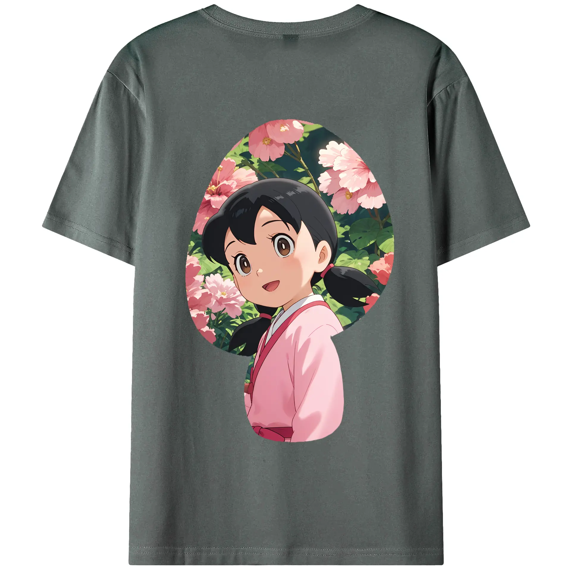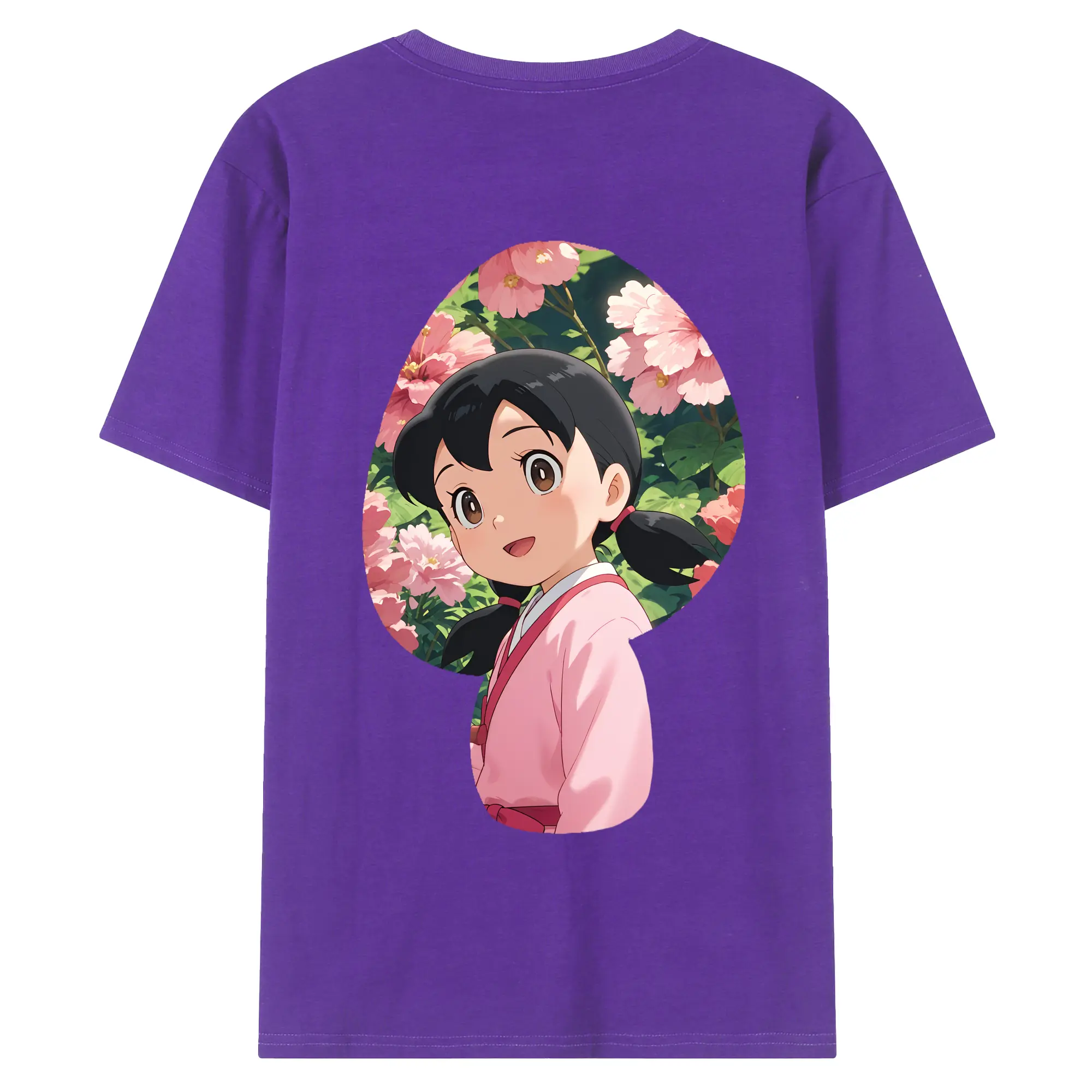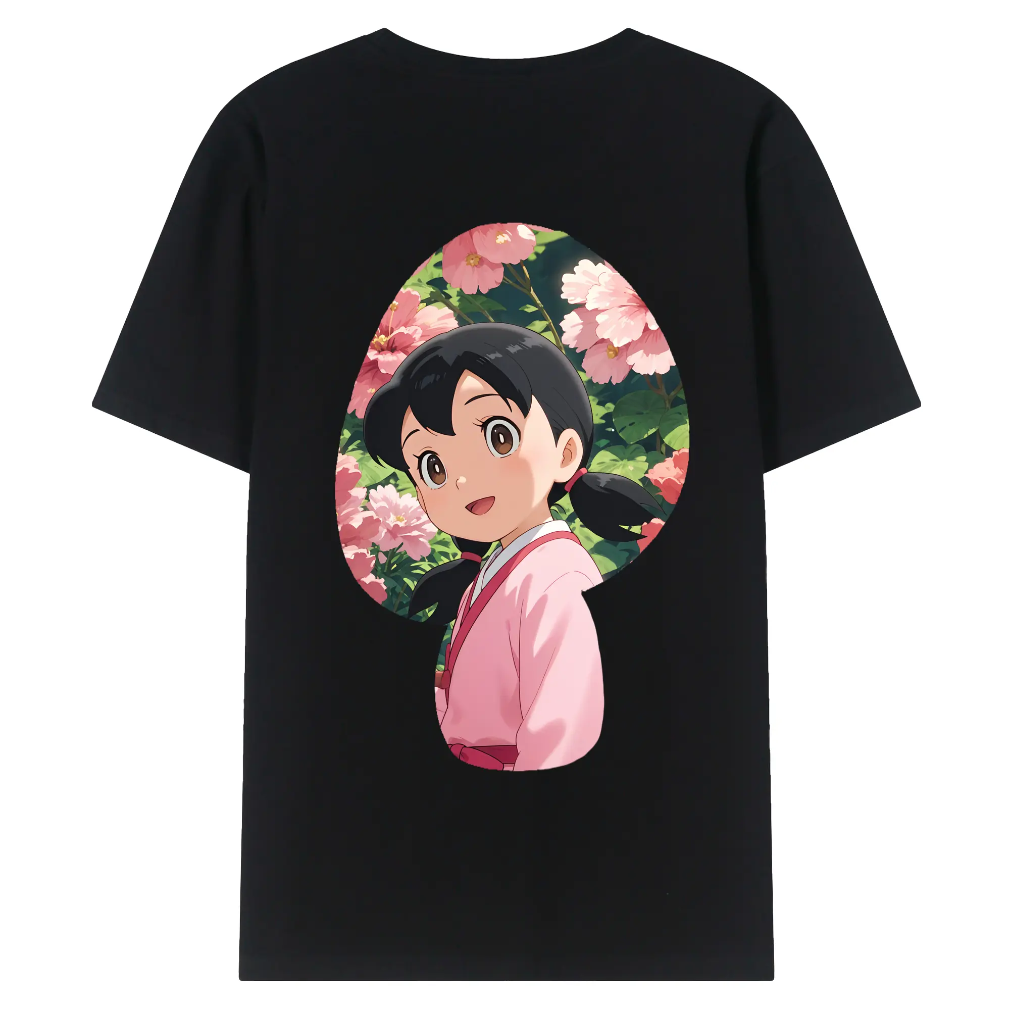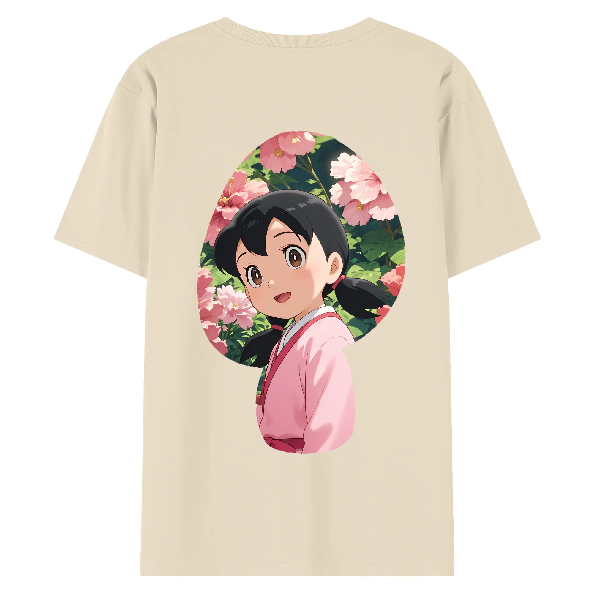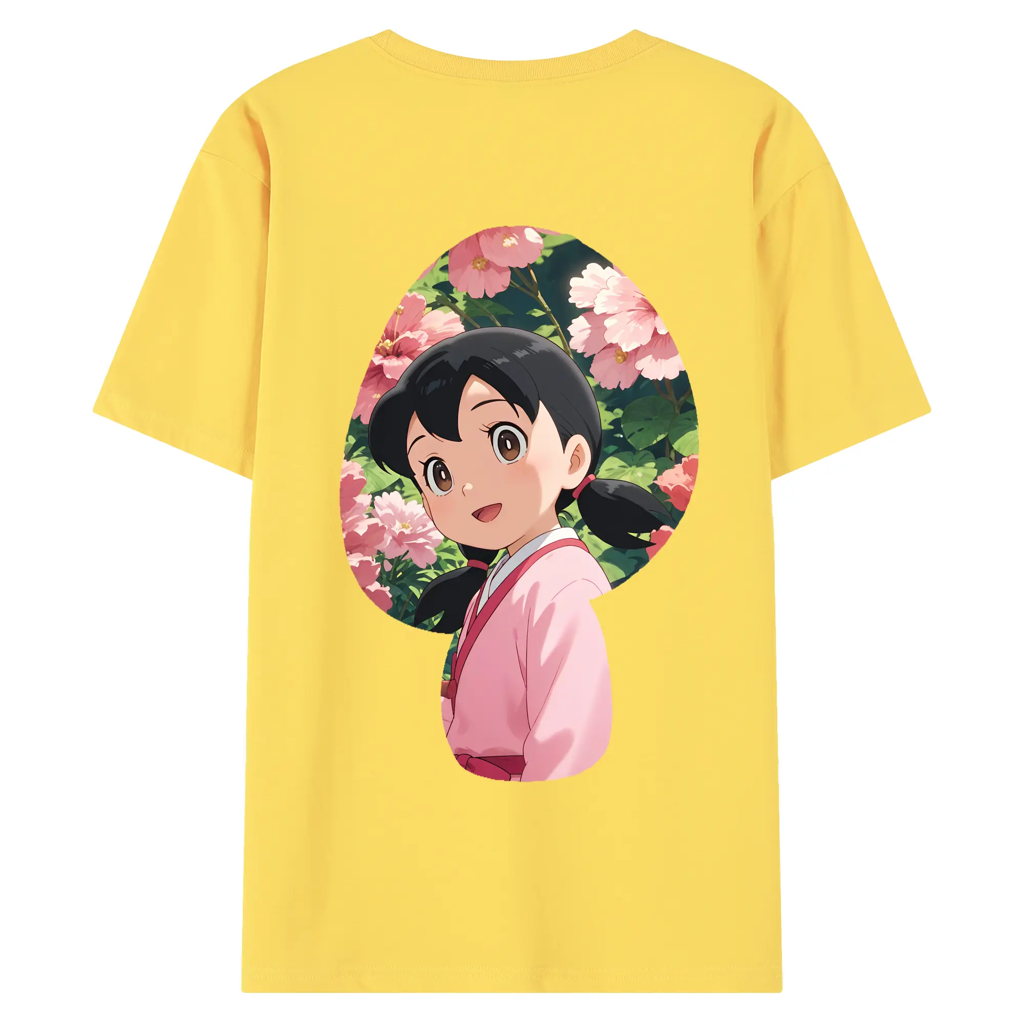 ドラえもん グッズ 源 静香 - 綿100% ヴィンテージ風 半袖Tシャツ ・ 背面プリント ・ 柔らか肌触り ・ 通気性 快適 ・ スポーツ カジュアル 外出用