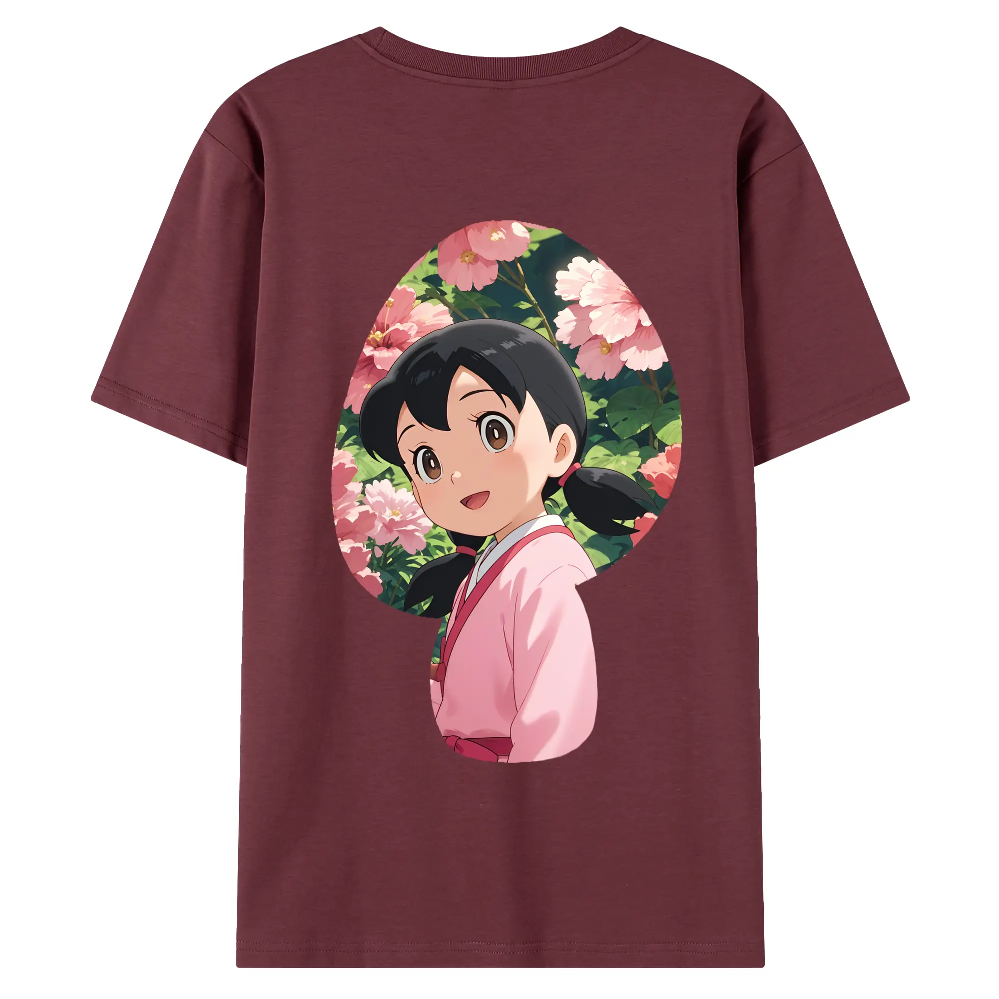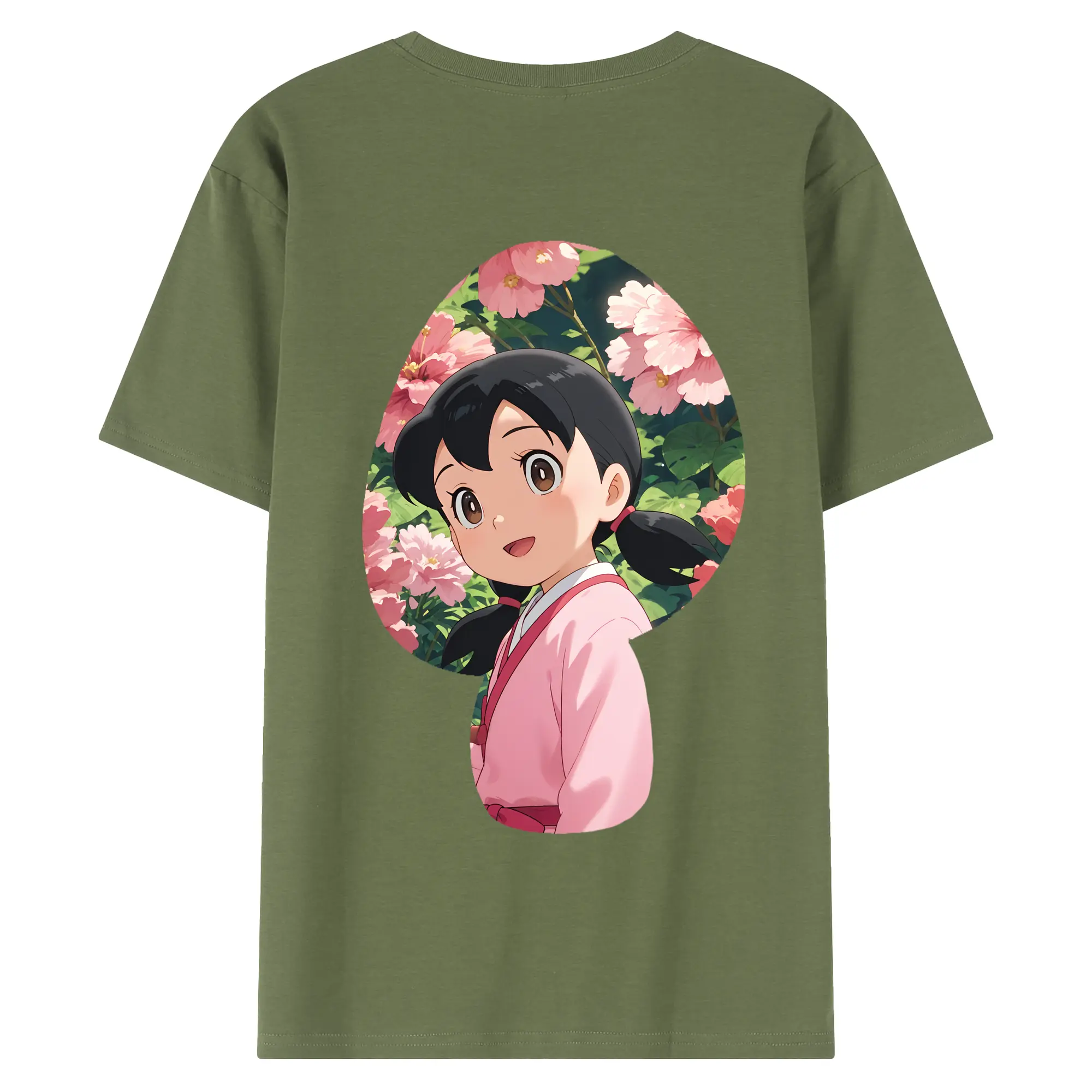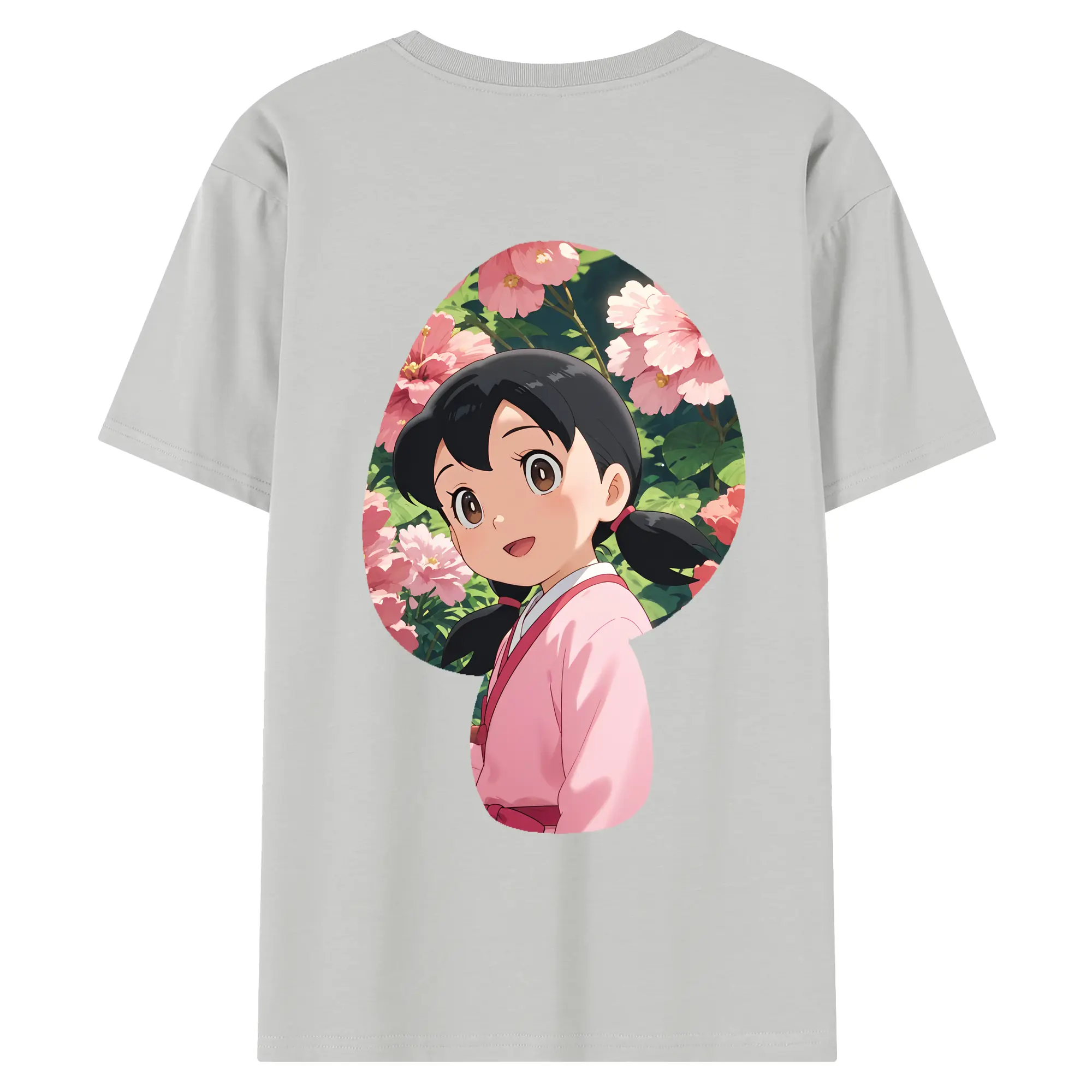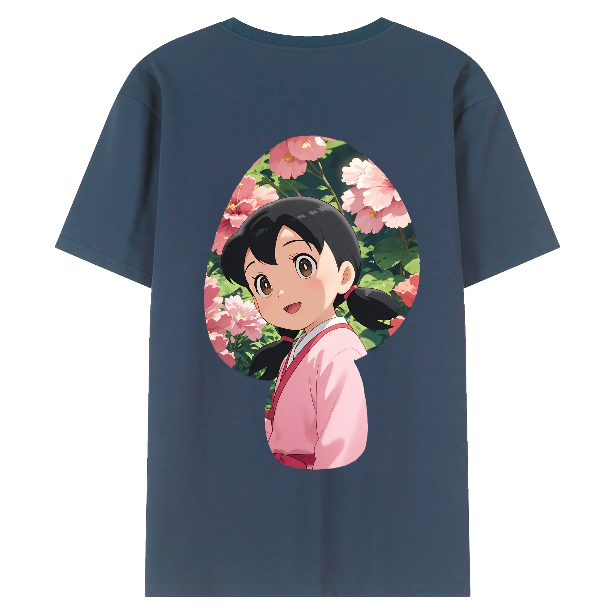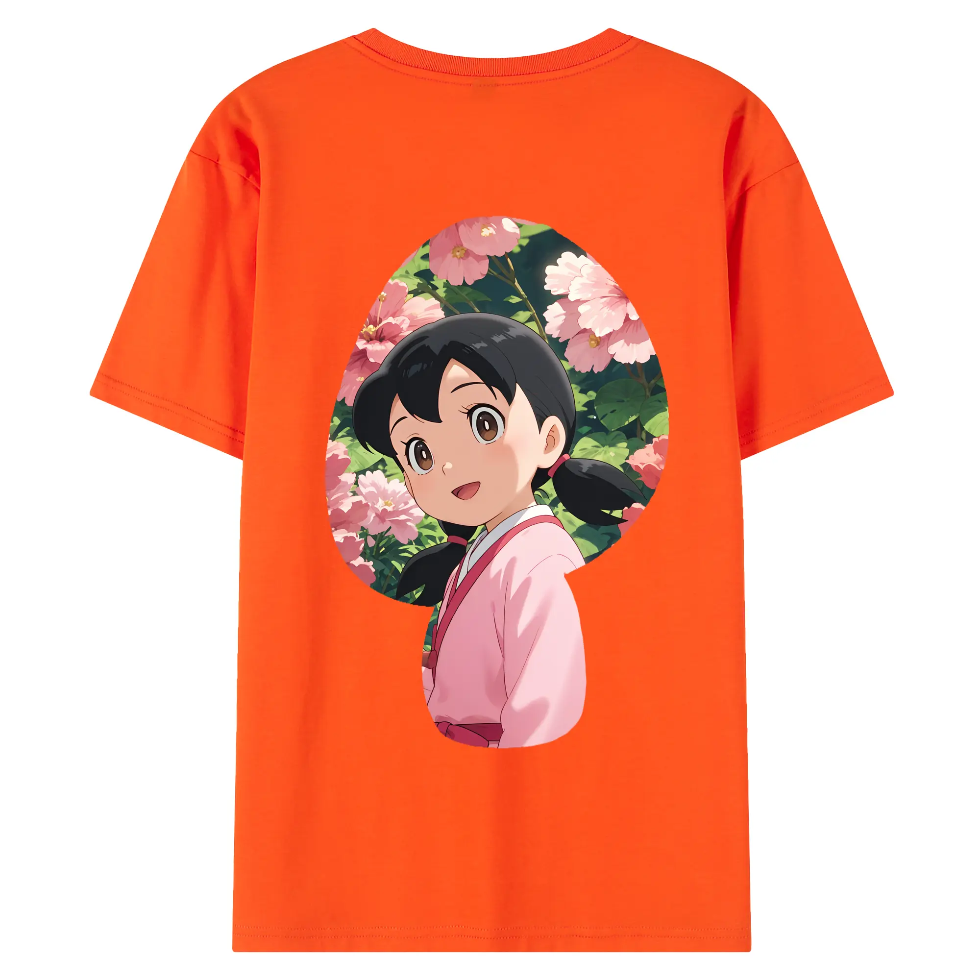 ドラえもん グッズ 源 静香 - 綿100% ヴィンテージ風 半袖Tシャツ ・ 背面プリント ・ 柔らか肌触り ・ 通気性 快適 ・ スポーツ カジュアル 外出用