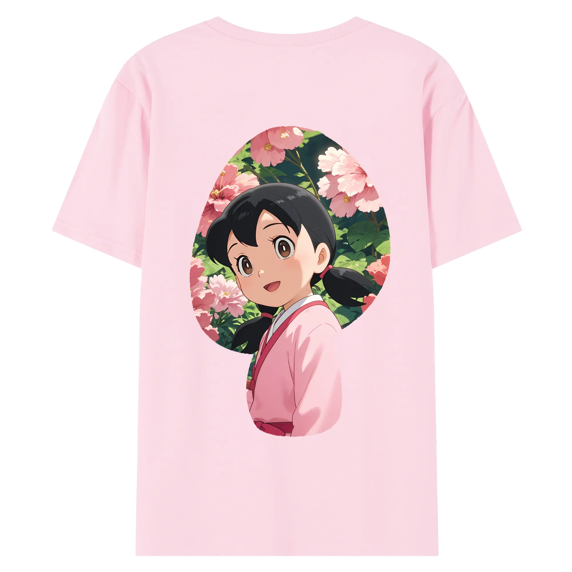 ドラえもん グッズ 源 静香 - 綿100% 半袖Tシャツ ・ フロントプリント ・ 快適 通気性 ・ 日常使い 散歩 スポーツ用