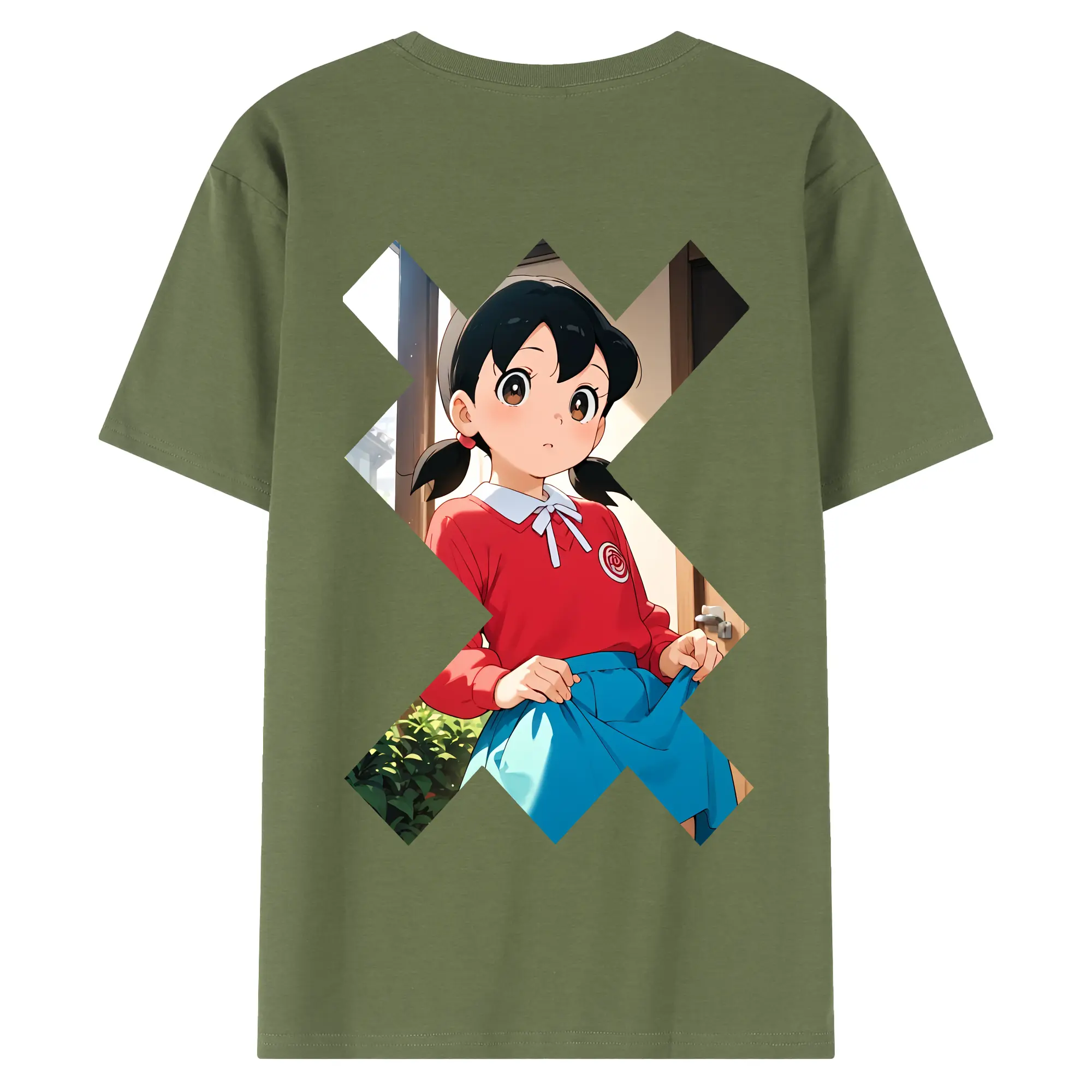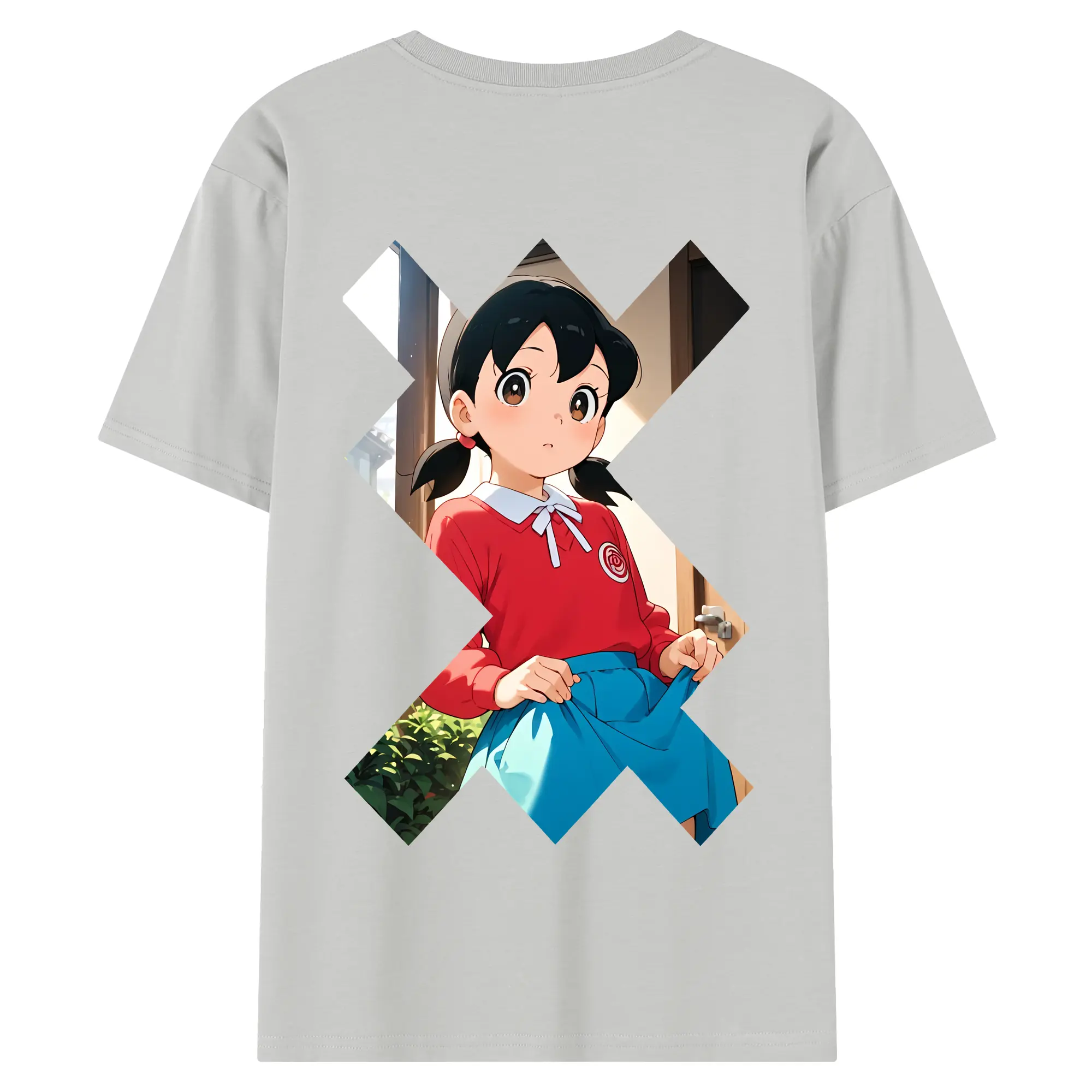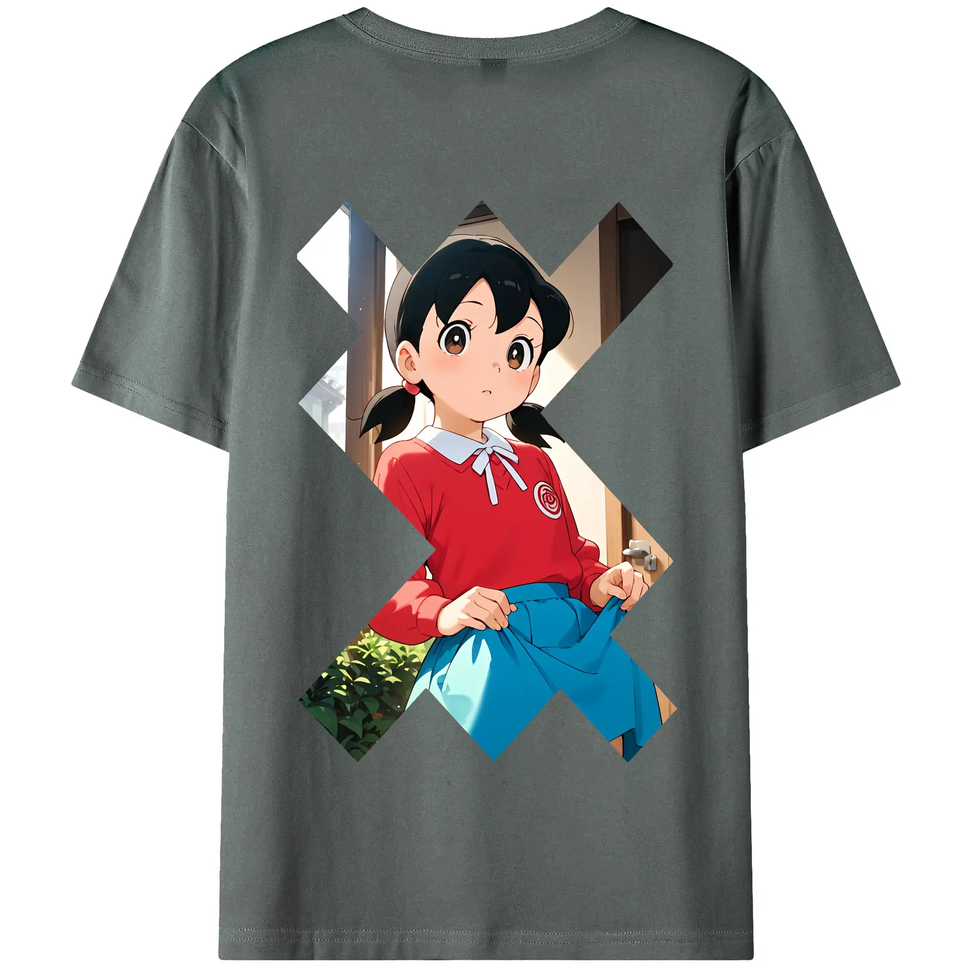 ドラえもん グッズ 源 静香 - 綿100% ヴィンテージ風 半袖Tシャツ ・ 背面プリント ・ 柔らか肌触り ・ 通気性 快適 ・ スポーツ カジュアル 外出用