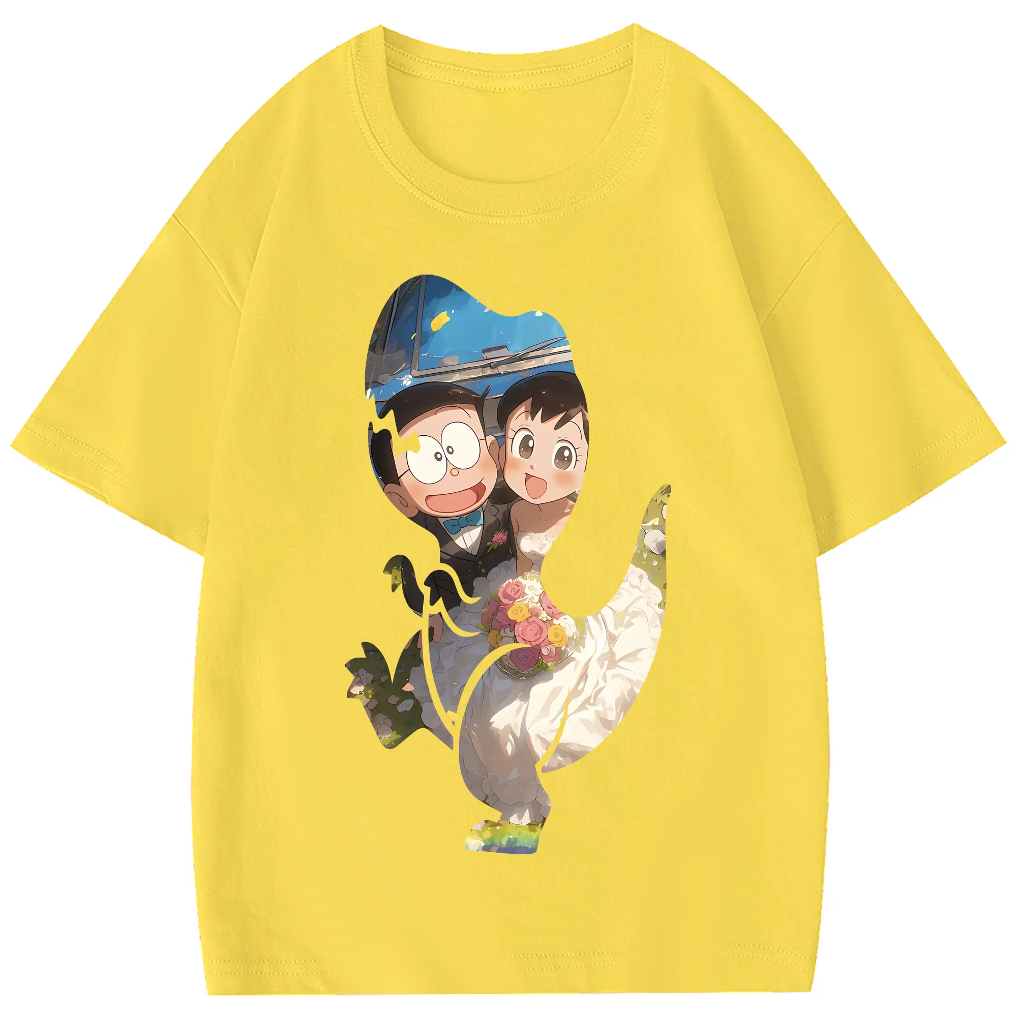 ドラえもん グッズ 源 静香 - 綿100% 半袖Tシャツ ・ フロントプリント ・ 快適 通気性 ・ 日常使い 散歩 スポーツ用