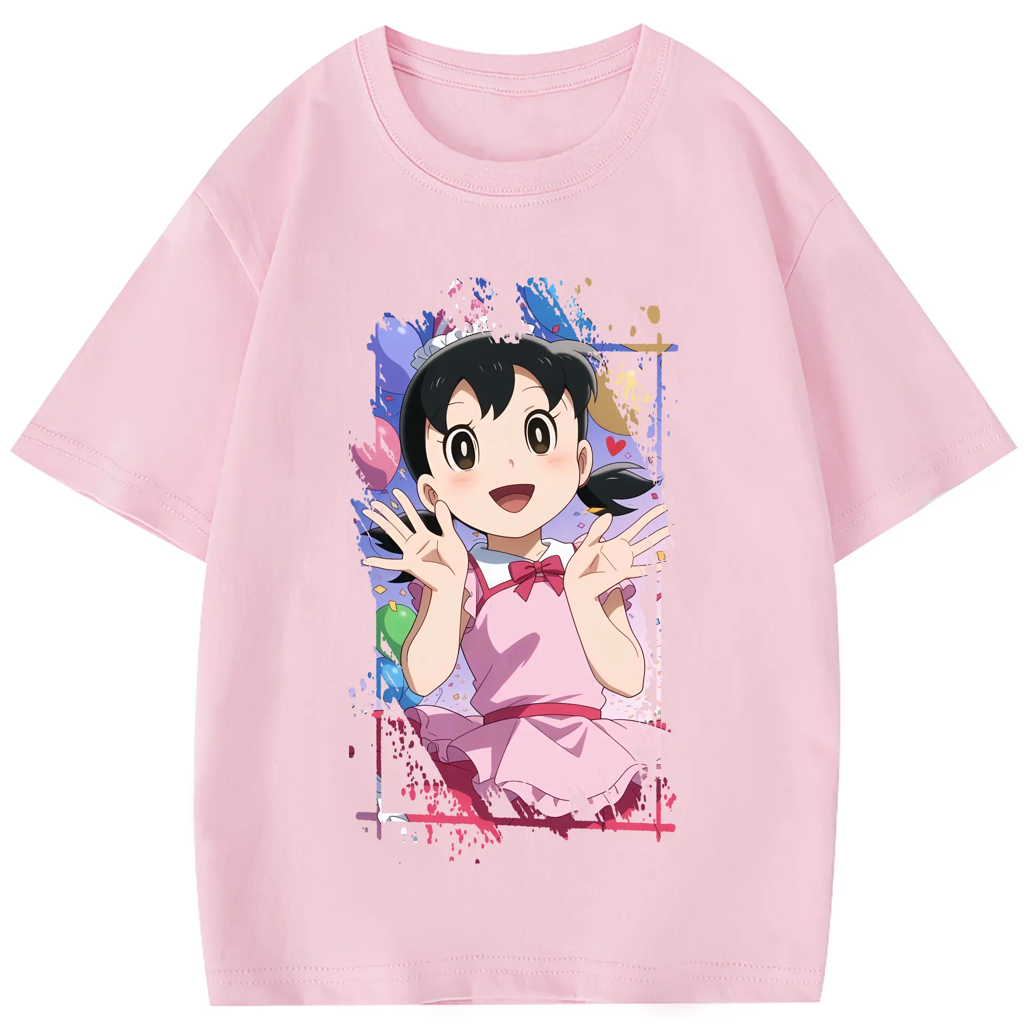 ドラえもん グッズ 源 静香 - 綿100% 半袖Tシャツ ・ フロントプリント ・ 快適 通気性 ・ 日常使い 散歩 スポーツ用