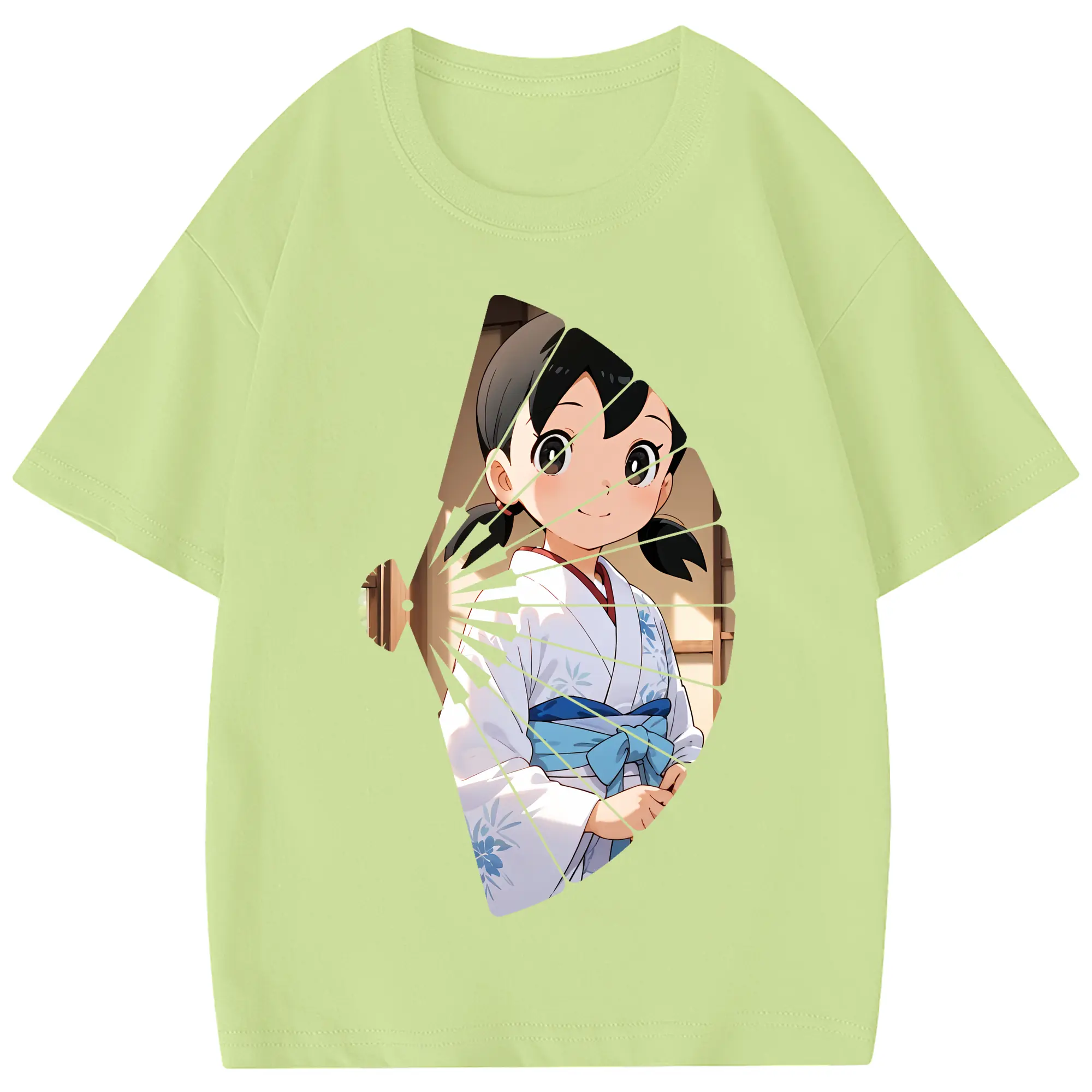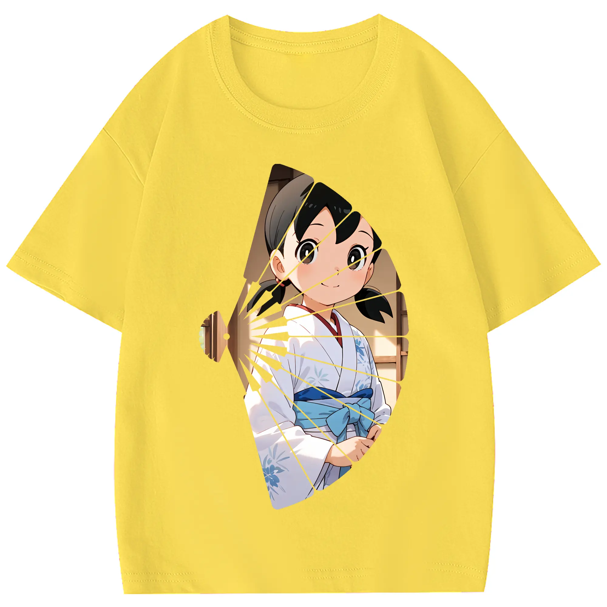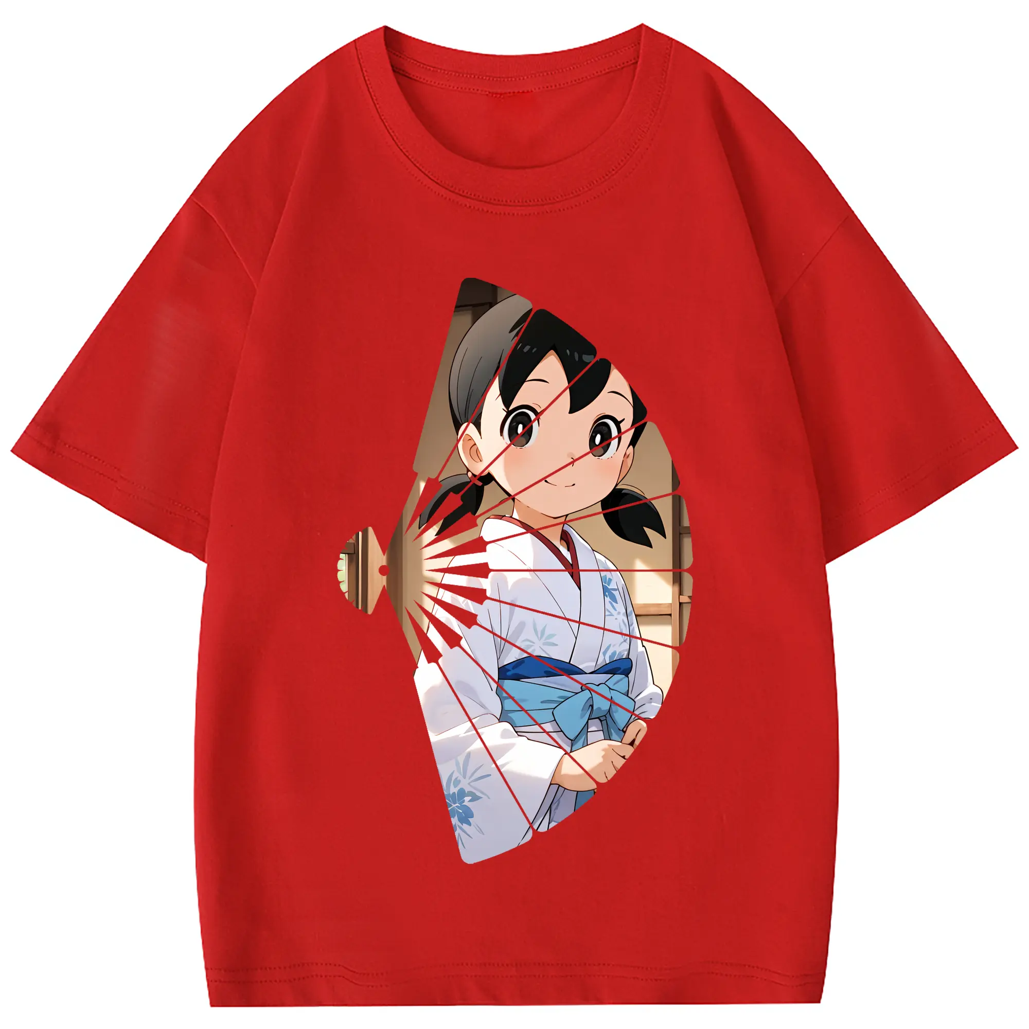 ドラえもん グッズ 源 静香 - 綿100% 半袖Tシャツ ・ フロントプリント ・ 快適 通気性 ・ 日常使い 散歩 スポーツ用