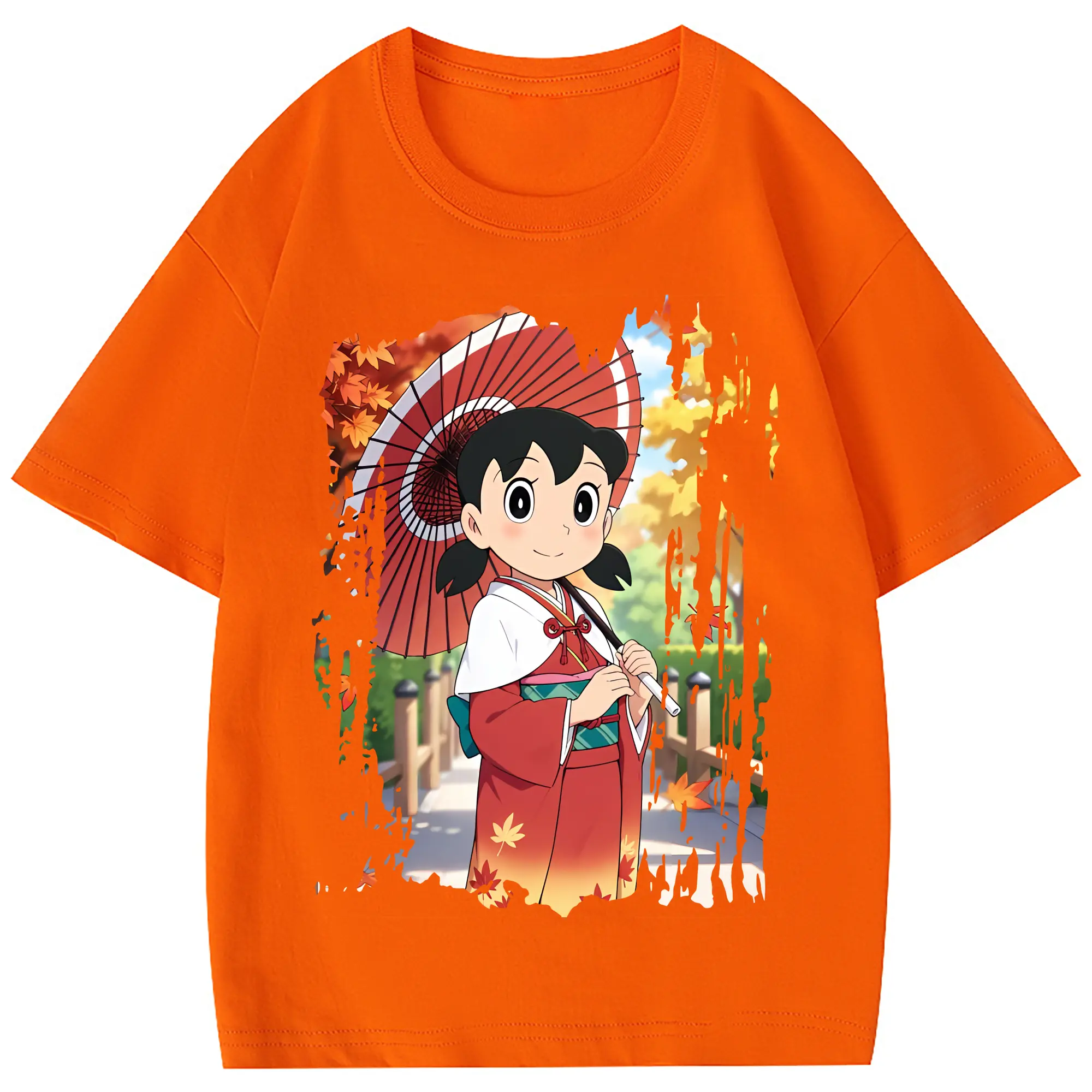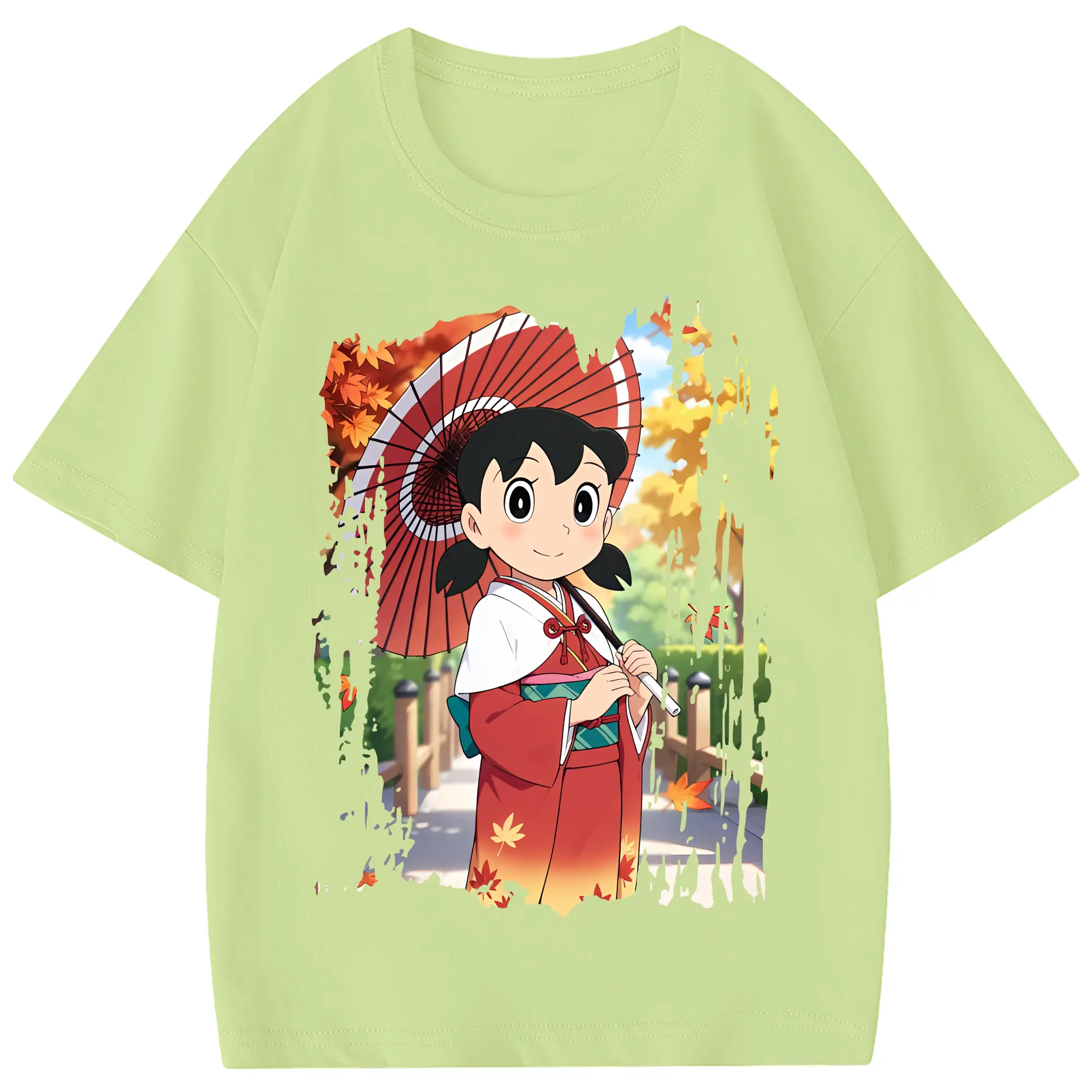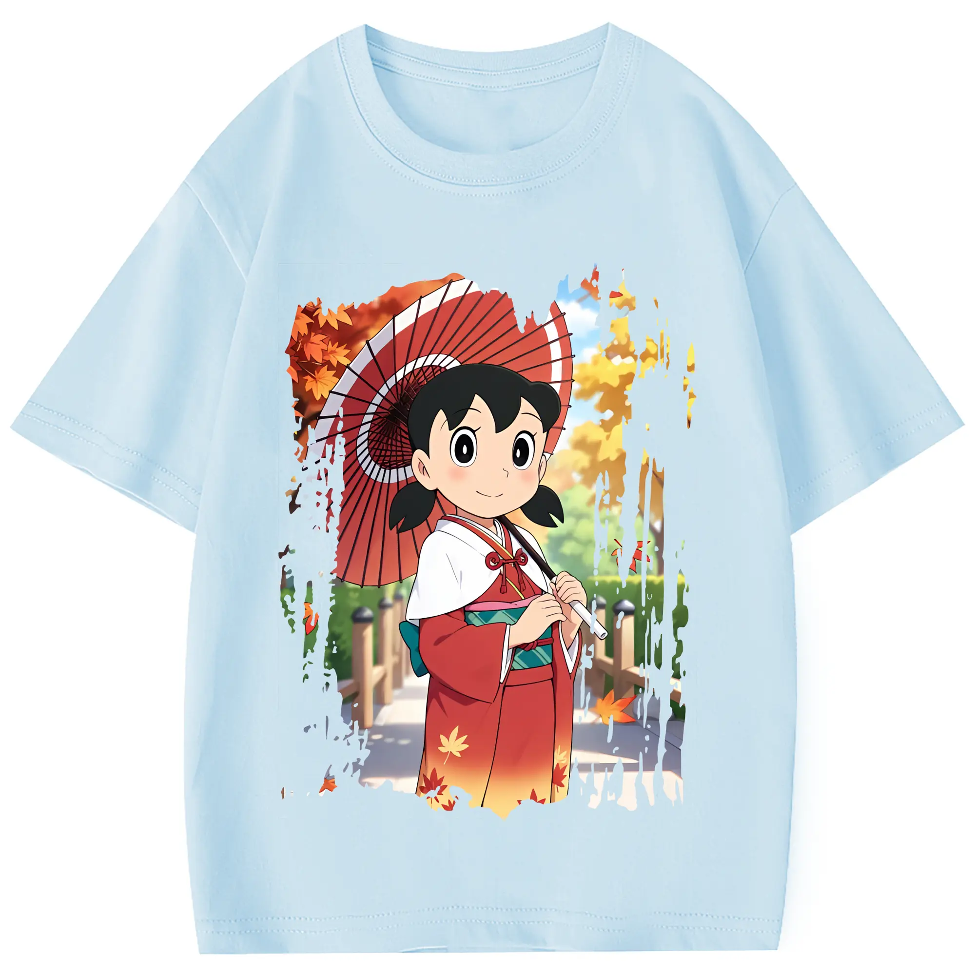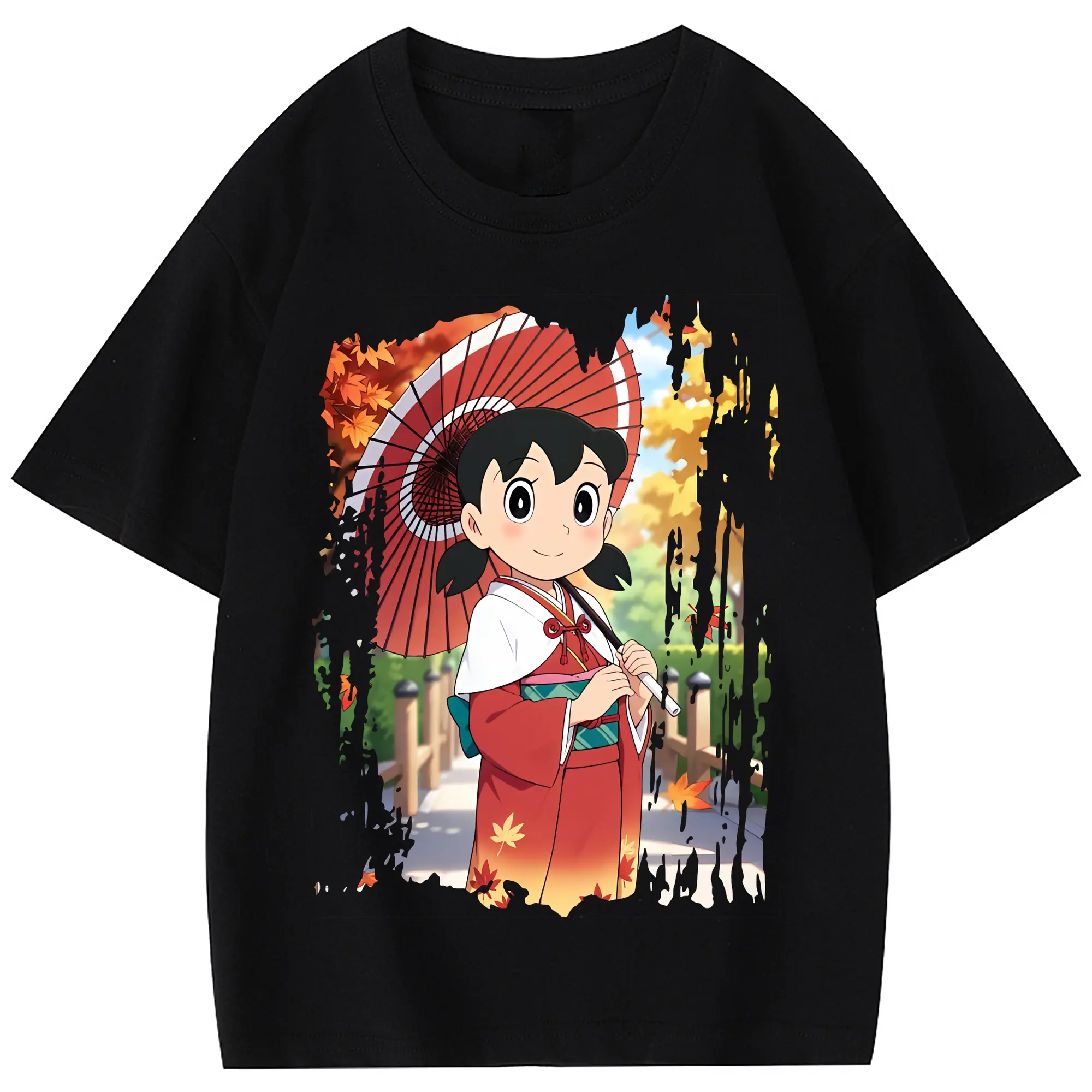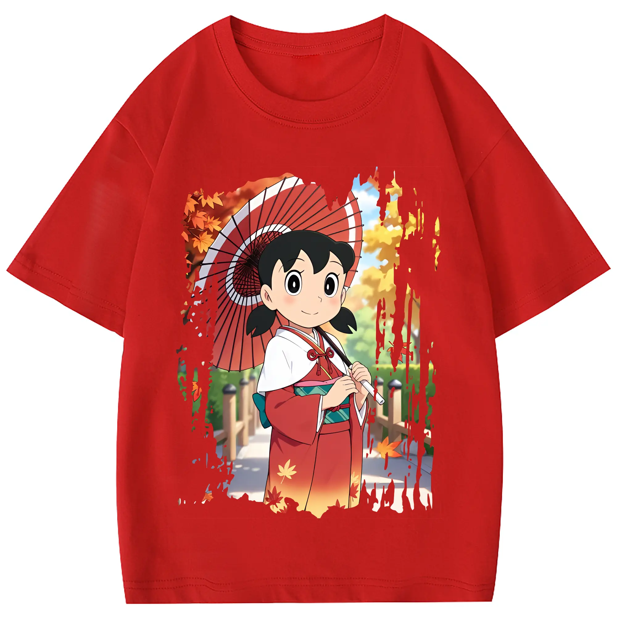 ドラえもん グッズ 源 静香 - 綿100% 半袖Tシャツ ・ フロントプリント ・ 快適 通気性 ・ 日常使い 散歩 スポーツ用