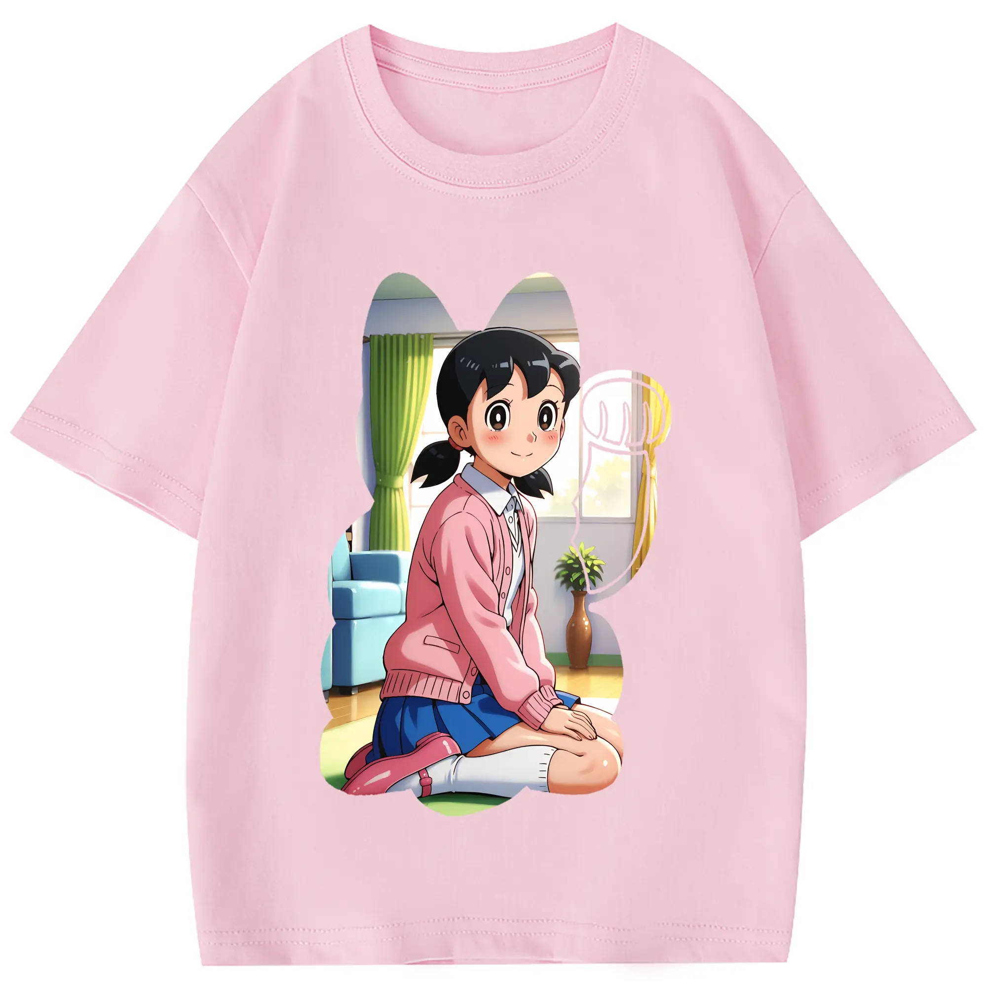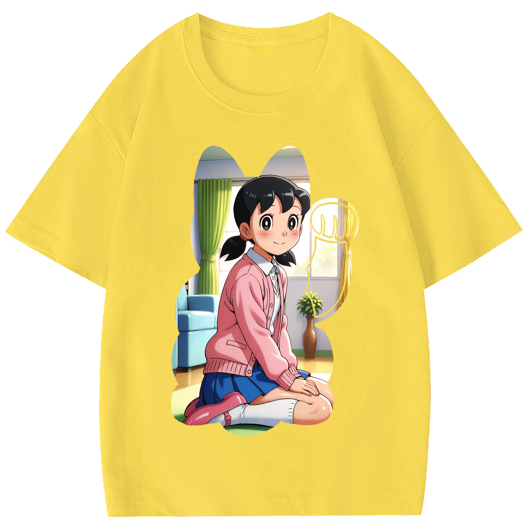 ドラえもん グッズ 源 静香 - 綿100% 半袖Tシャツ ・ フロントプリント ・ 快適 通気性 ・ 日常使い 散歩 スポーツ用