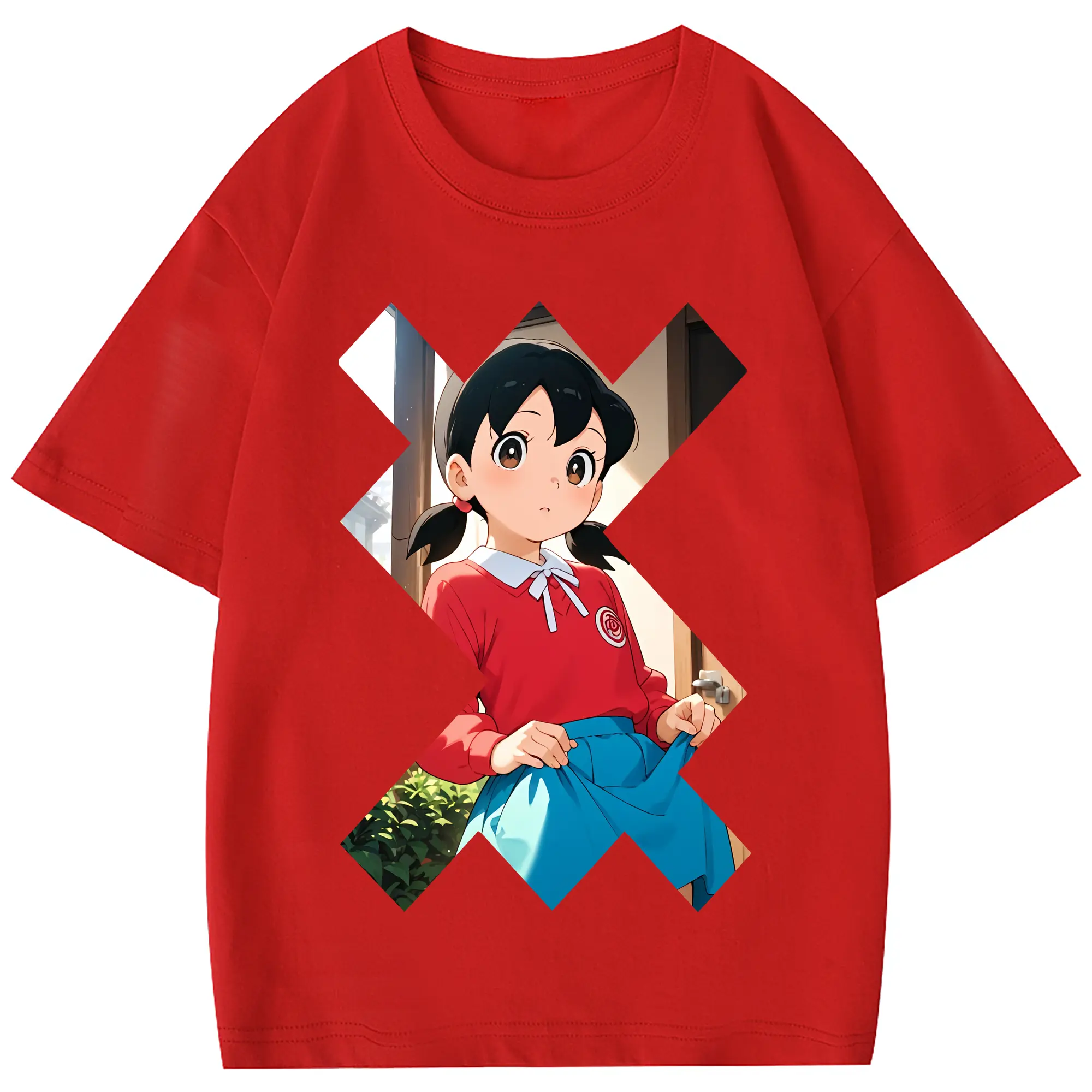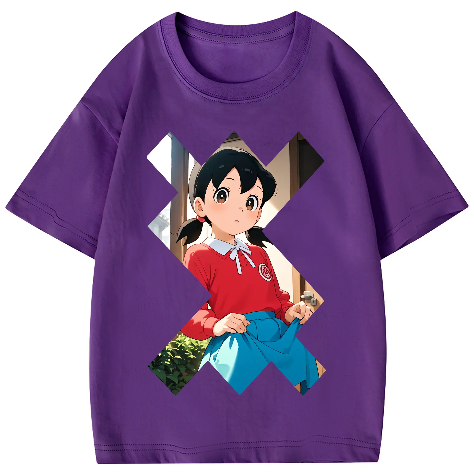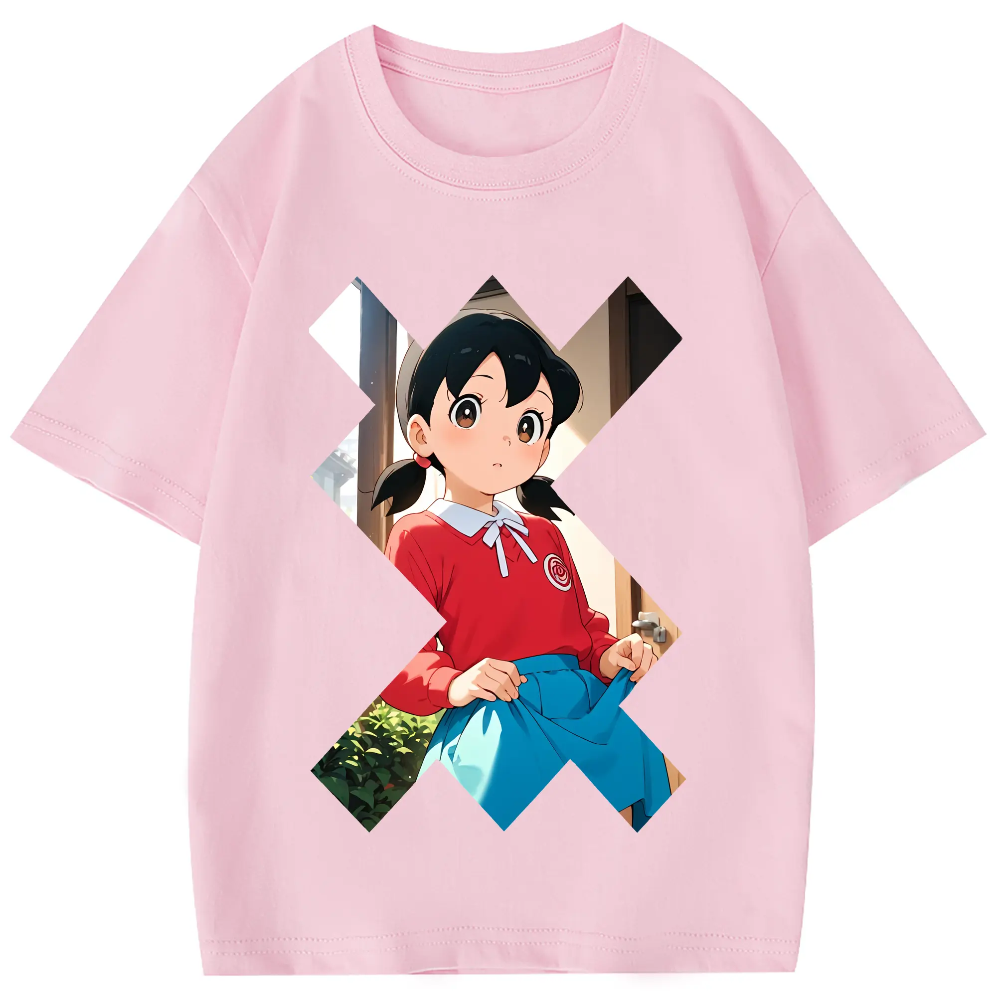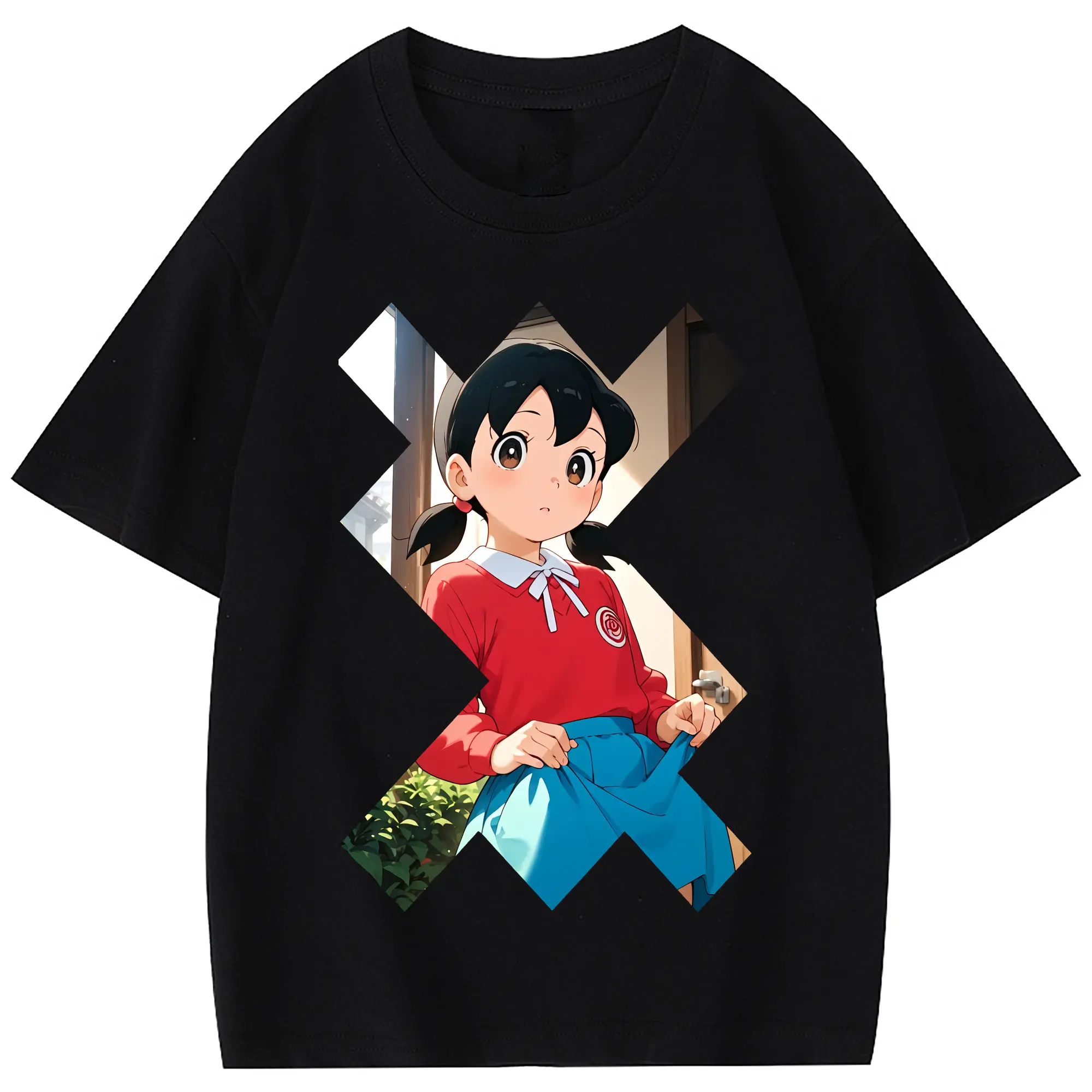 ドラえもん グッズ 源 静香 - 綿100% 半袖Tシャツ ・ フロントプリント ・ 快適 通気性 ・ 日常使い 散歩 スポーツ用
