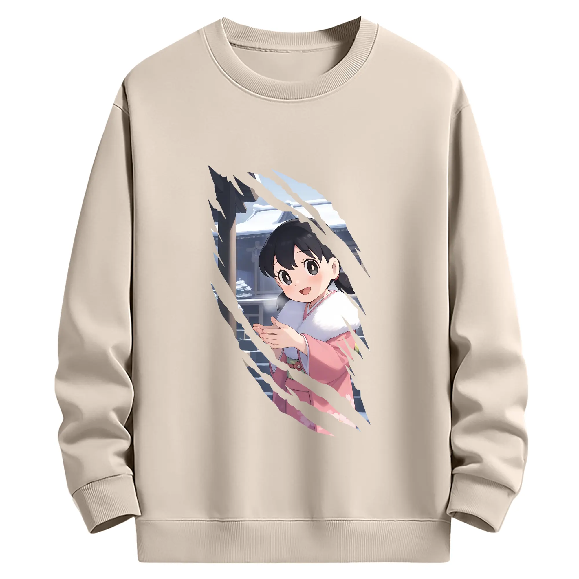 ドラえもん グッズ 源 静香 - 薄手 クルーネック スウェット 裏毛260g · ポリエステル 春秋向け カジュアル 男女兼用 · トレーナー デイリー スポーツ 散歩に最適