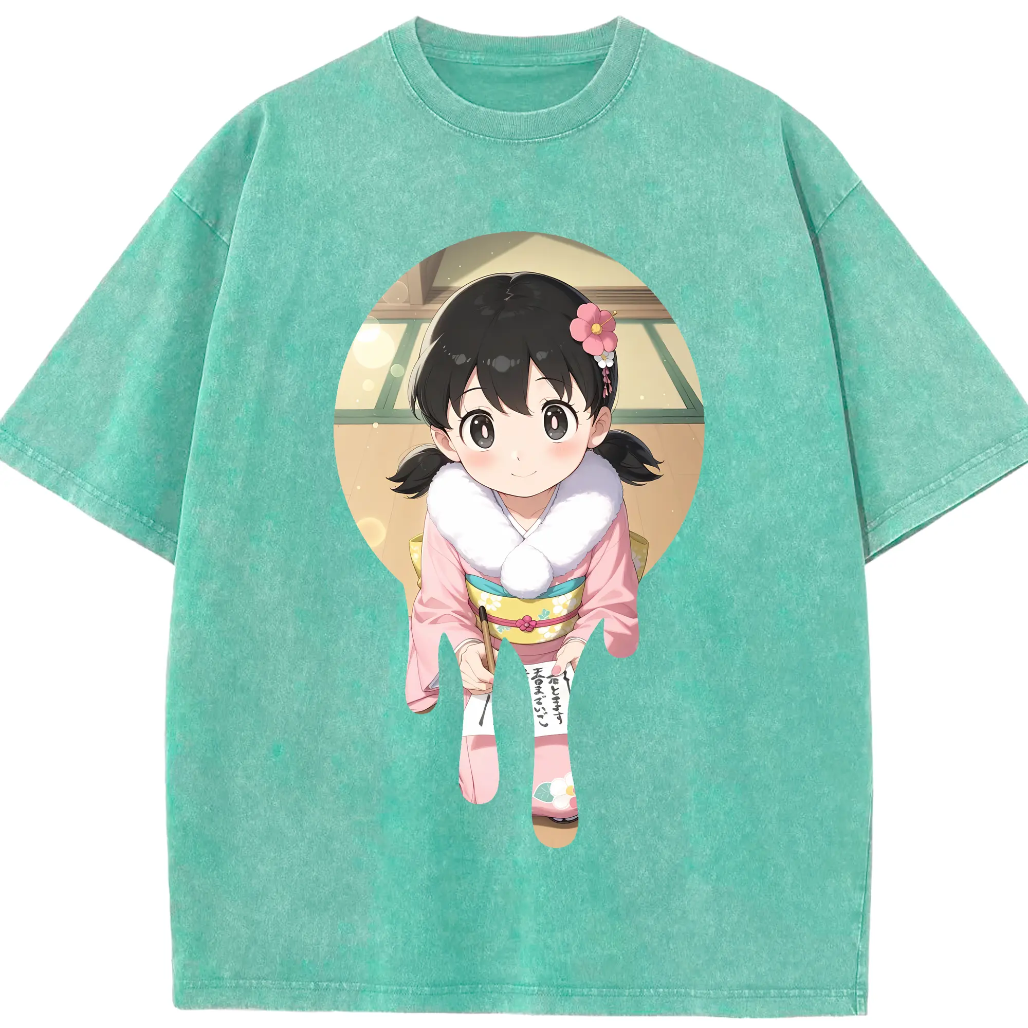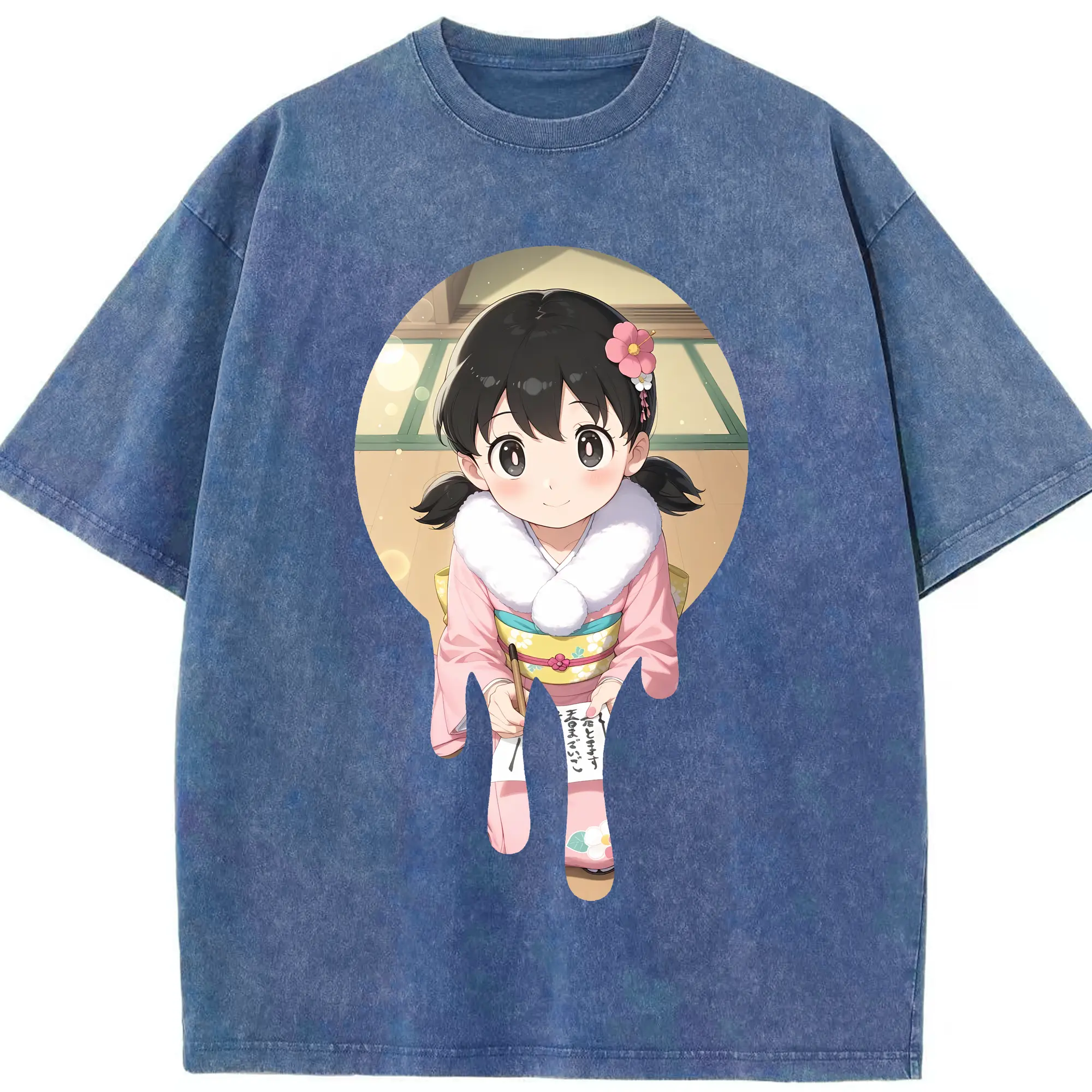 ドラえもん グッズ 源 静香 - 綿100% ヴィンテージ風 半袖Tシャツ ・ 背面プリント ・ 柔らか肌触り ・ 通気性 快適 ・ スポーツ カジュアル 外出用