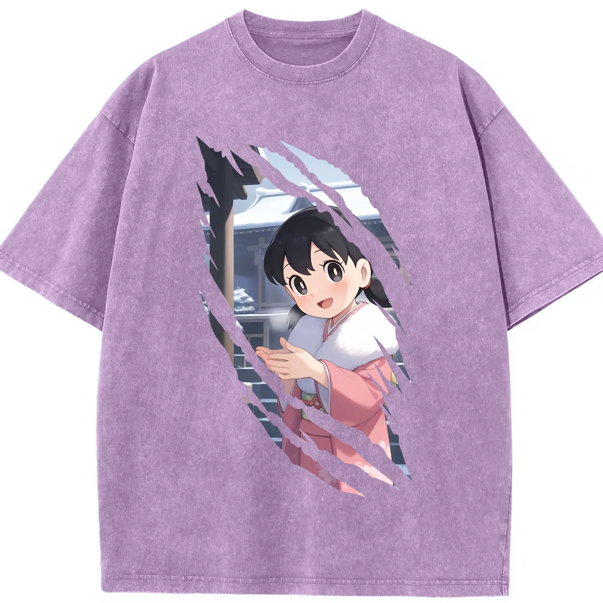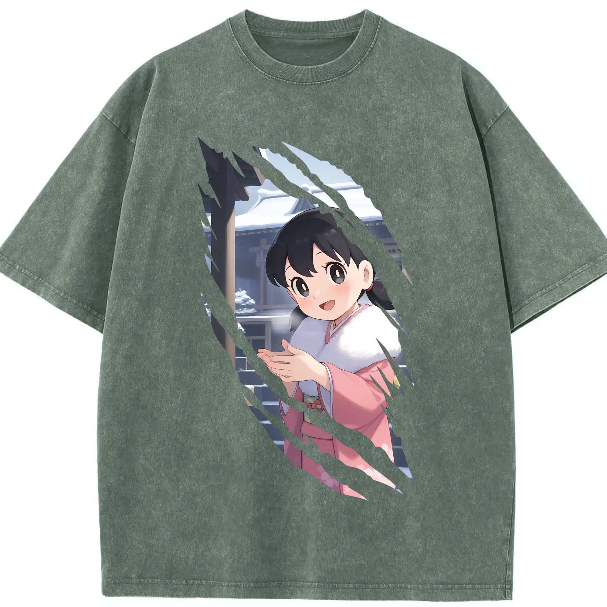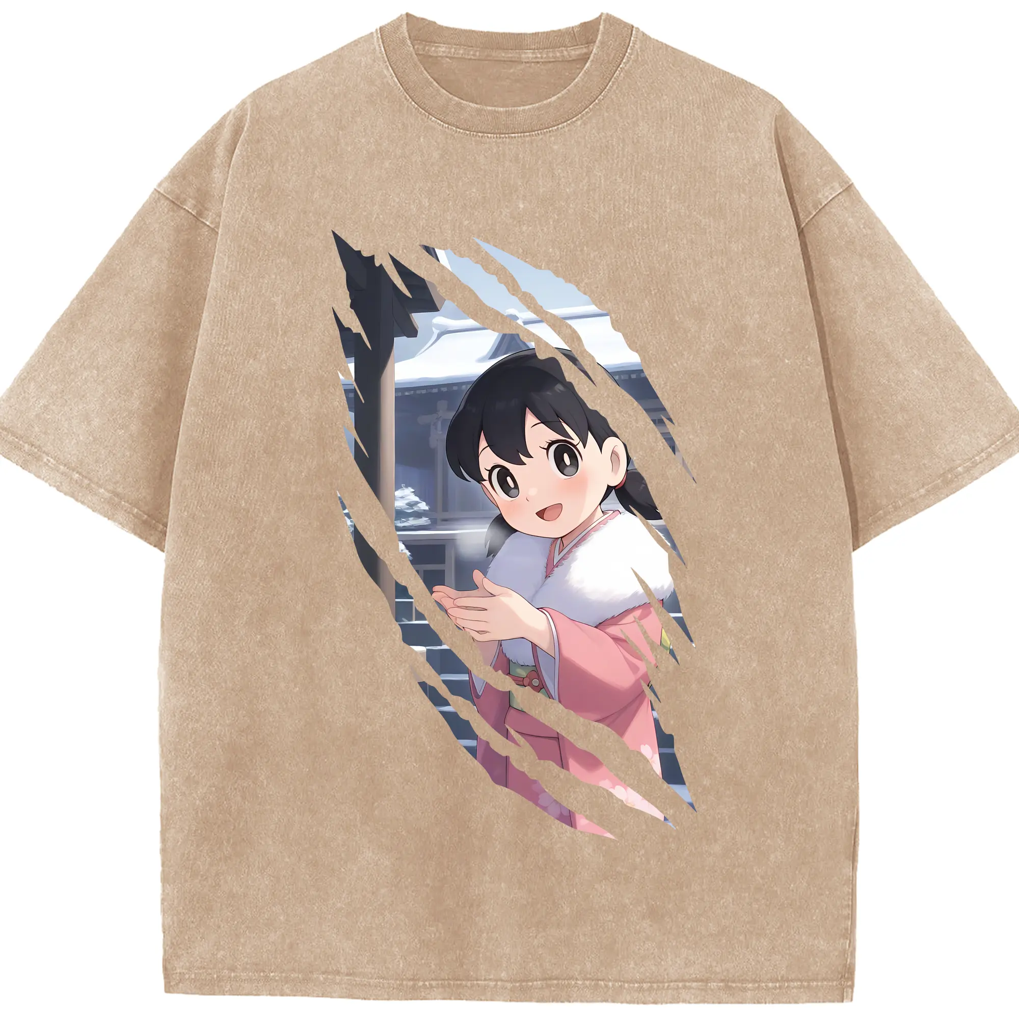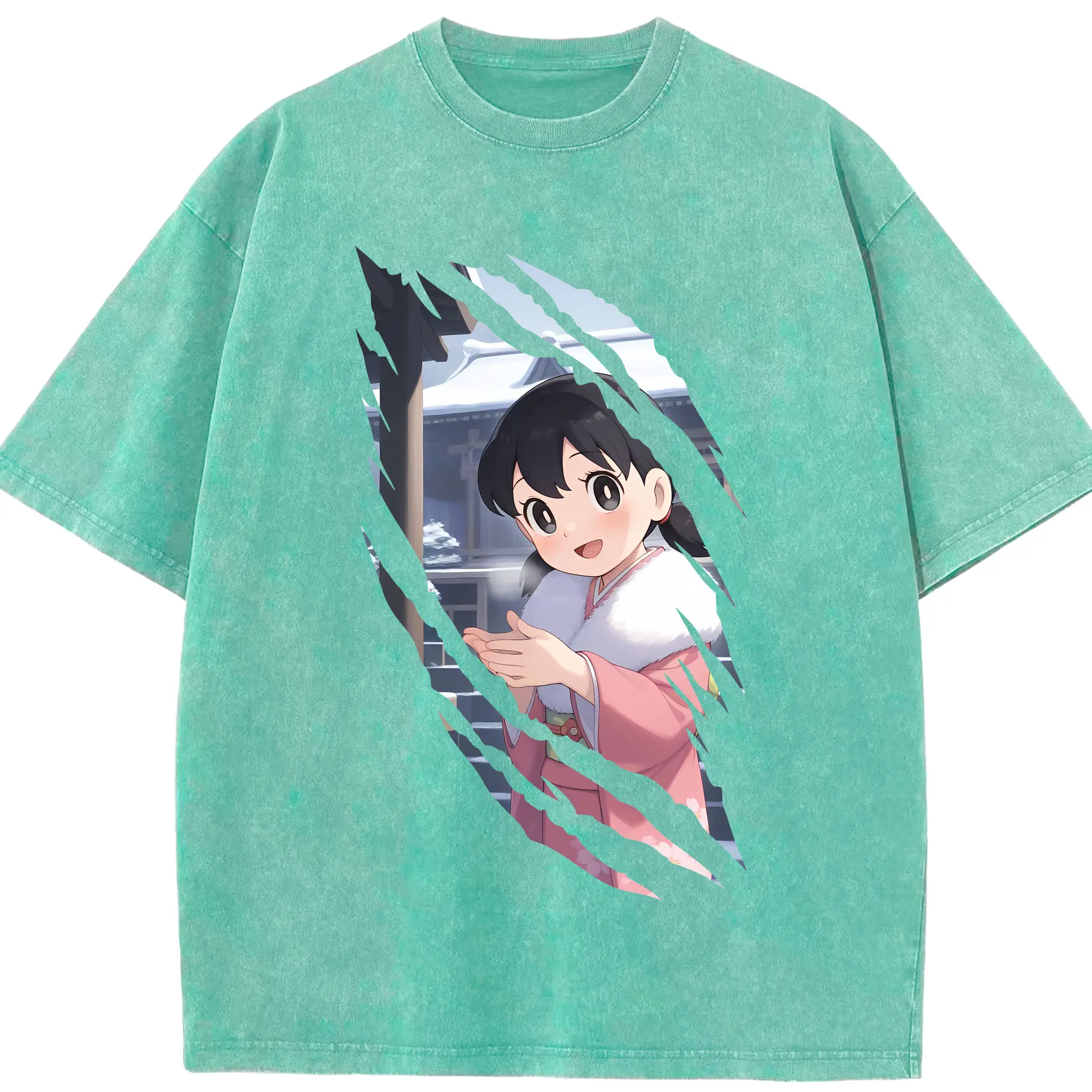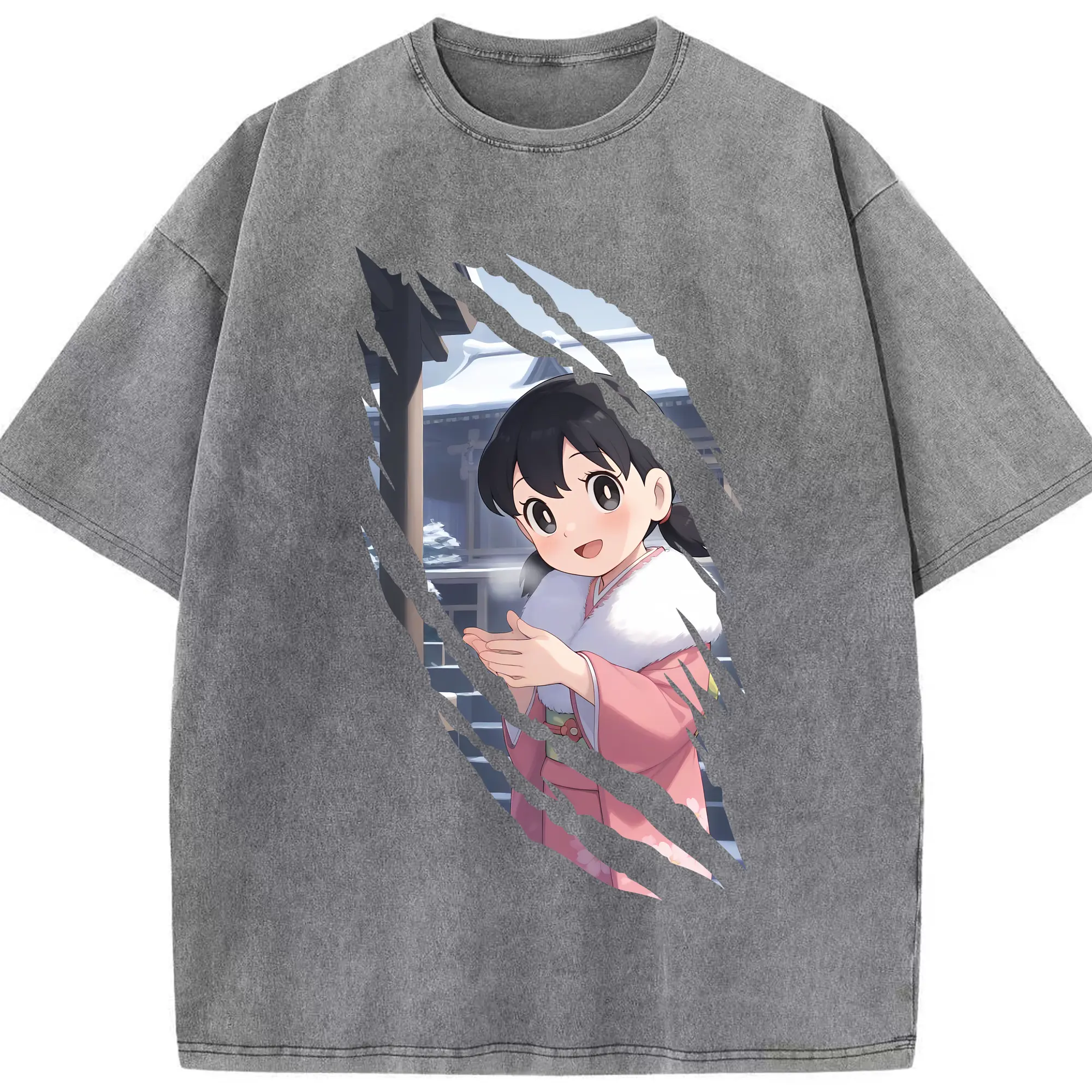 ドラえもん グッズ 源 静香 - 綿100% ヴィンテージ風 半袖Tシャツ ・ 背面プリント ・ 柔らか肌触り ・ 通気性 快適 ・ スポーツ カジュアル 外出用