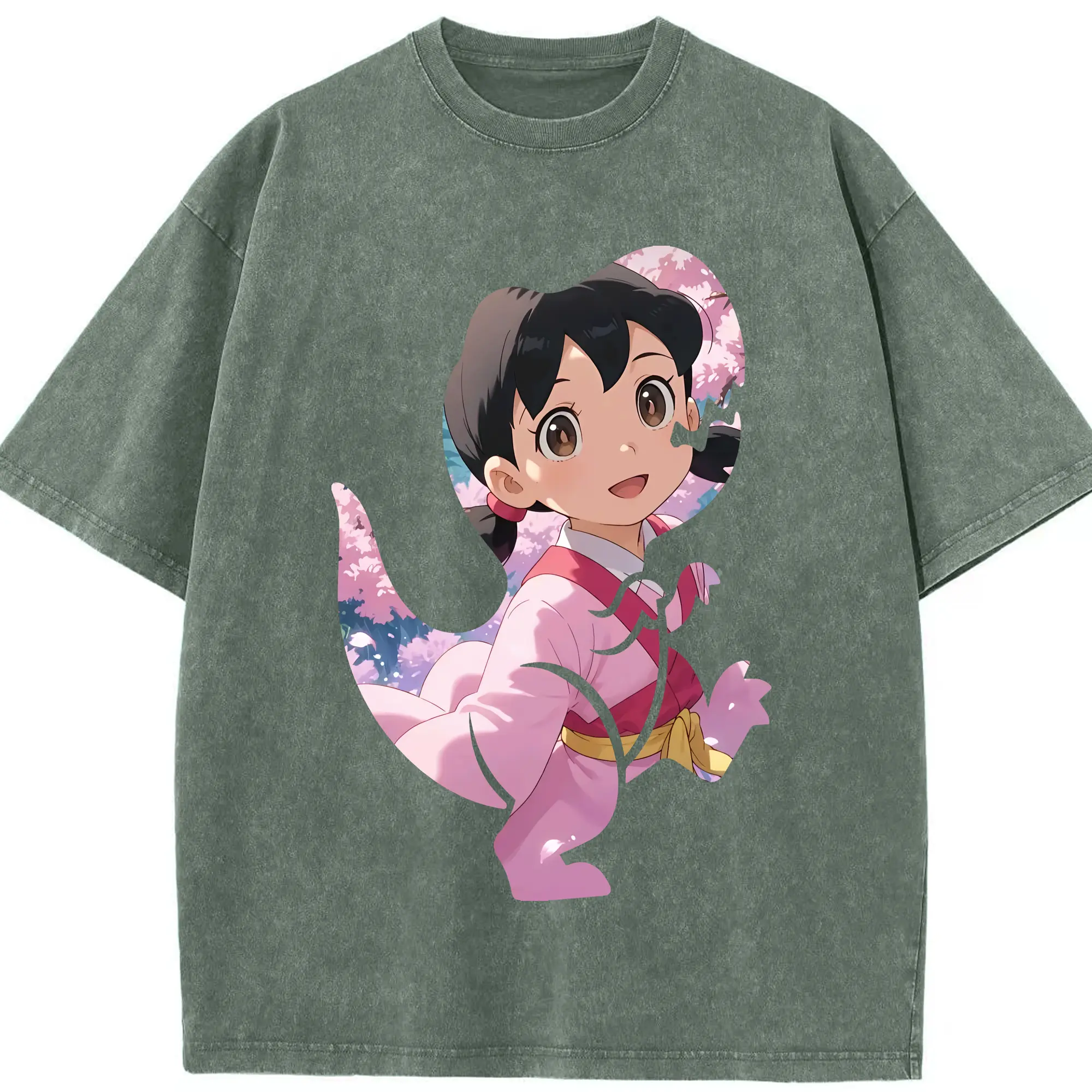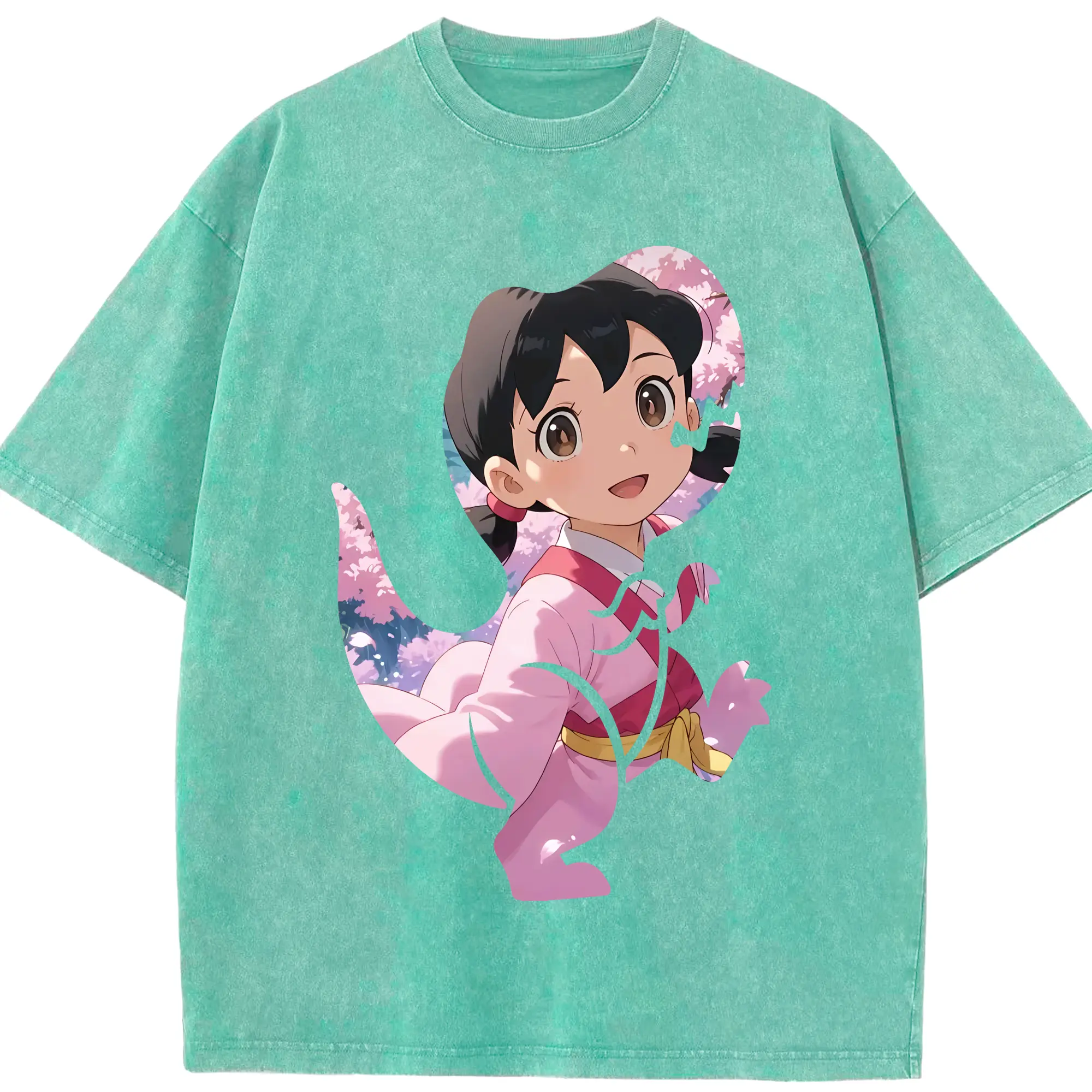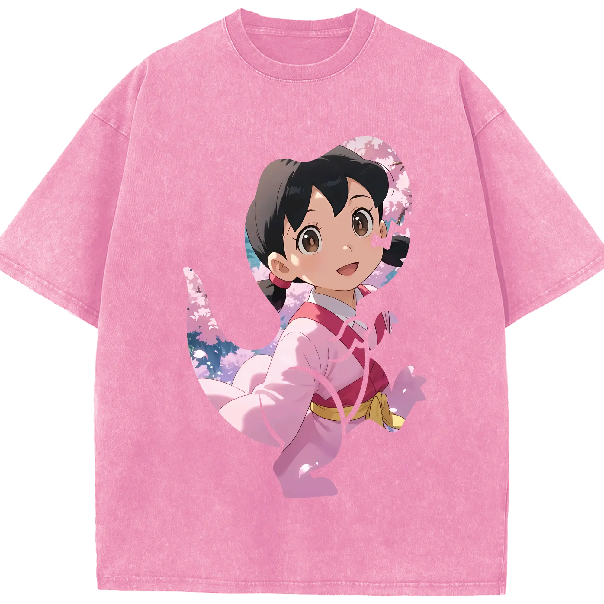 ドラえもん グッズ 源 静香 - 綿100% ヴィンテージ風 半袖Tシャツ ・ 背面プリント ・ 柔らか肌触り ・ 通気性 快適 ・ スポーツ カジュアル 外出用
