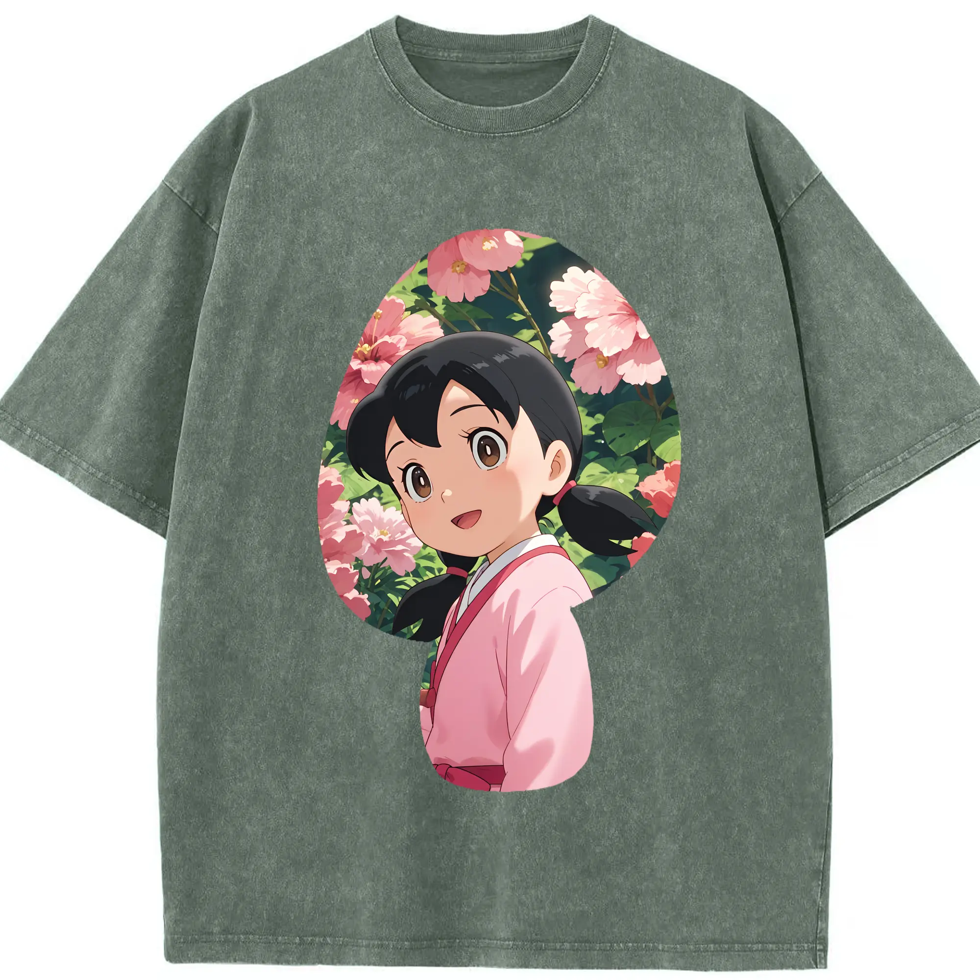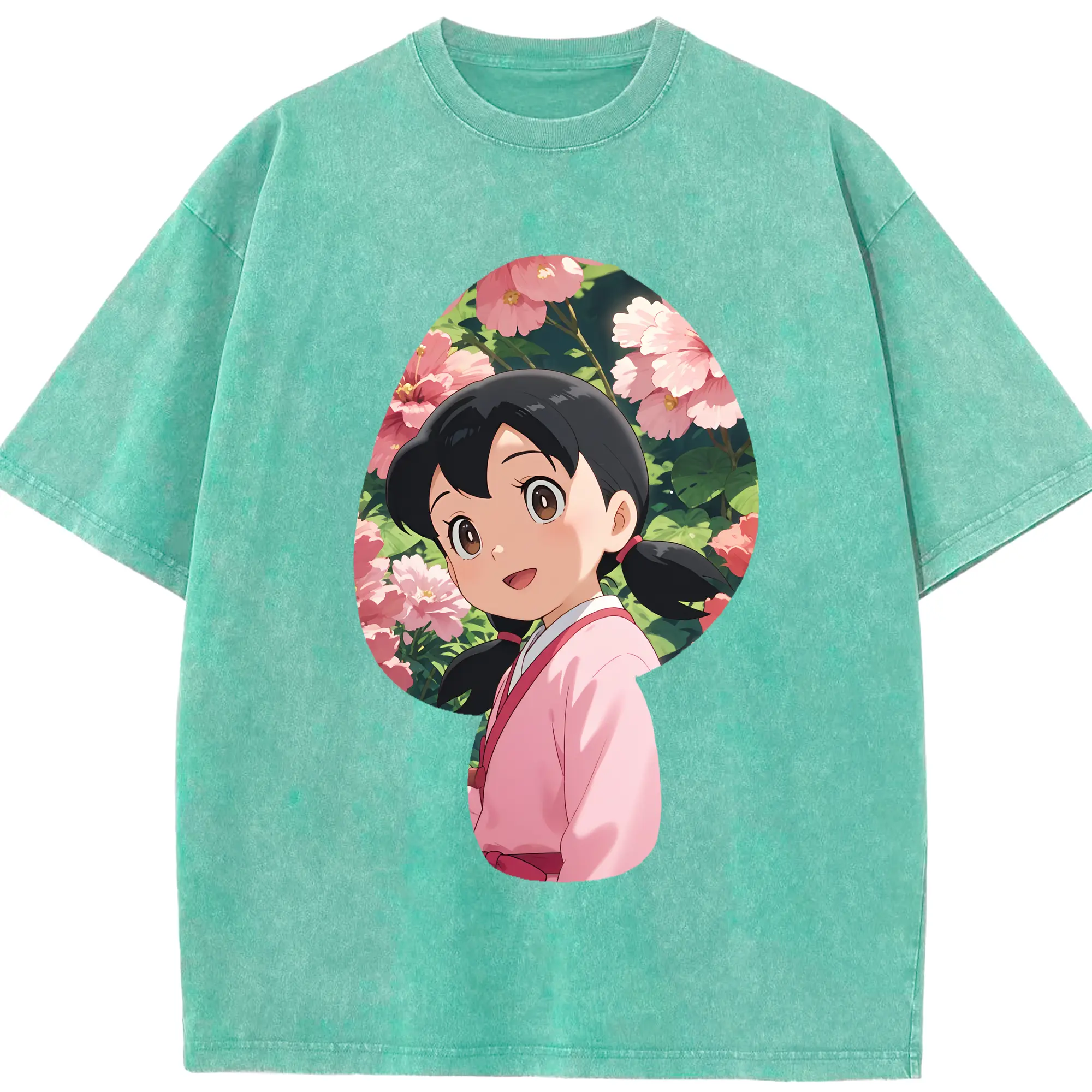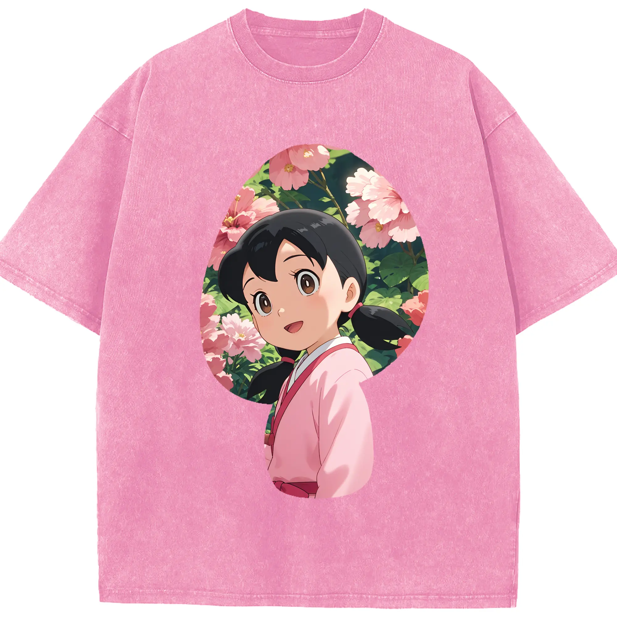 ドラえもん グッズ 源 静香 - 綿100% ヴィンテージ風 半袖Tシャツ ・ 背面プリント ・ 柔らか肌触り ・ 通気性 快適 ・ スポーツ カジュアル 外出用
