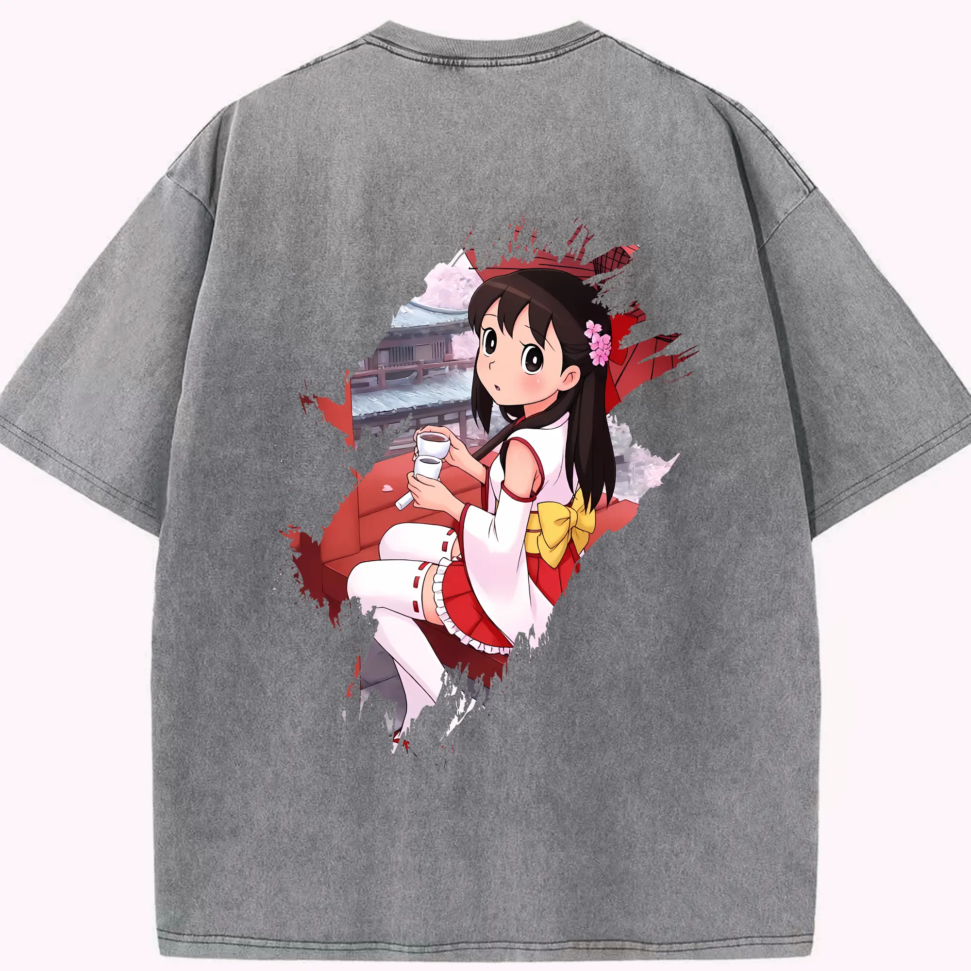 鳴潮 グッズ アンコ - 綿100% ヴィンテージ風 半袖Tシャツ ・ 背面プリント ・ 柔らか肌触り ・ 通気性 快適 ・ スポーツ カジュアル 外出用