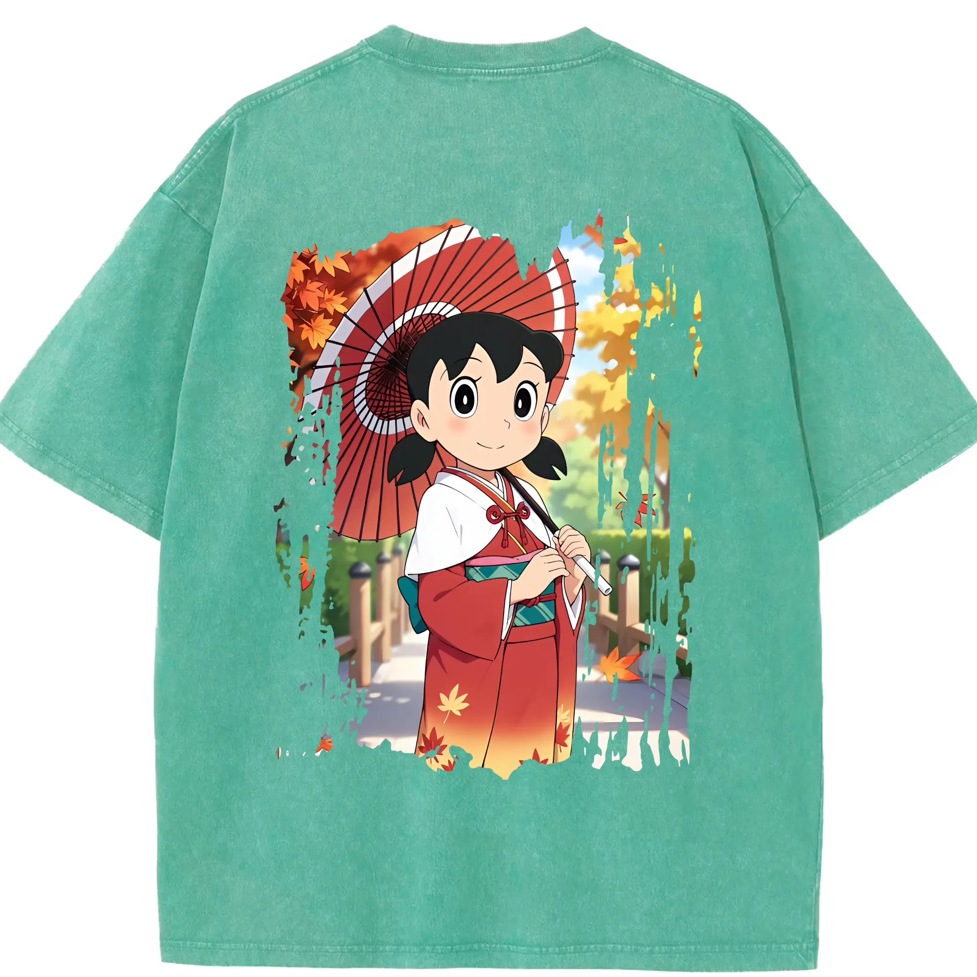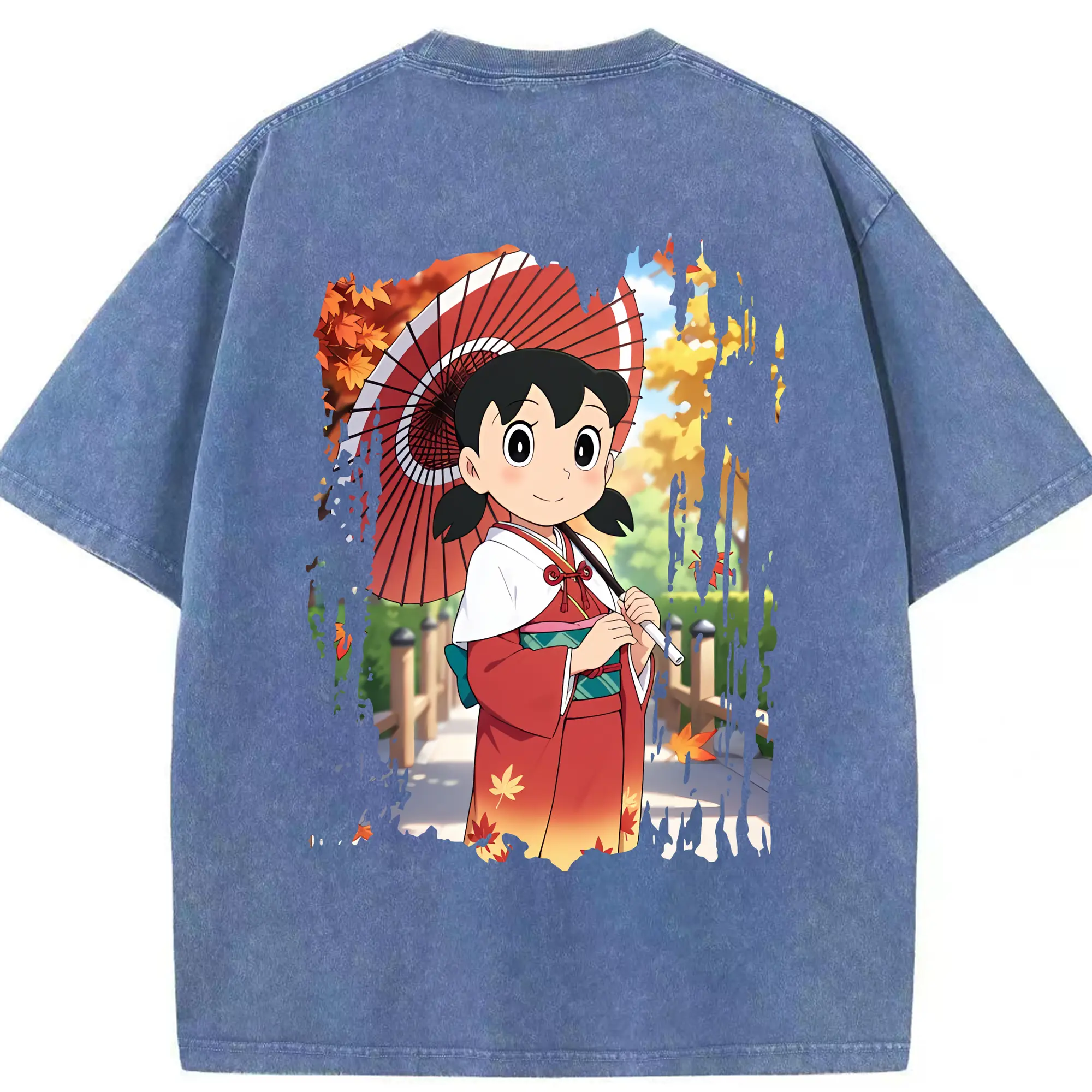 ドラえもん グッズ 源 静香 - 綿100% ヴィンテージ風 半袖Tシャツ ・ フロントプリント ・ 柔らか肌触り ・ 通気性 快適 ・ スポーツ カジュアル 外出用