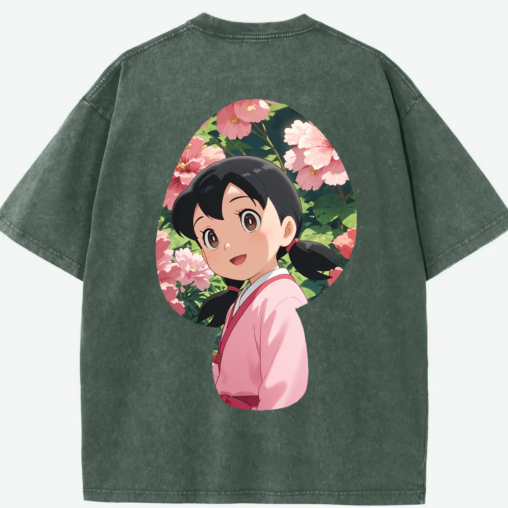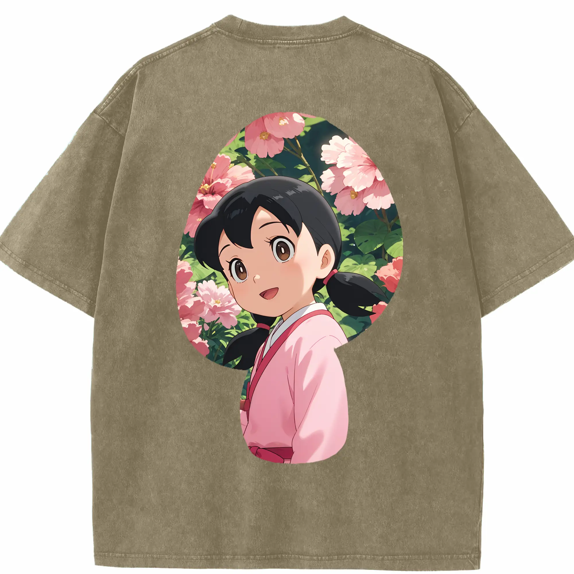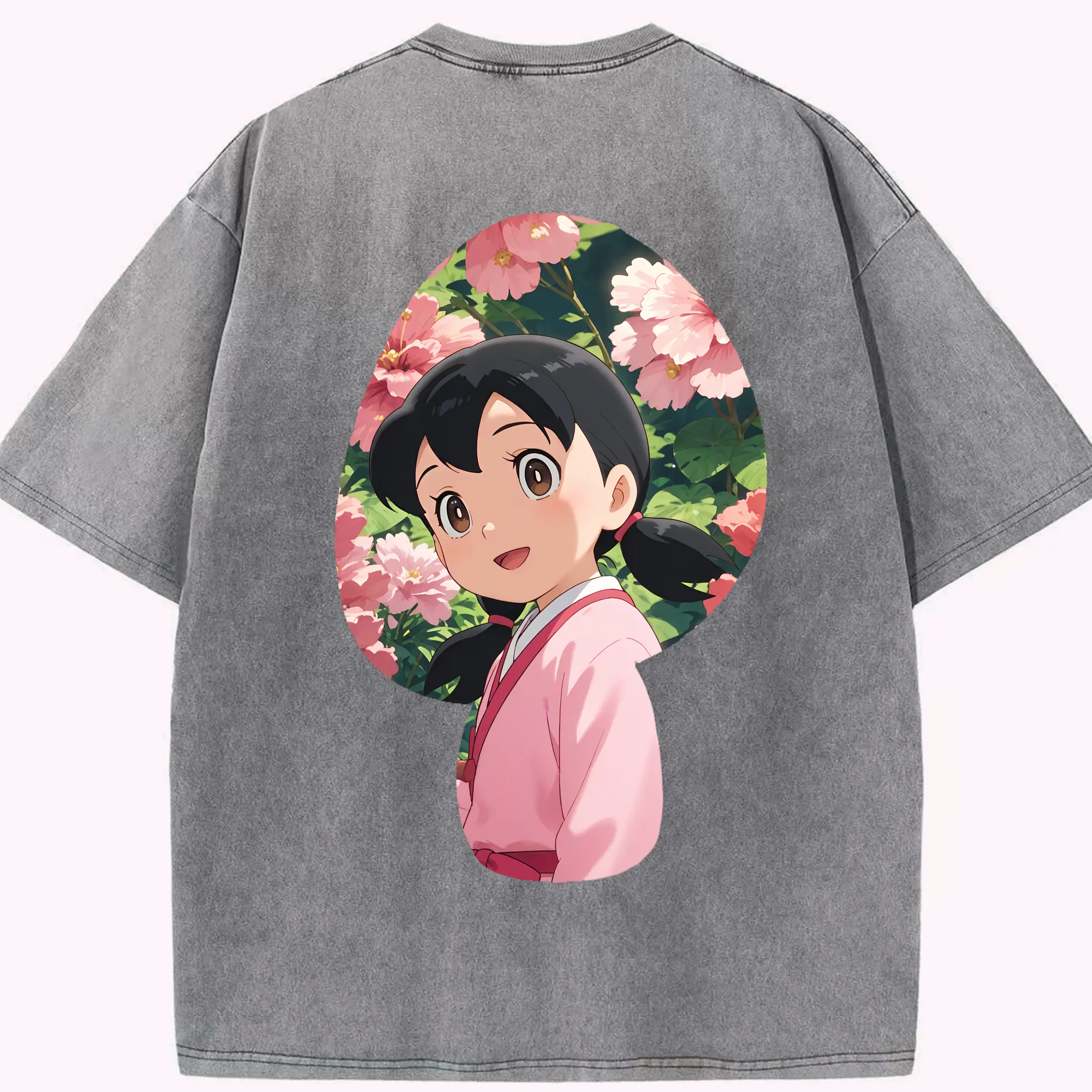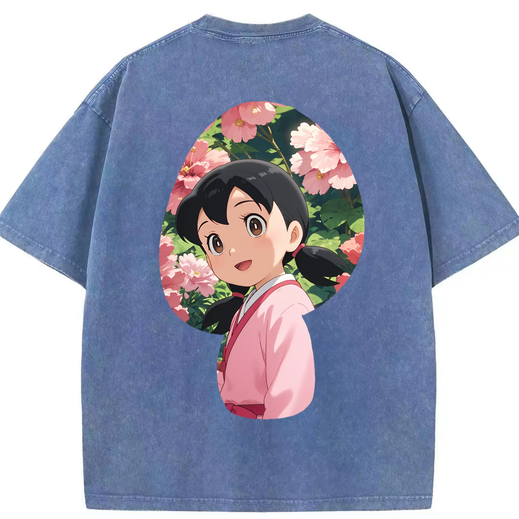 ドラえもん グッズ 源 静香 - 綿100% ヴィンテージ風 半袖Tシャツ ・ フロントプリント ・ 柔らか肌触り ・ 通気性 快適 ・ スポーツ カジュアル 外出用