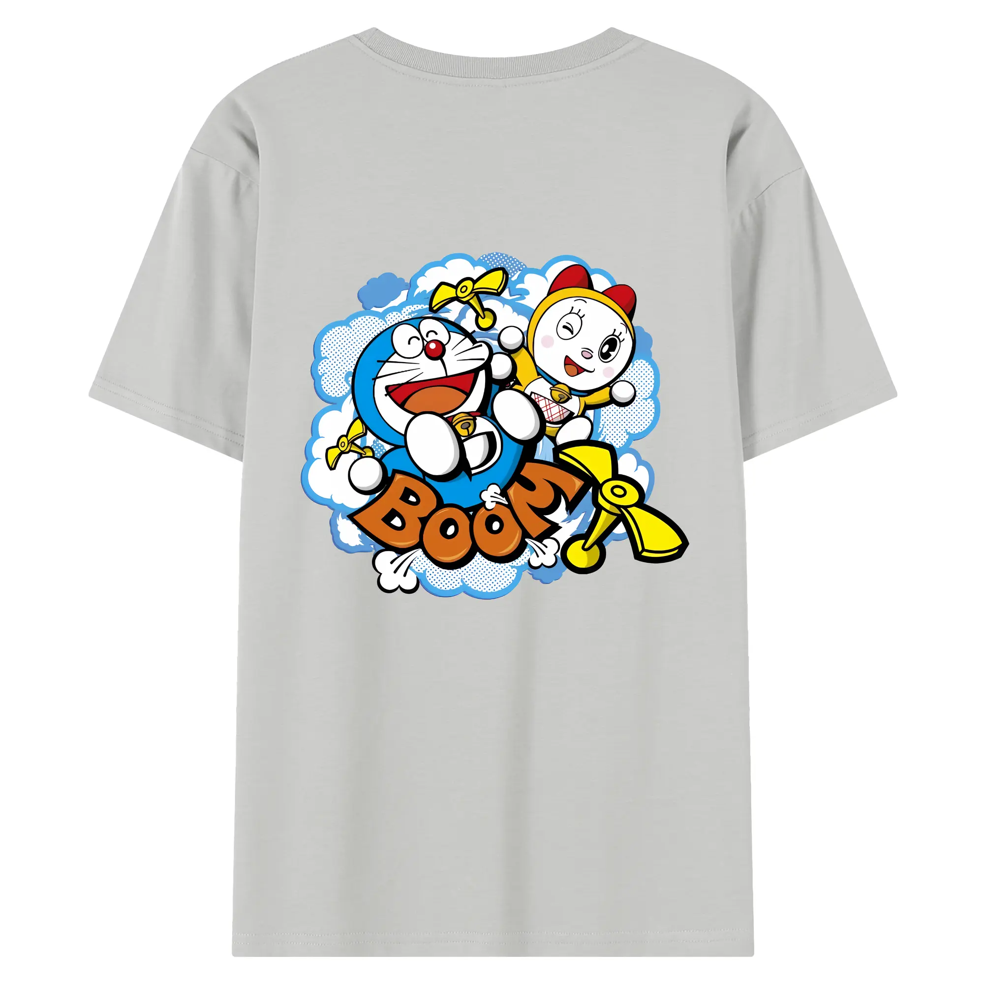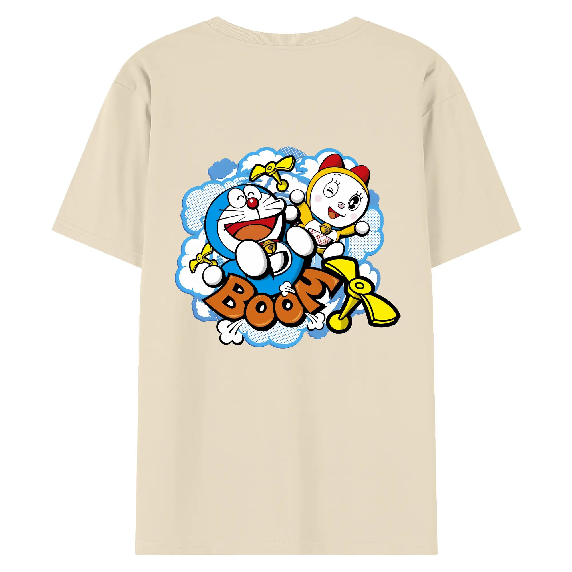 ドラえもん グッズ ドラミ - 綿100% ヴィンテージ風 半袖Tシャツ ・ 背面プリント ・ 柔らか肌触り ・ 通気性 快適 ・ スポーツ カジュアル 外出用