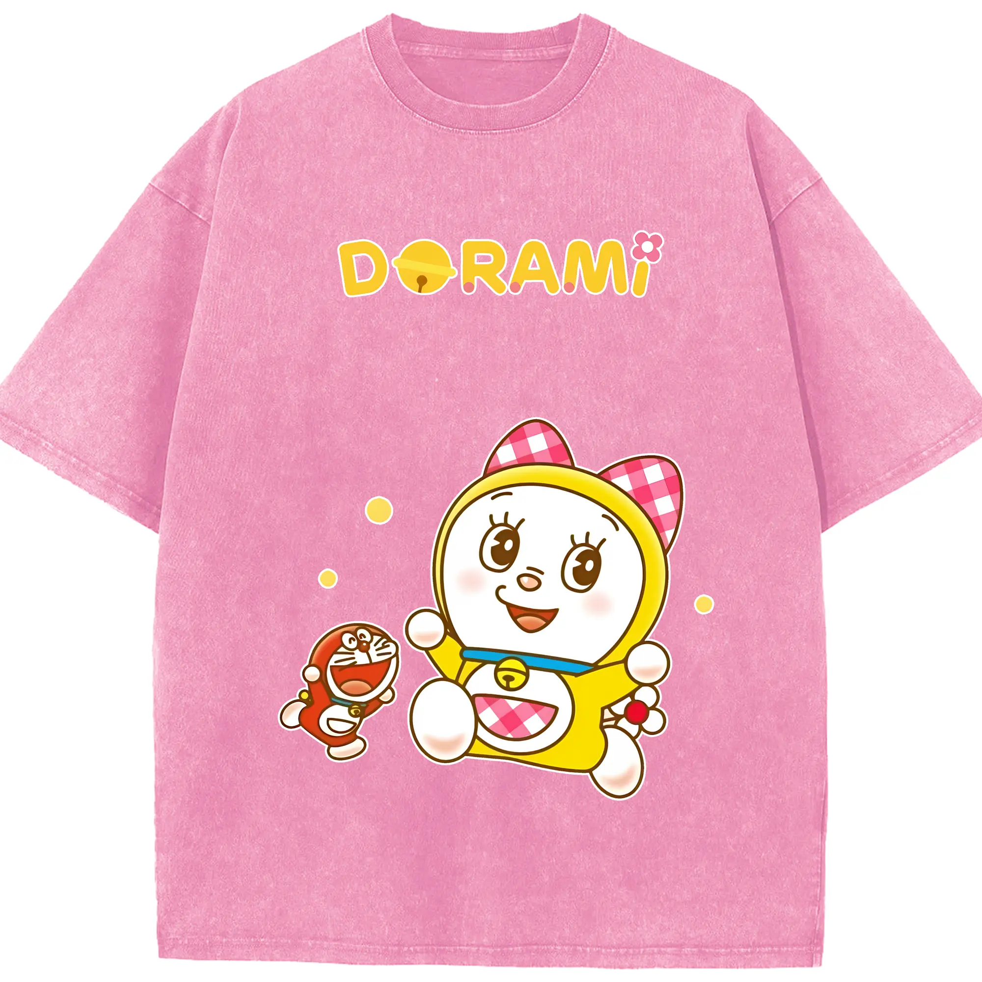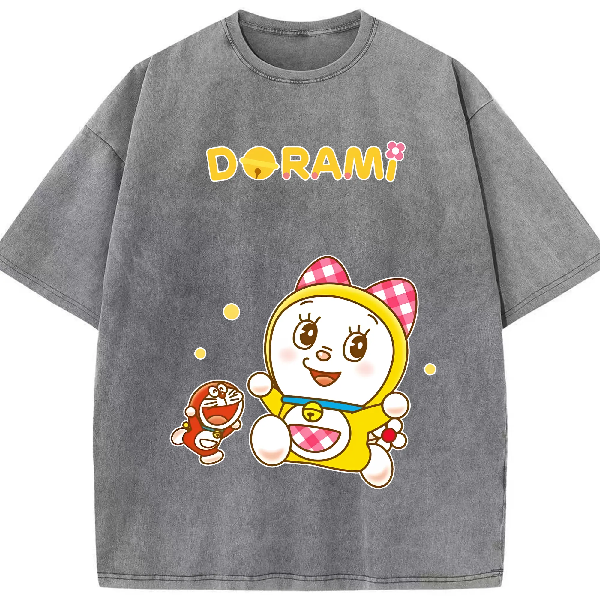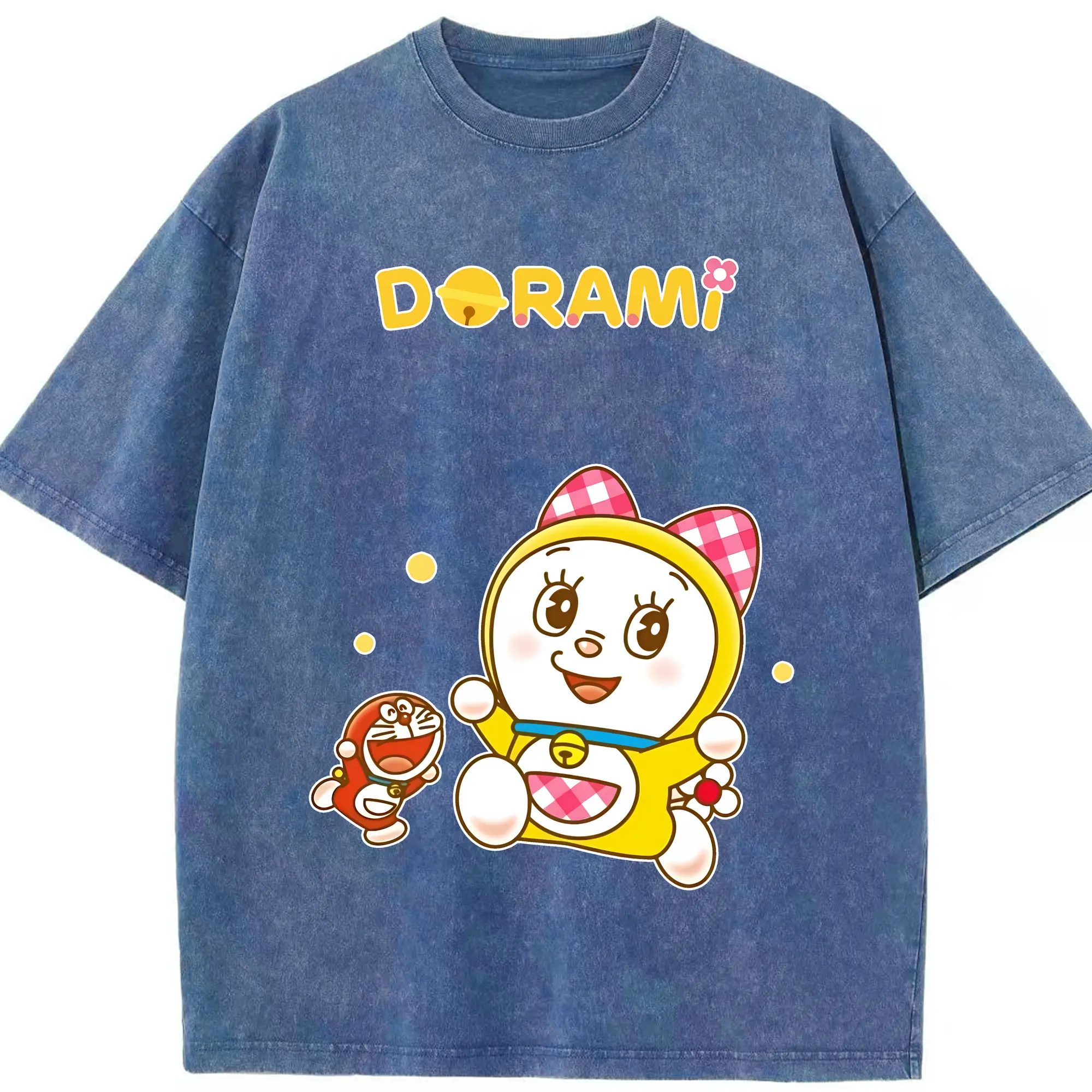 ドラえもん グッズ ドラミ - 綿100% ヴィンテージ風 半袖Tシャツ ・ 背面プリント ・ 柔らか肌触り ・ 通気性 快適 ・ スポーツ カジュアル 外出用