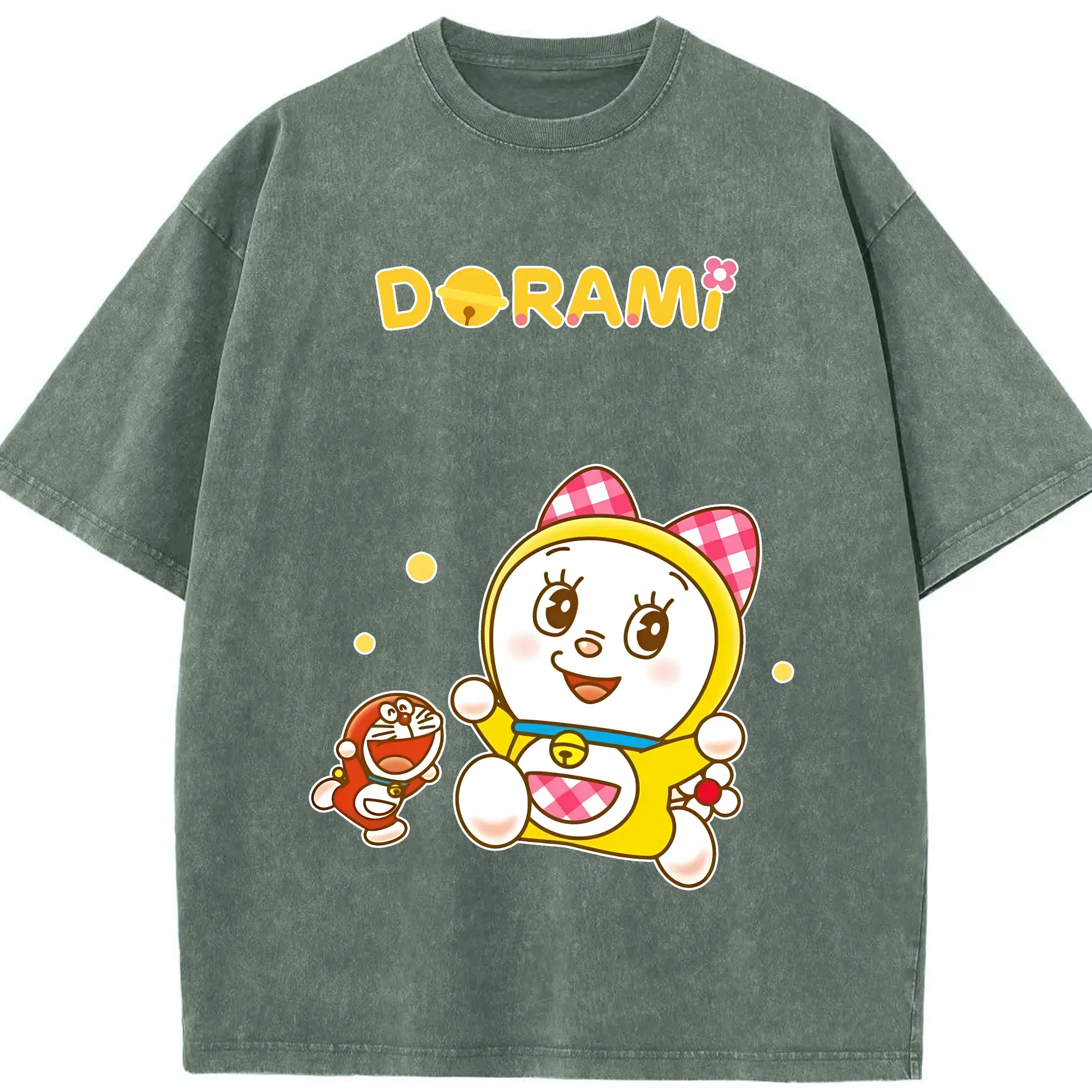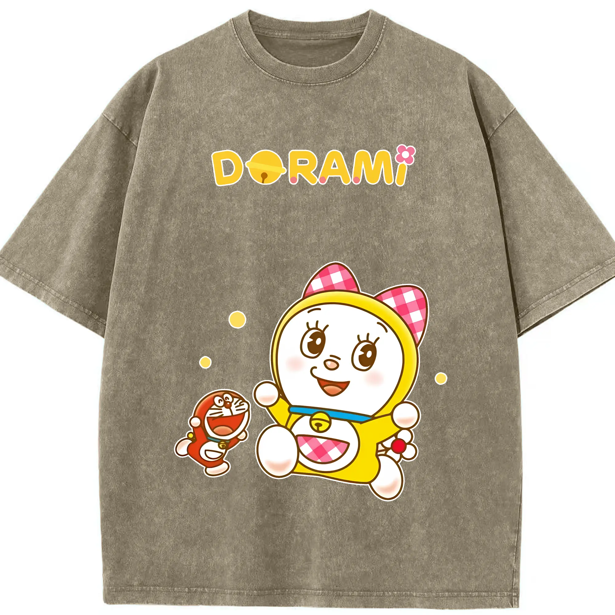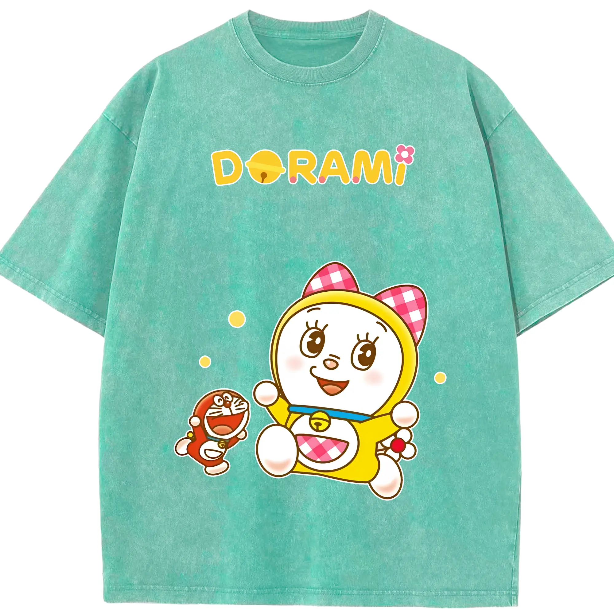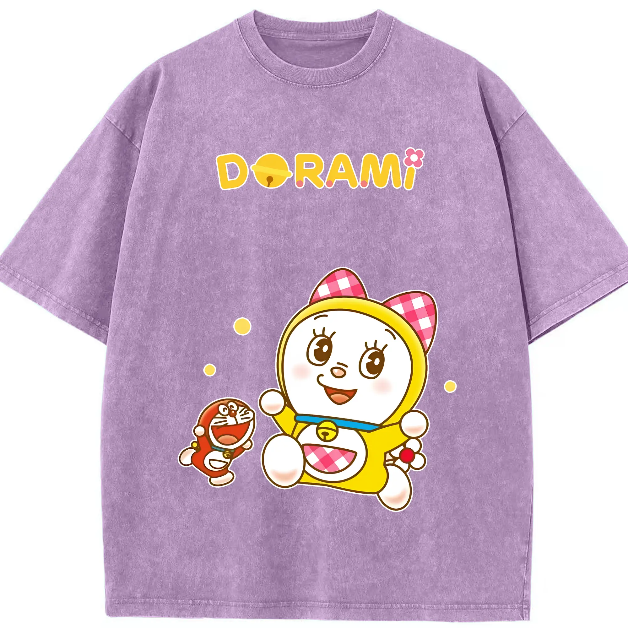 ドラえもん グッズ ドラミ - 綿100% ヴィンテージ風 半袖Tシャツ ・ 背面プリント ・ 柔らか肌触り ・ 通気性 快適 ・ スポーツ カジュアル 外出用