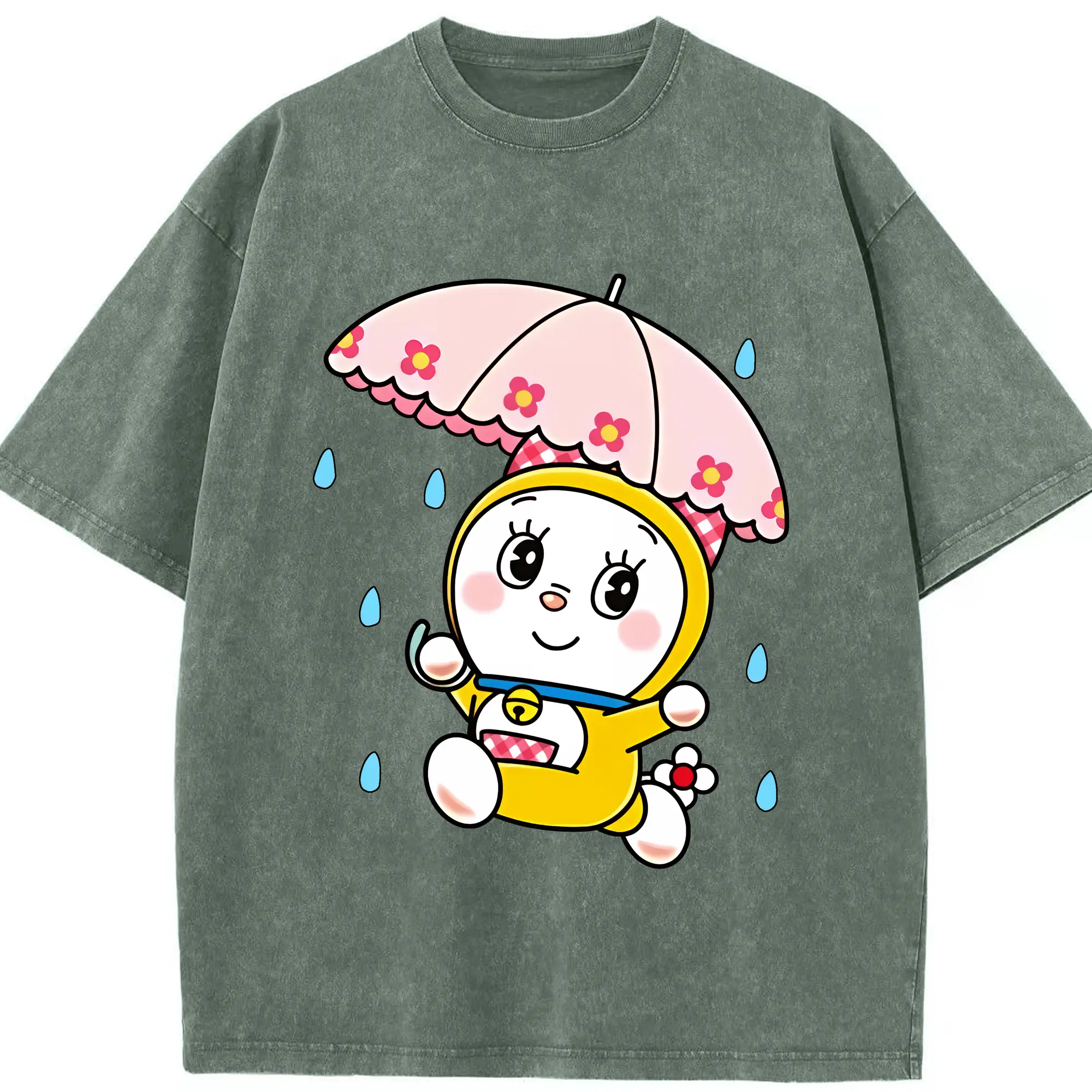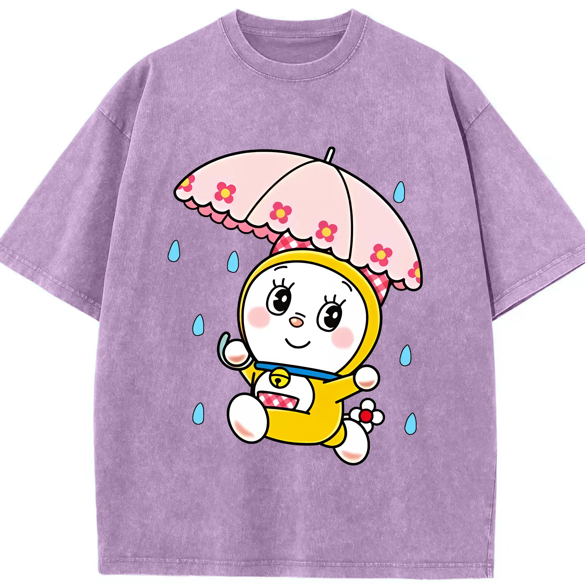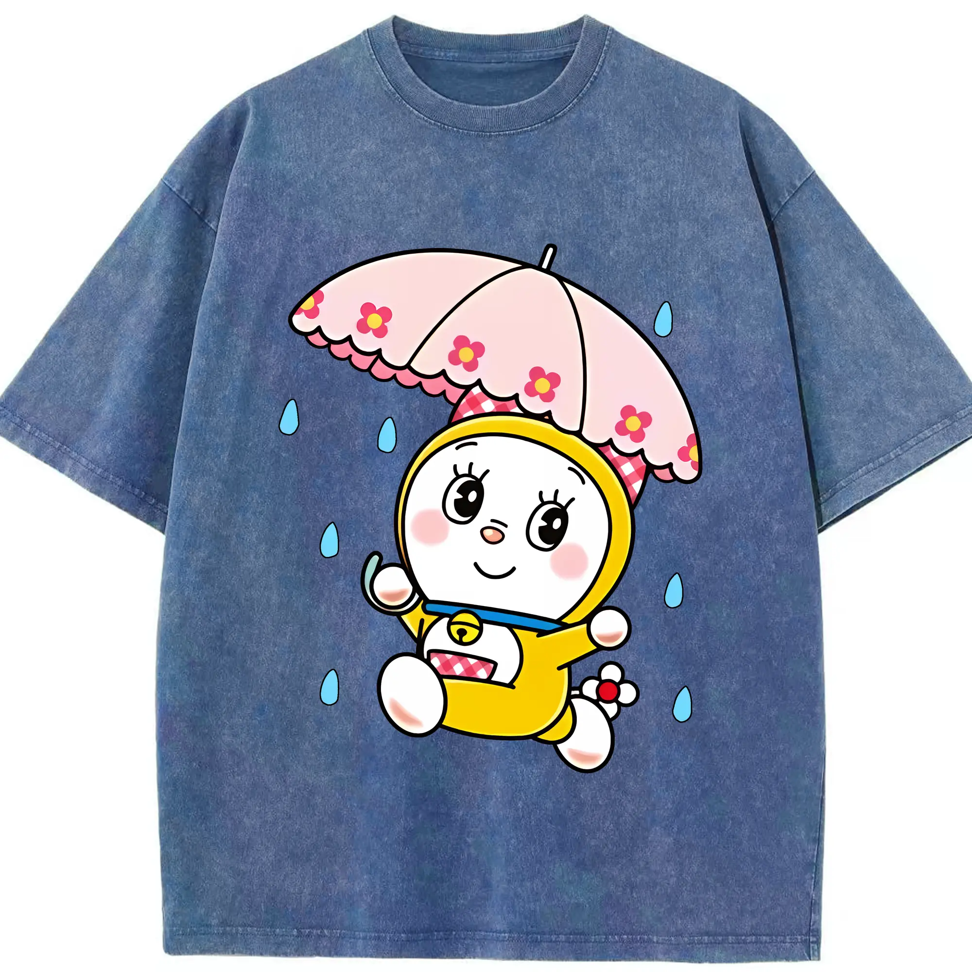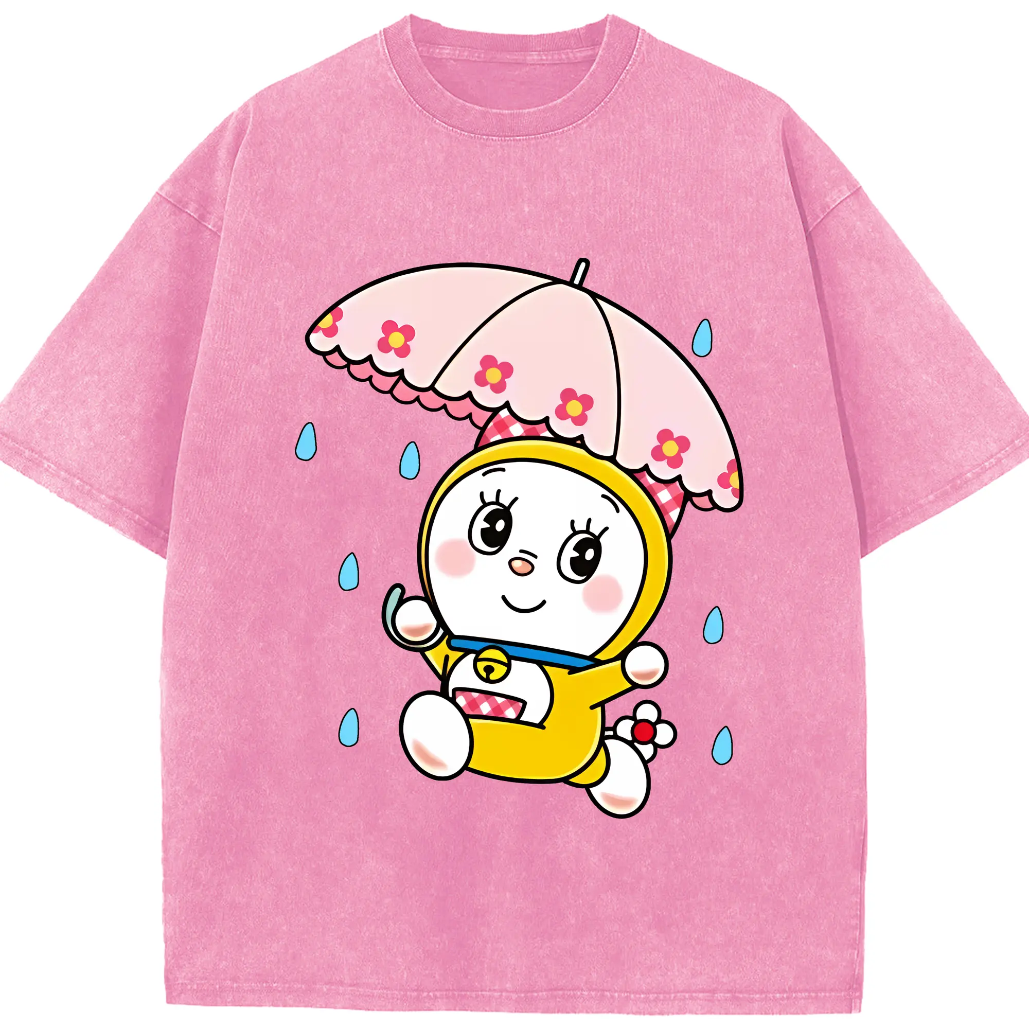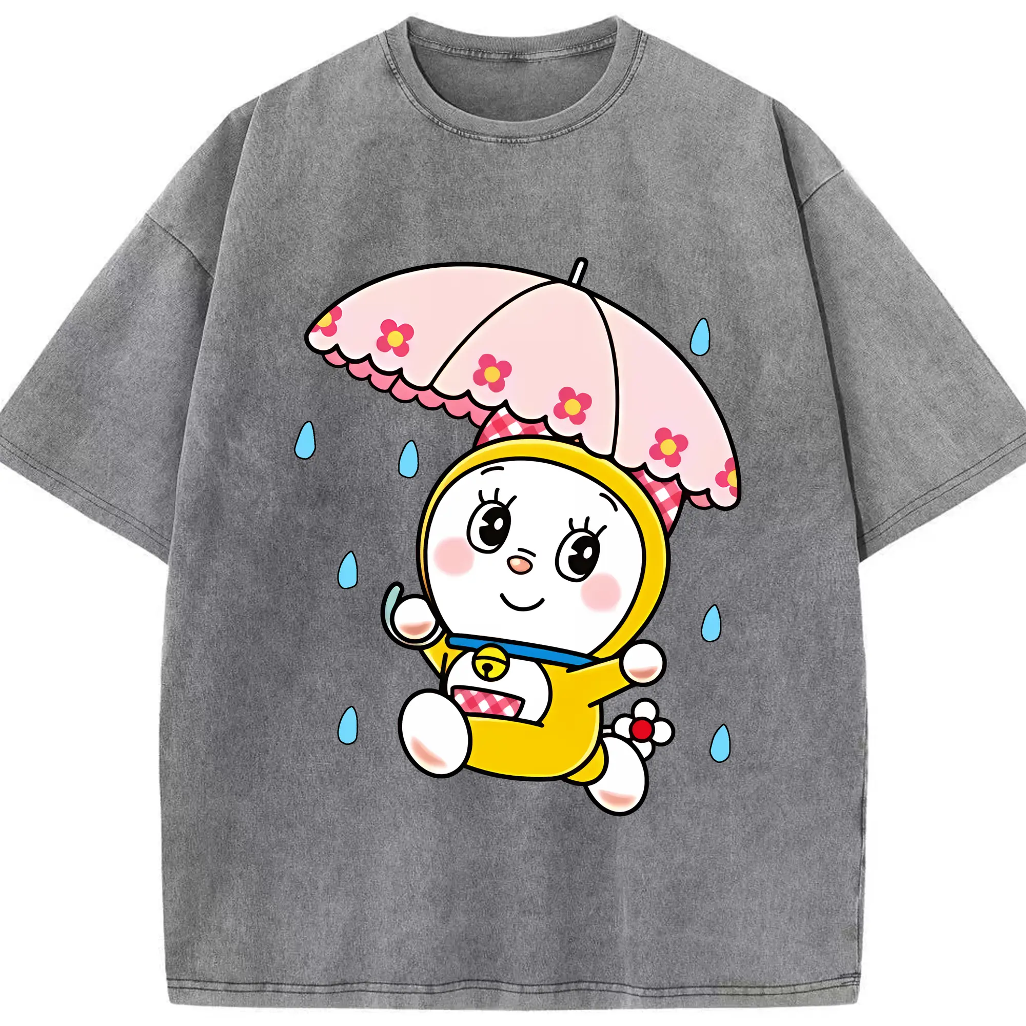 ドラえもん グッズ ドラミ - 綿100% ヴィンテージ風 半袖Tシャツ ・ 背面プリント ・ 柔らか肌触り ・ 通気性 快適 ・ スポーツ カジュアル 外出用