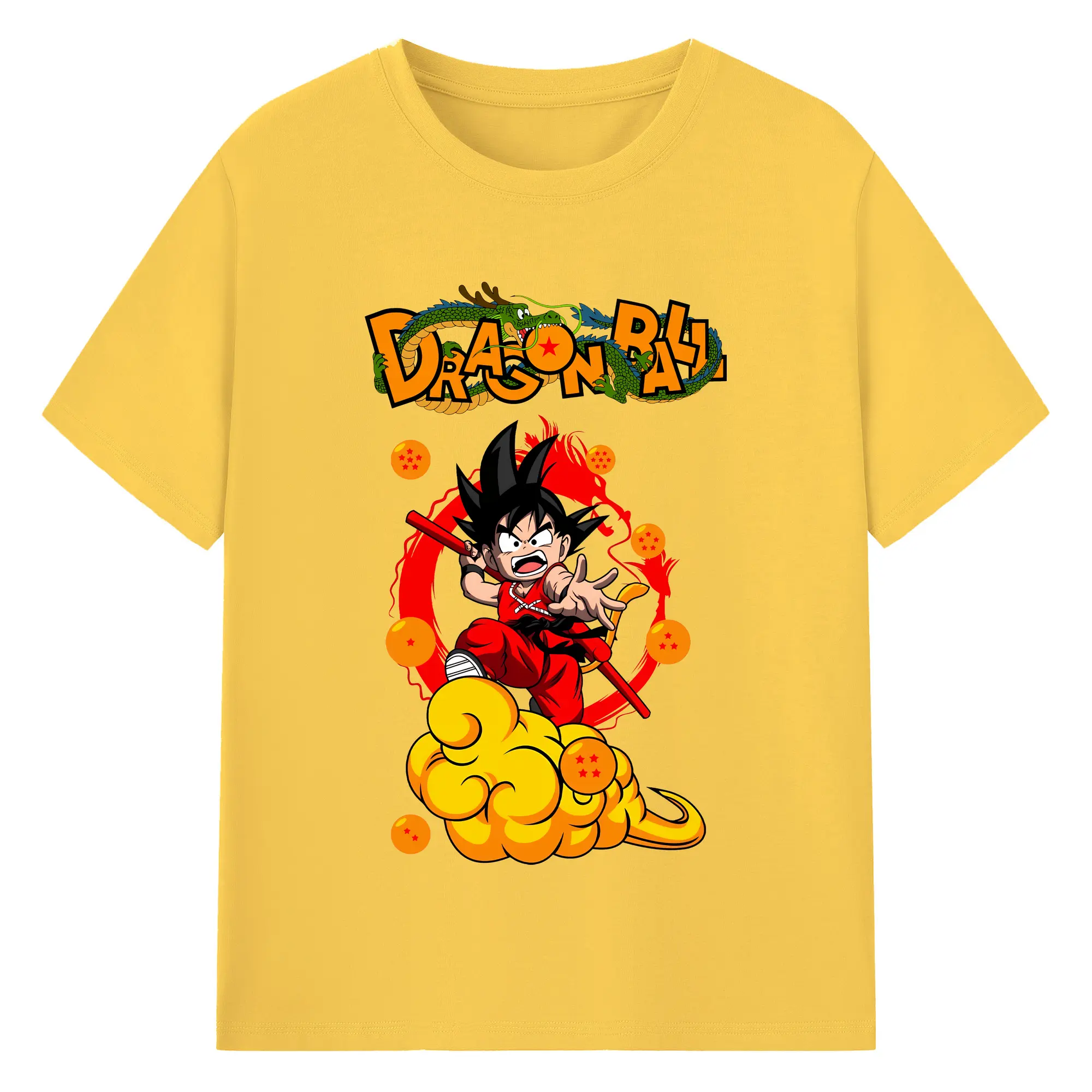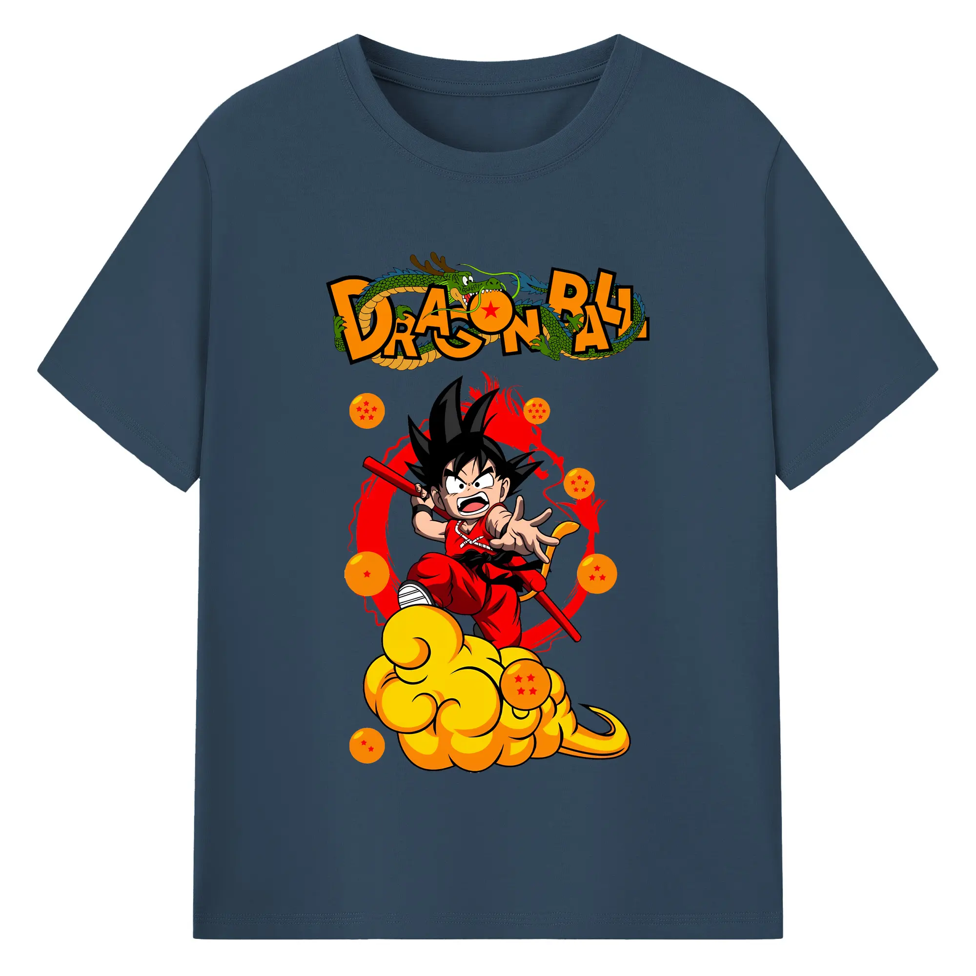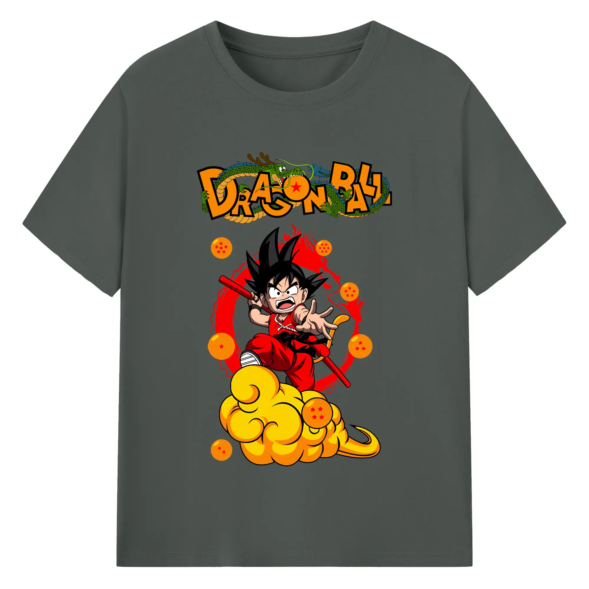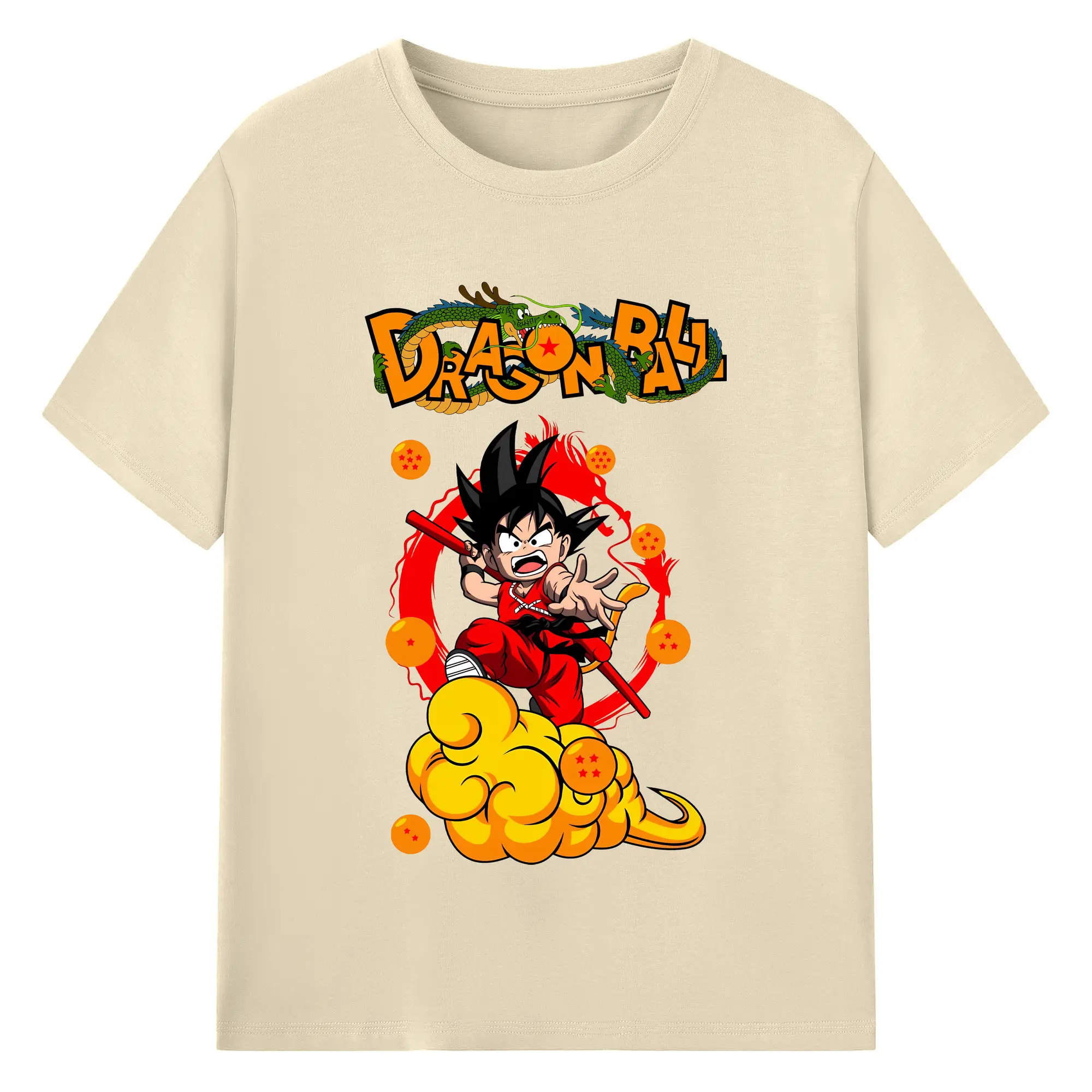 ドラゴンボール グッズ 孫 悟空 - 綿100% ヴィンテージ風 半袖Tシャツ ・ フロントプリント ・ 柔らか肌触り ・ 通気性 快適 ・ スポーツ カジュアル 外出用